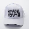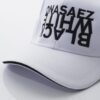 Gorra de gabardina 100% algodón, blanca, con visera curva y bordado 3D en contraste. Diseño moderno y sofisticado, combinada con chaqueta de cuero para un look urbano.
