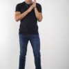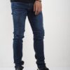 Jean slim fit, con cinco bolsillos cierre frontal y botón metálico de marca.