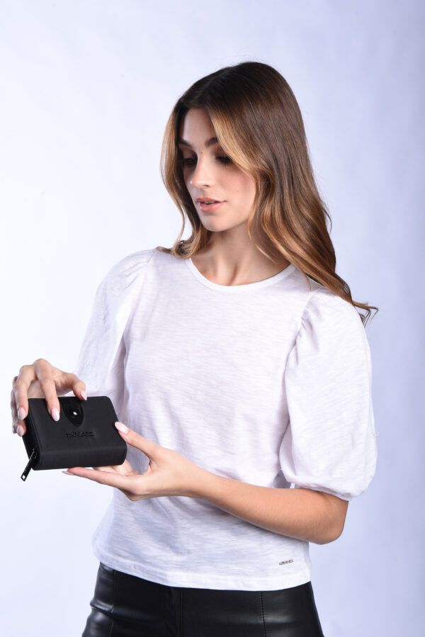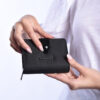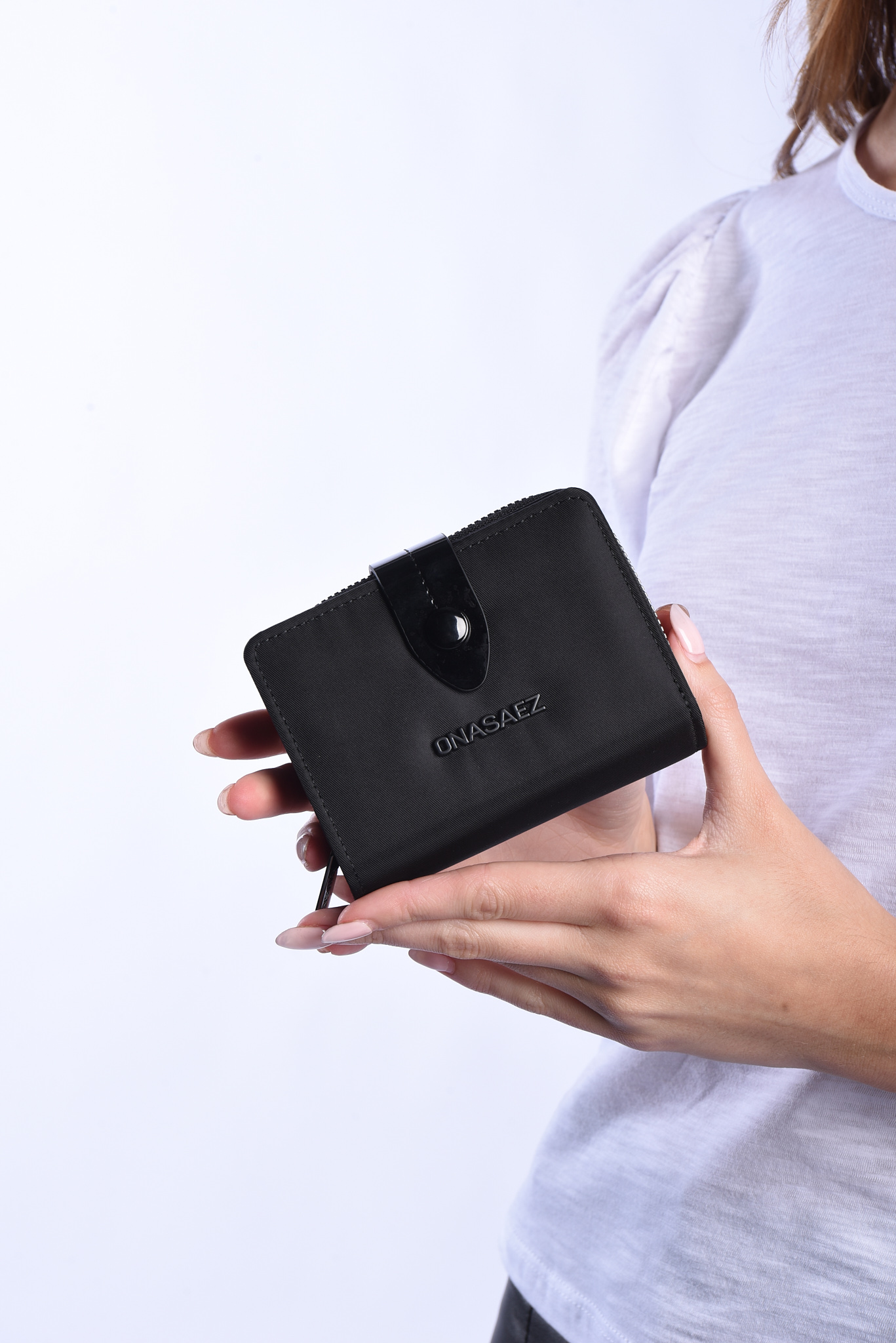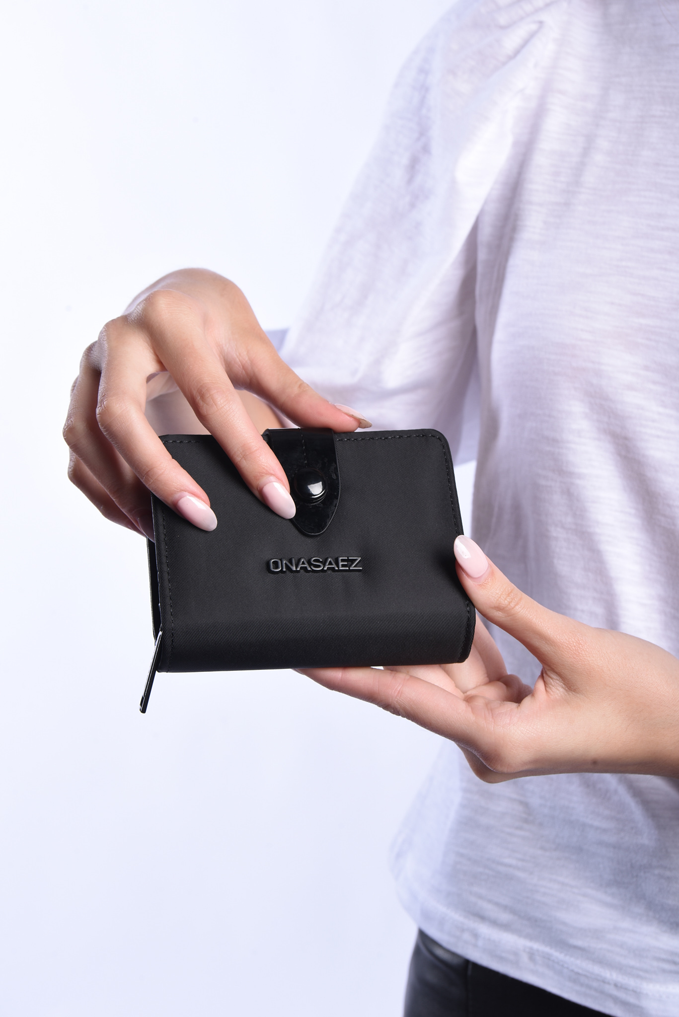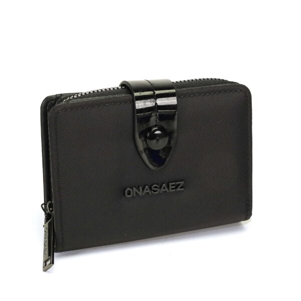 Billetera confeccionada nylon 100% color negra, con logo de marca en el frente.