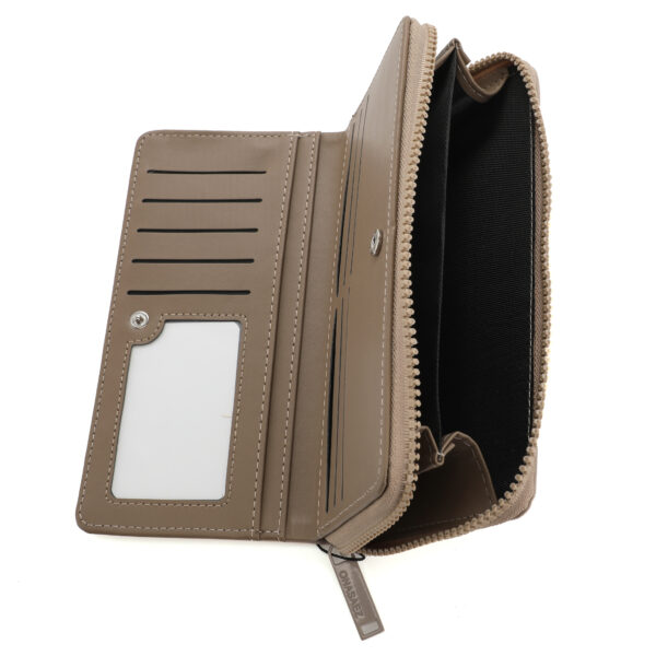 Cuenta con múltiples ranuras para tarjetas, un compartimento transparente ideal para una identificación y un amplio espacio para billetes y documentos. Además, incluye un compartimento con cierre de cremallera para monedas u otros objetos pequeños.