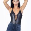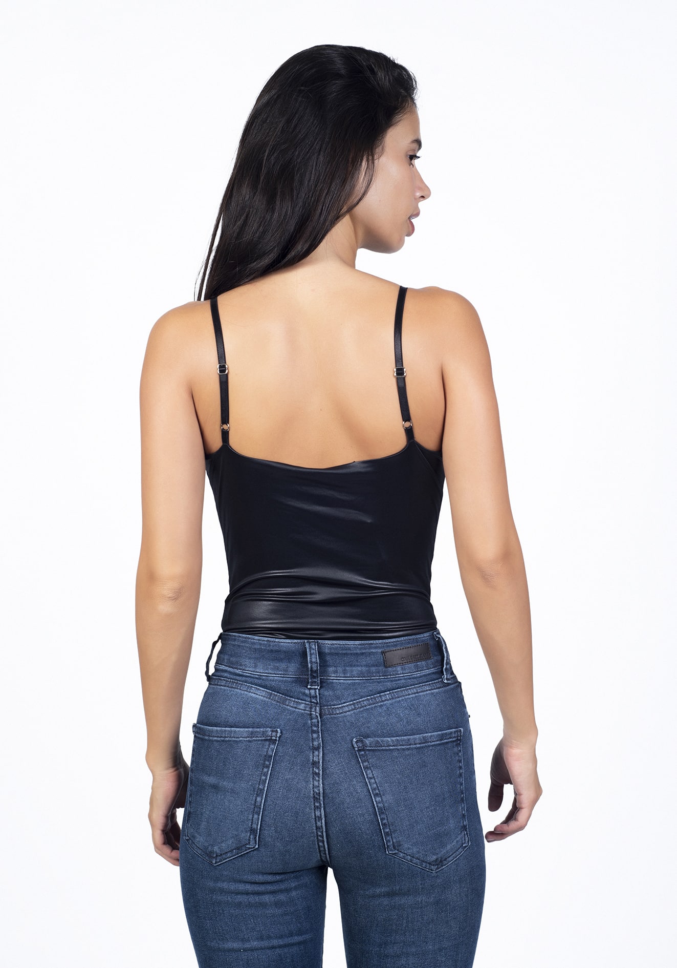 Body confeccionado en jersey brillante , con detalle de cintas entrelazadas en el escote.