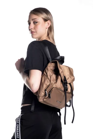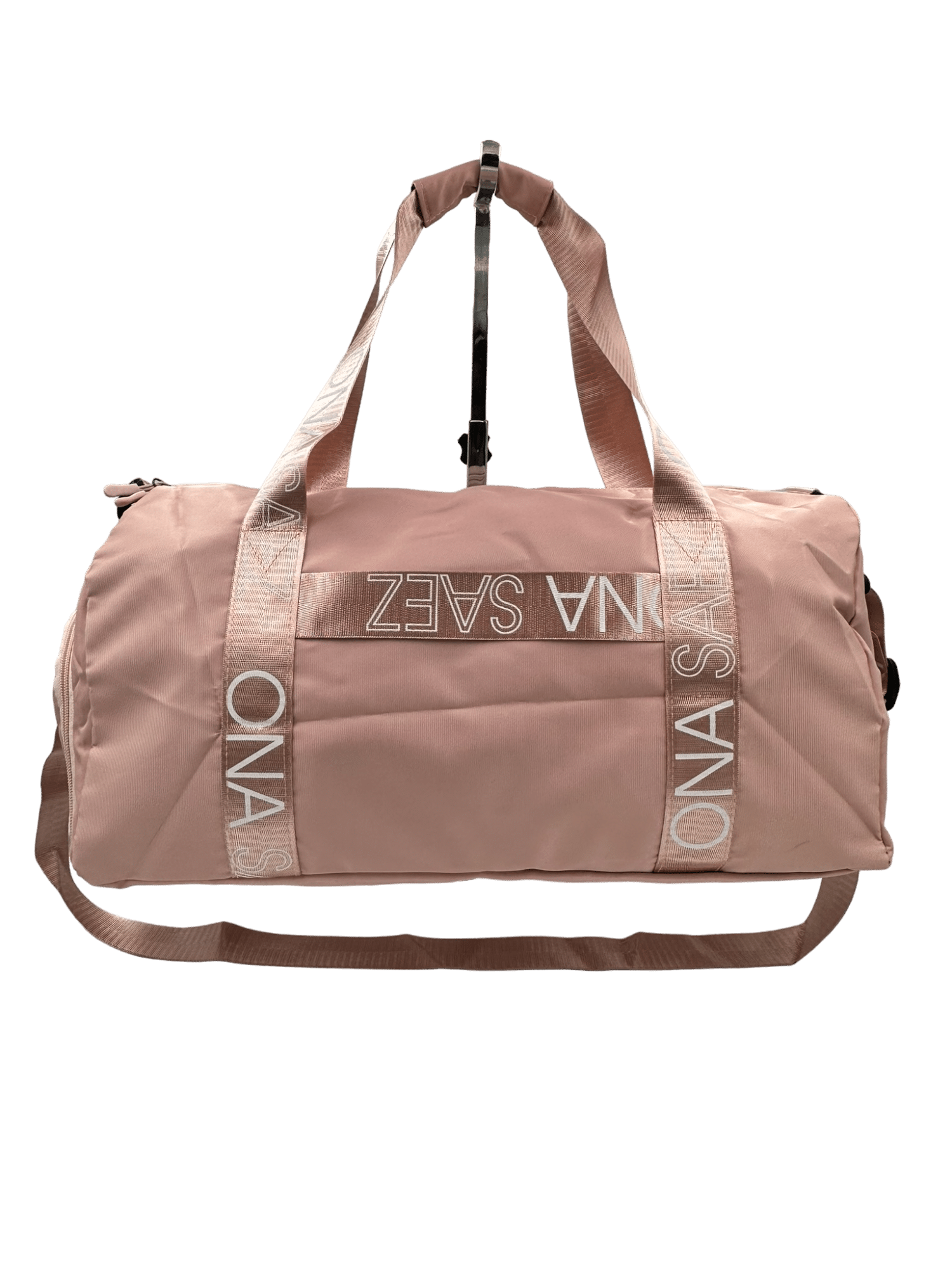 Bolso deportivo confeccionado en nylon 100% color rosa viejo.