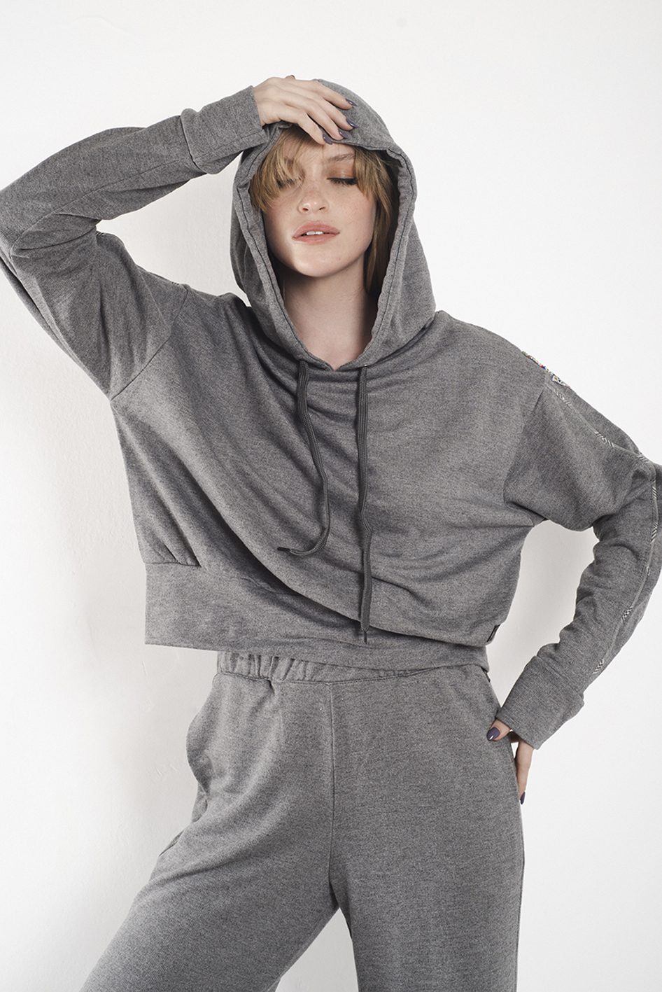 Largo por debajo de la cintura, capucha doble forrada y terminaciones en rib.