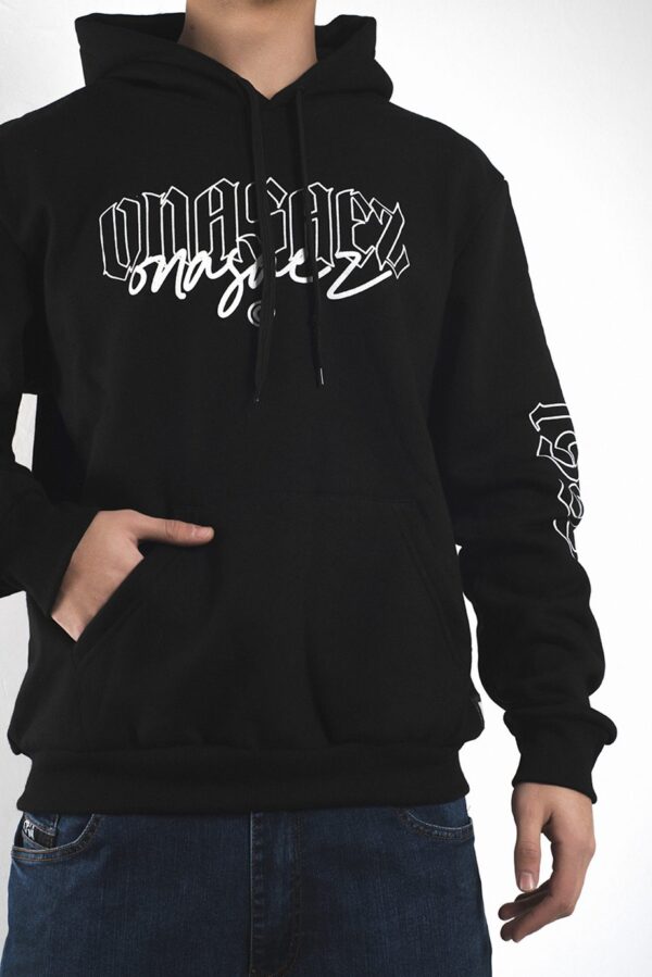 Buzo tipo canguro oversize confeccionado en rustico 100% algodón con friza, capucha doble forrada y terminaciones en rib elastizado