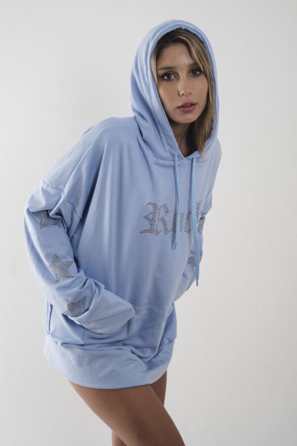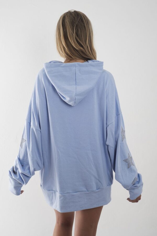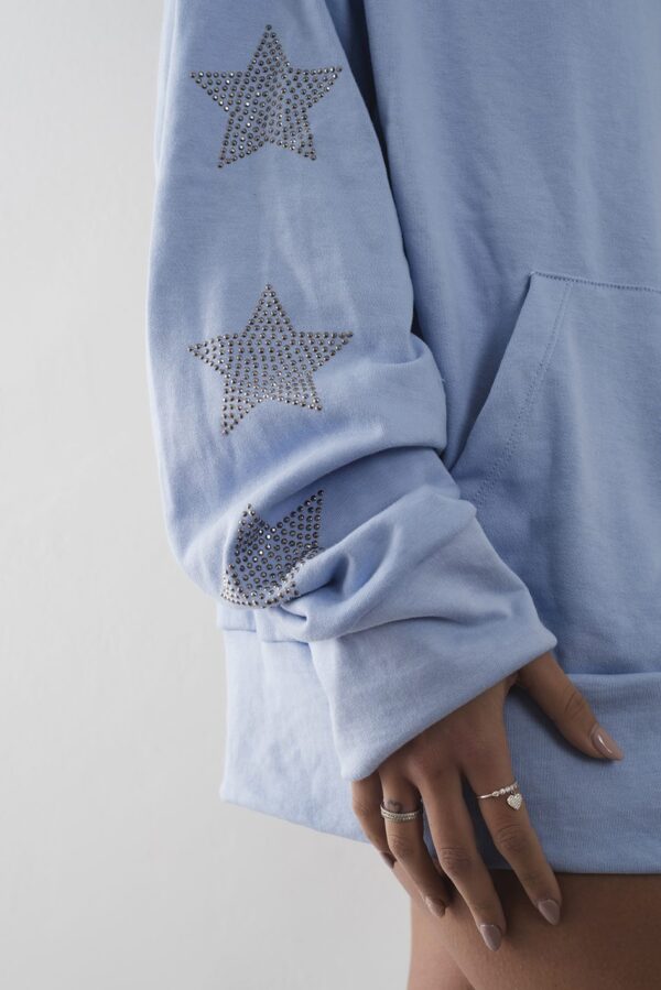 Diseño de transfers de strass repartidos en el frente y en las mangas.