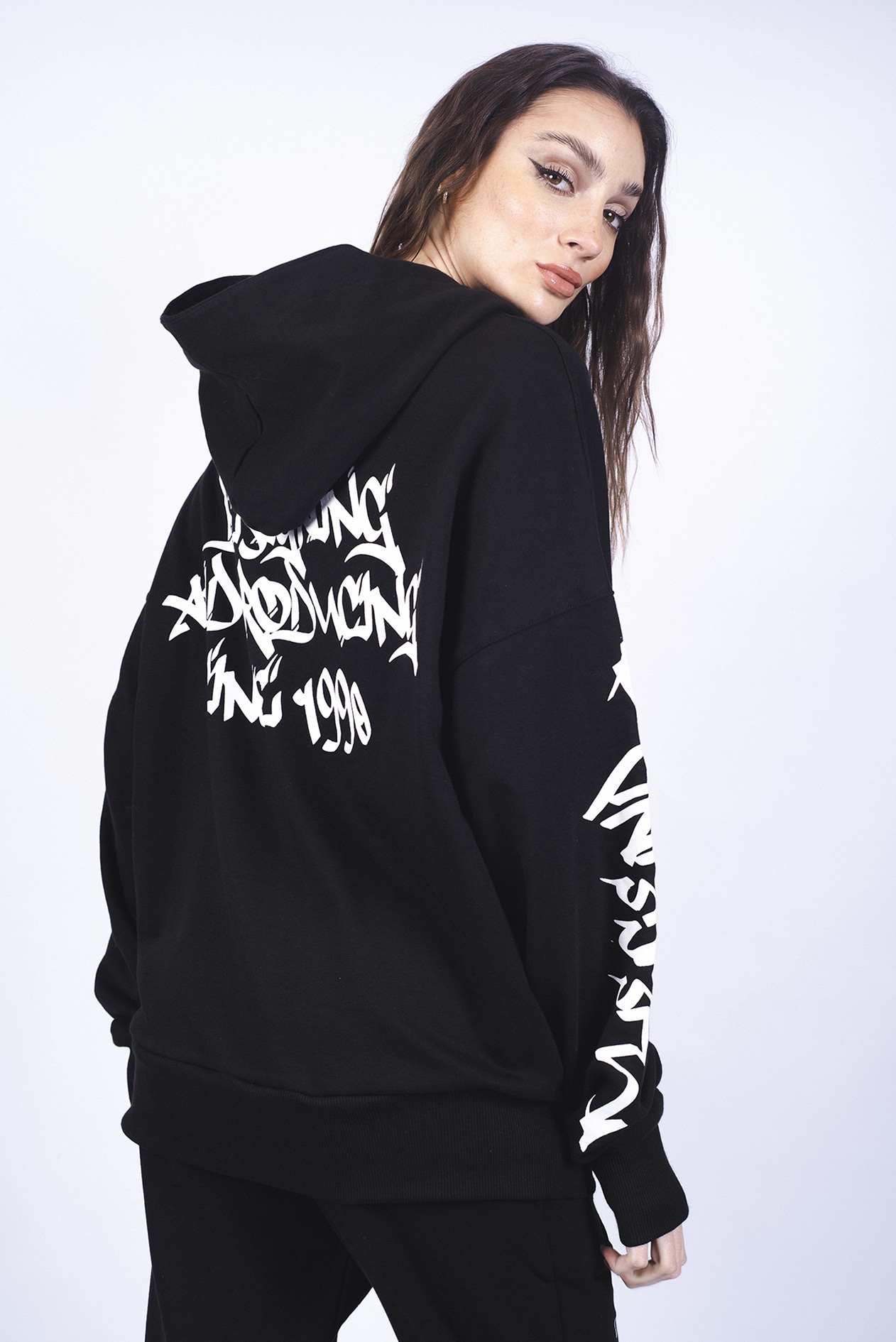 Buzo tipo canguro oversize, confeccionado en rustico 100% algodón sin friza, capucha doble forrada y terminaciones en rib elastizado.