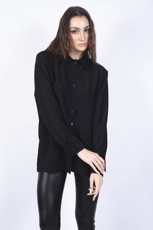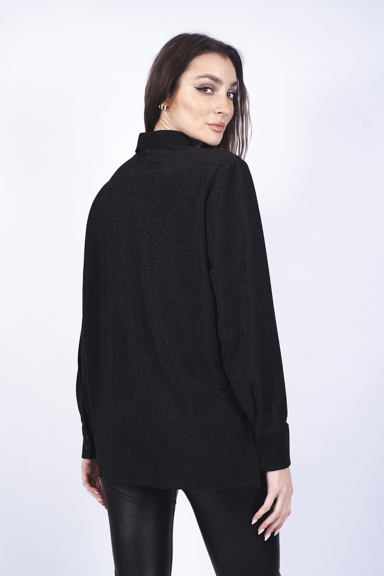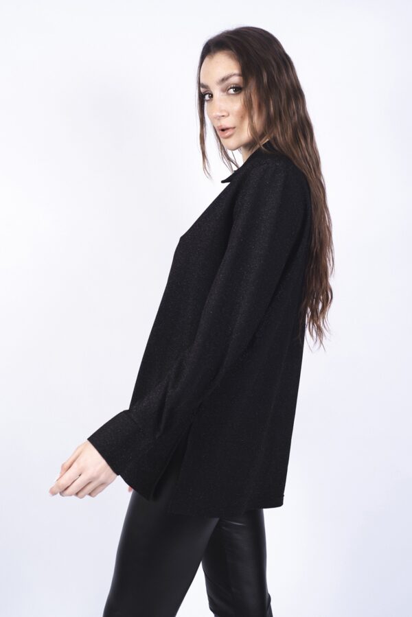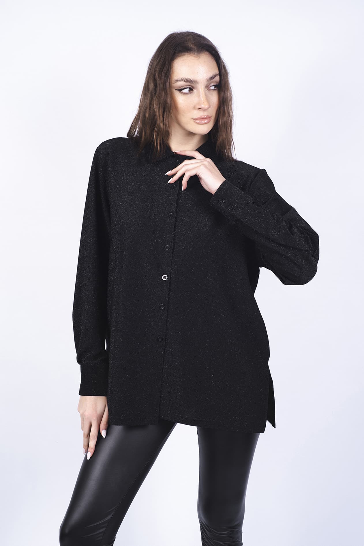 Camisa oversize manga larga, confeccionada jersey tejido con lurex al tono.