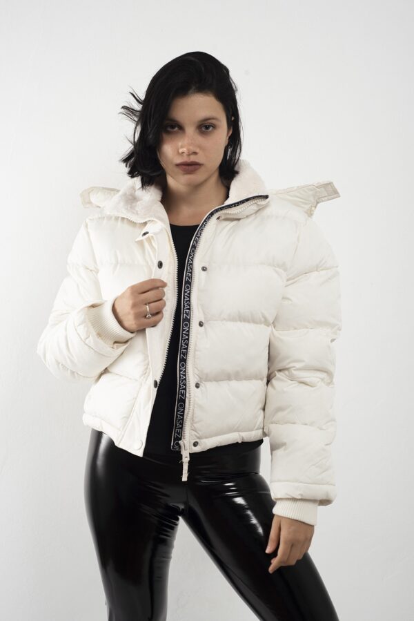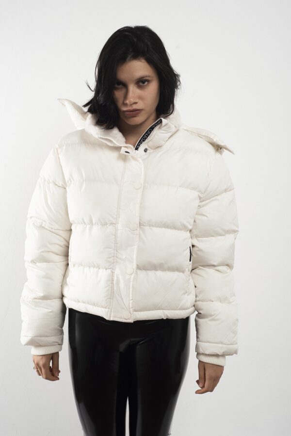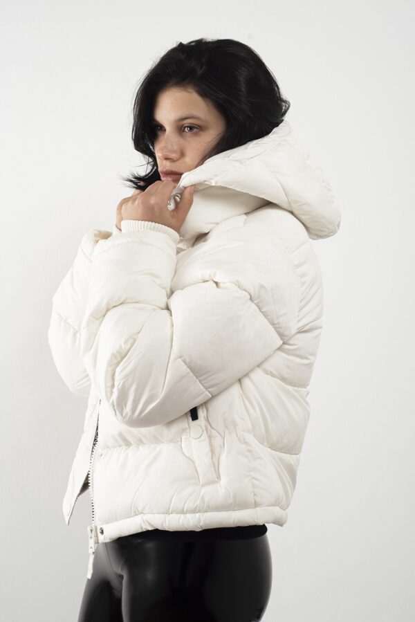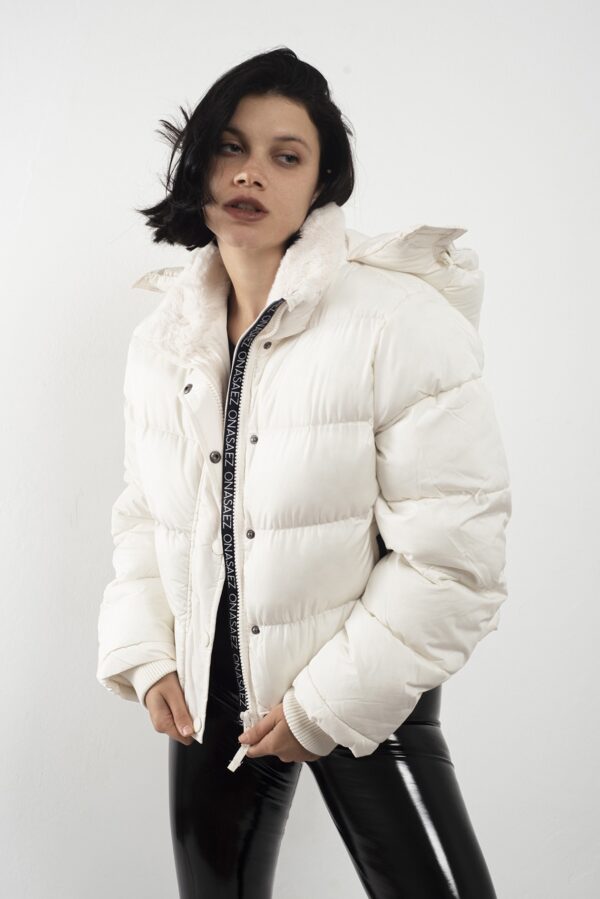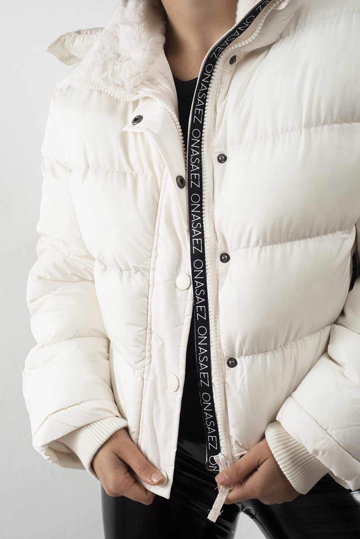 Campera corta tipo puffer, con relleno de vellón siliconado