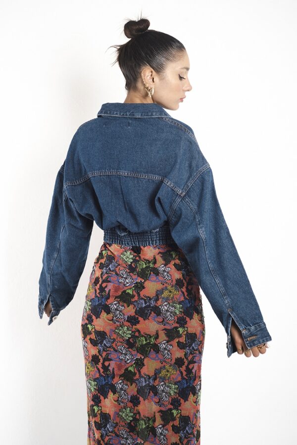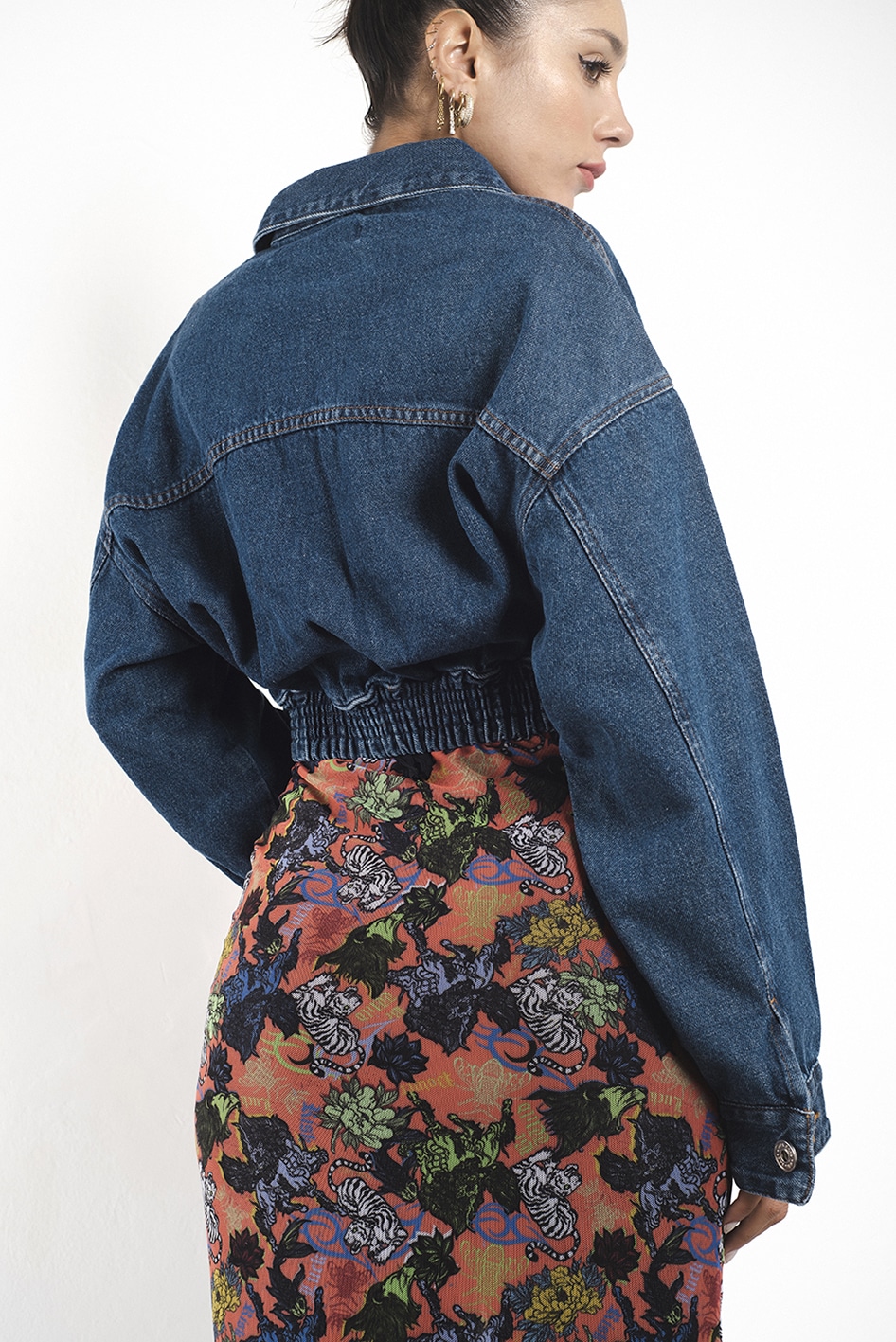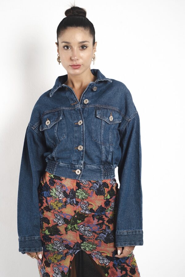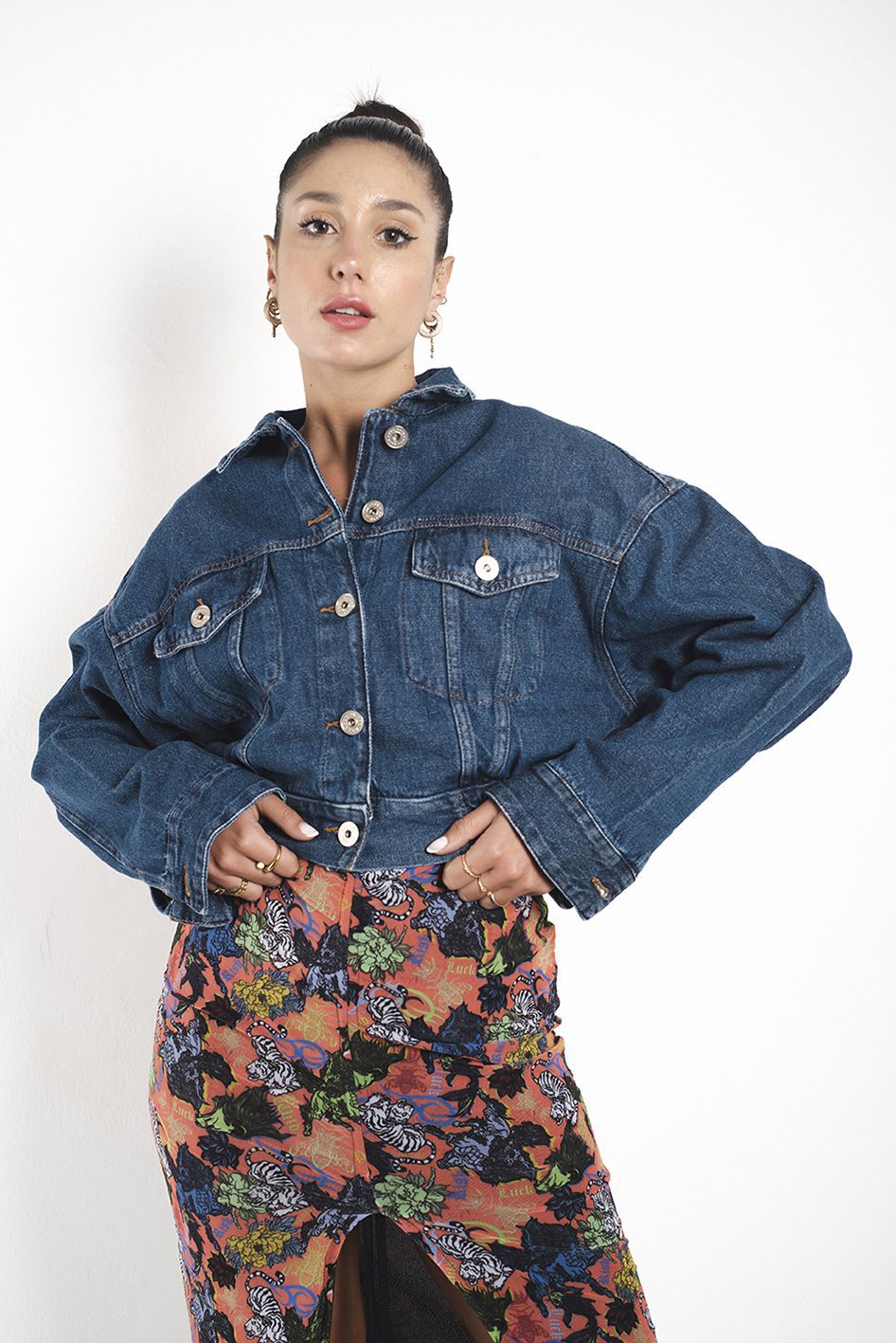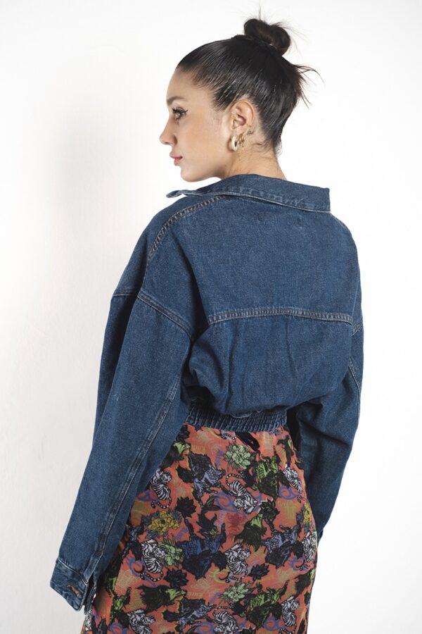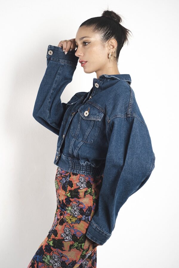 Campera cropped confeccionada en Denim 100% algodón (grosor intermedio).