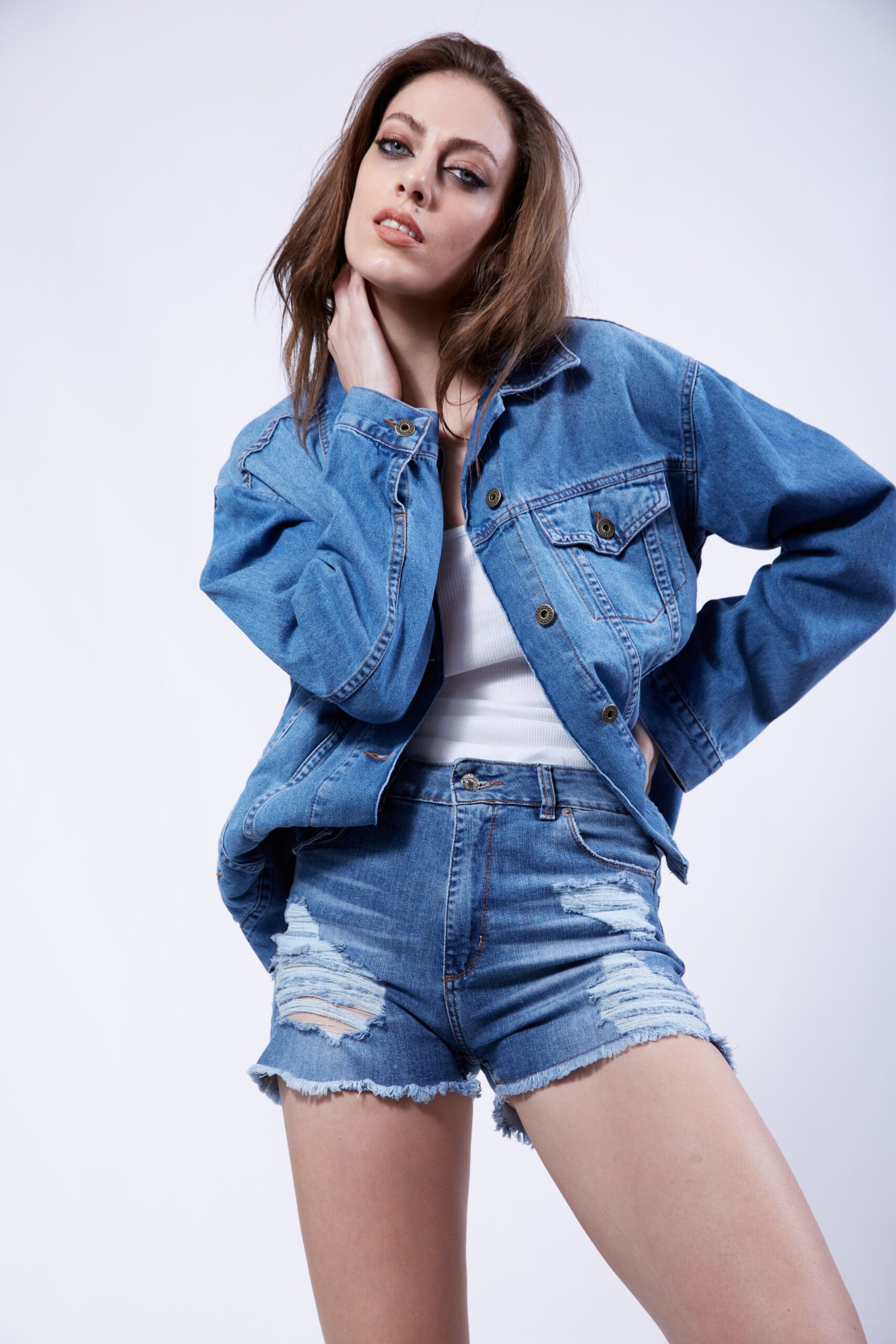 Campera vaquera de Denim pegado de 12 onzas (grosor intermedio).