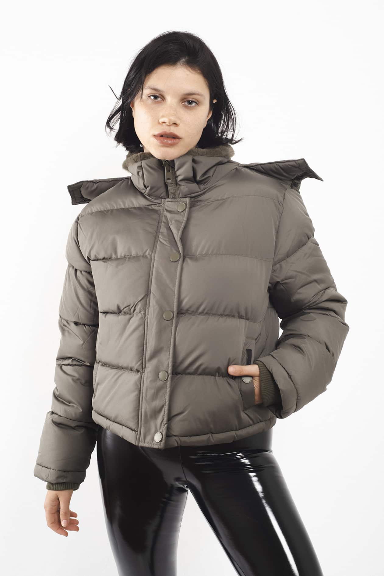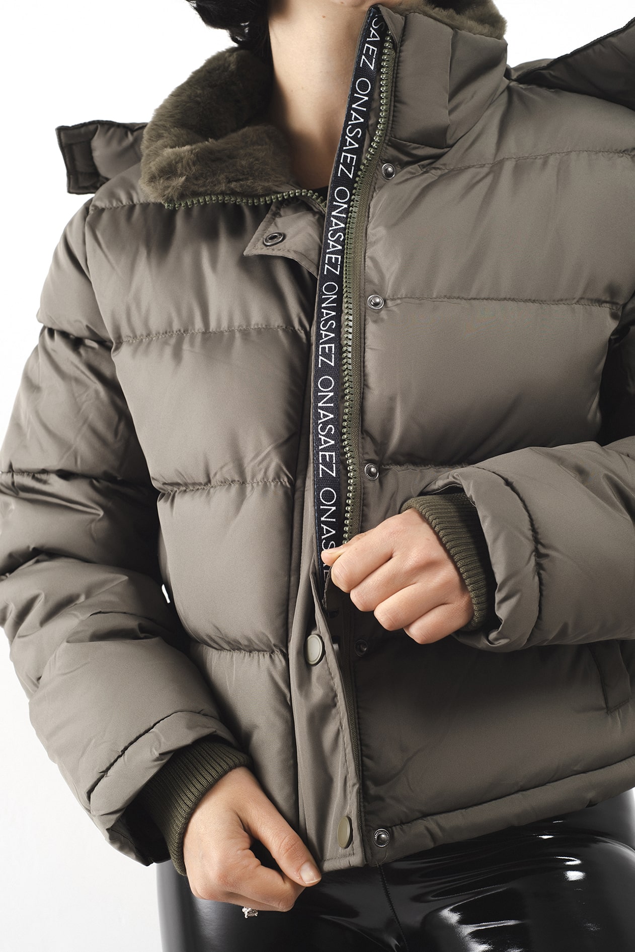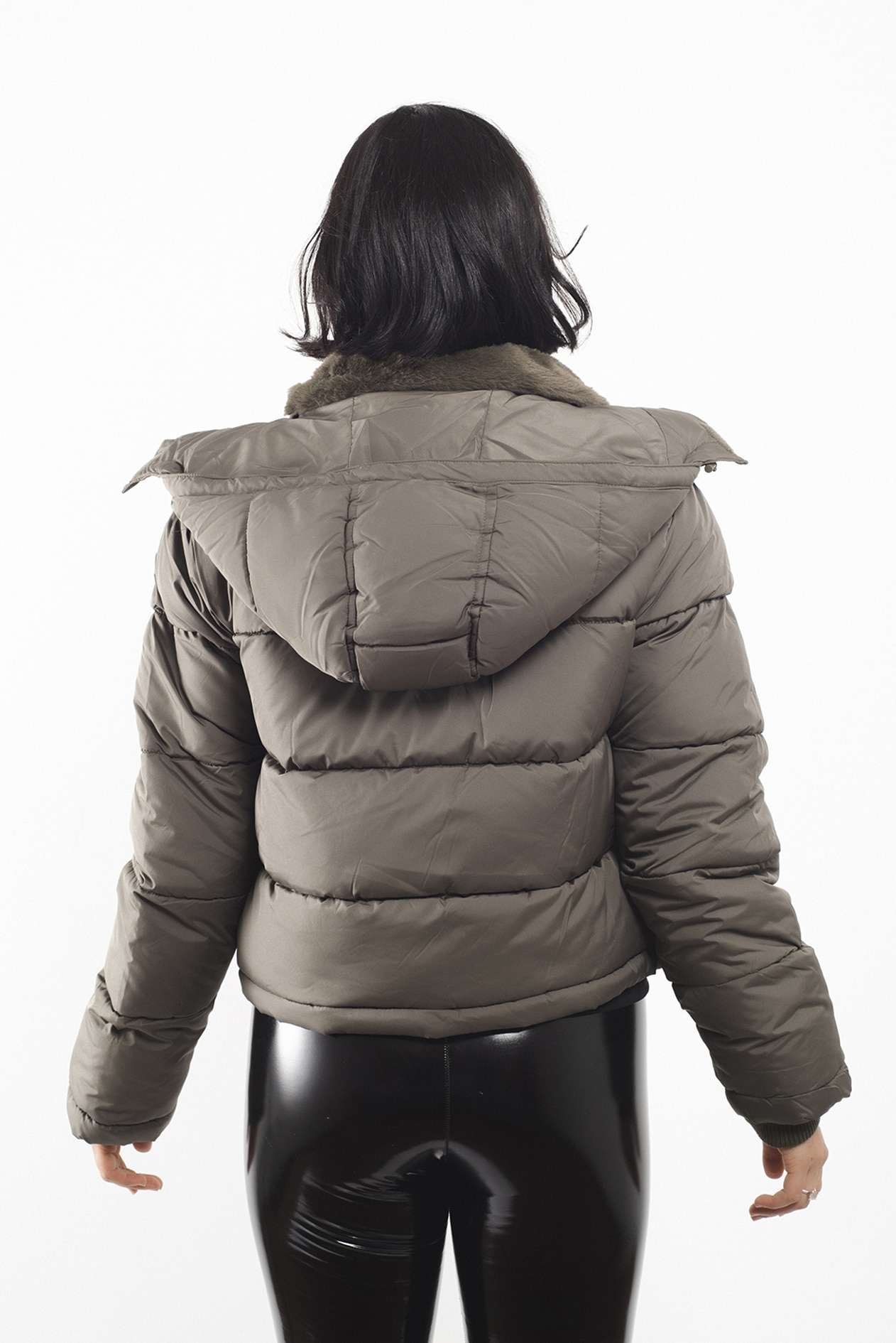 Campera corta tipo puffer, con relleno de vellón siliconado color verde