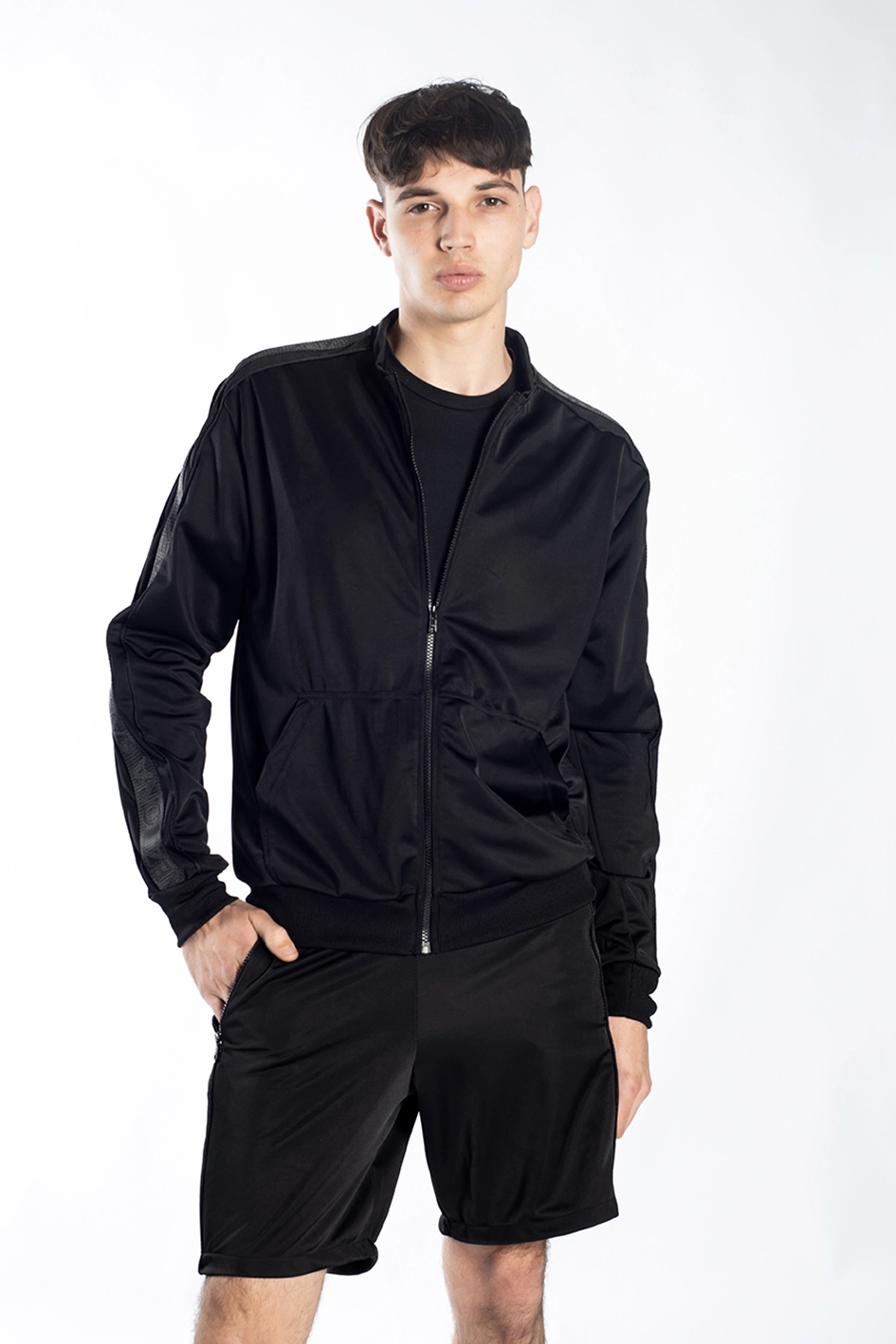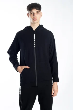 Campera tipo canguro confeccionada en jersey deportivo semi brillante, cuenta con doble bolsillo en el frente, apertura con cierre y terminaciones en rib elastizado.