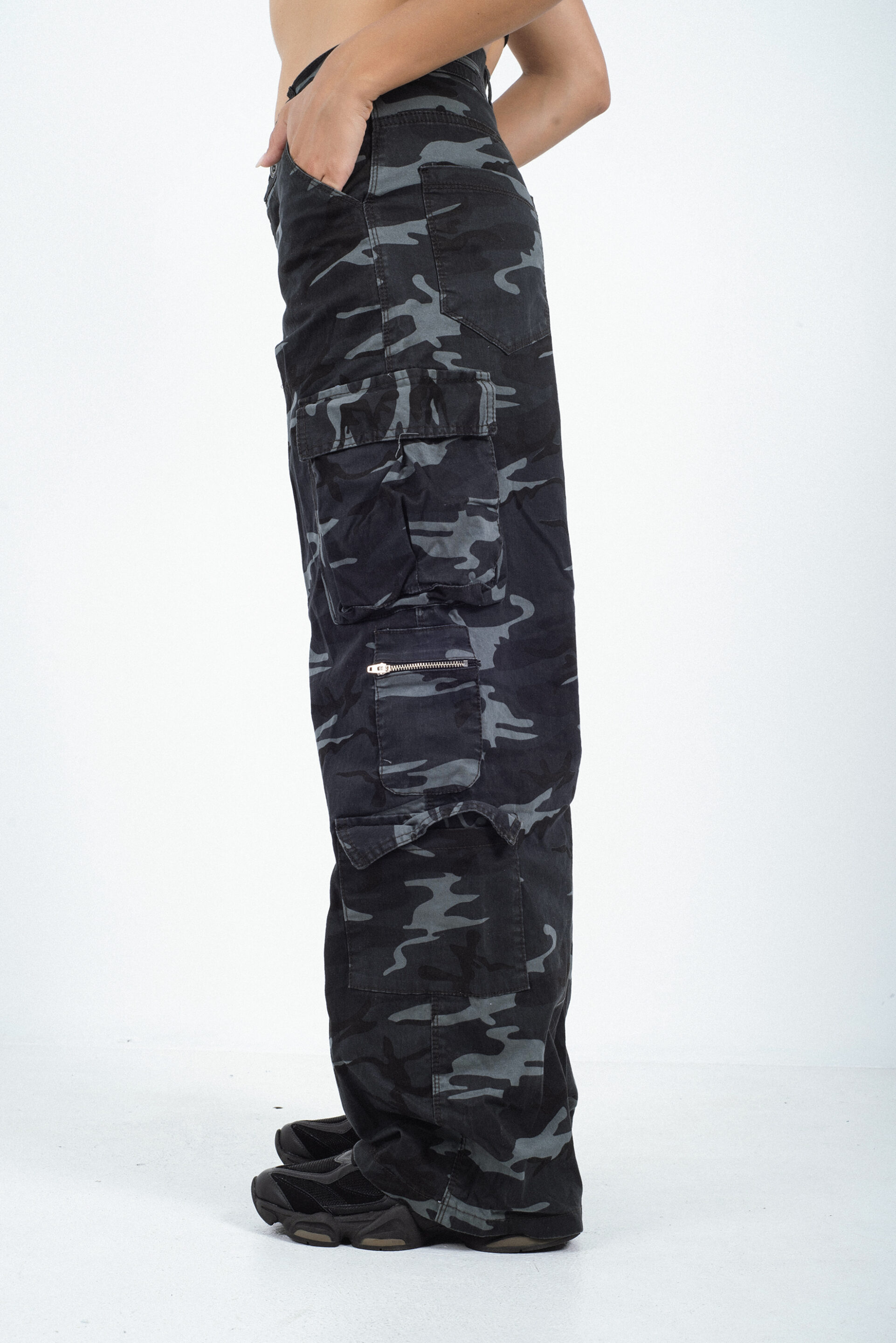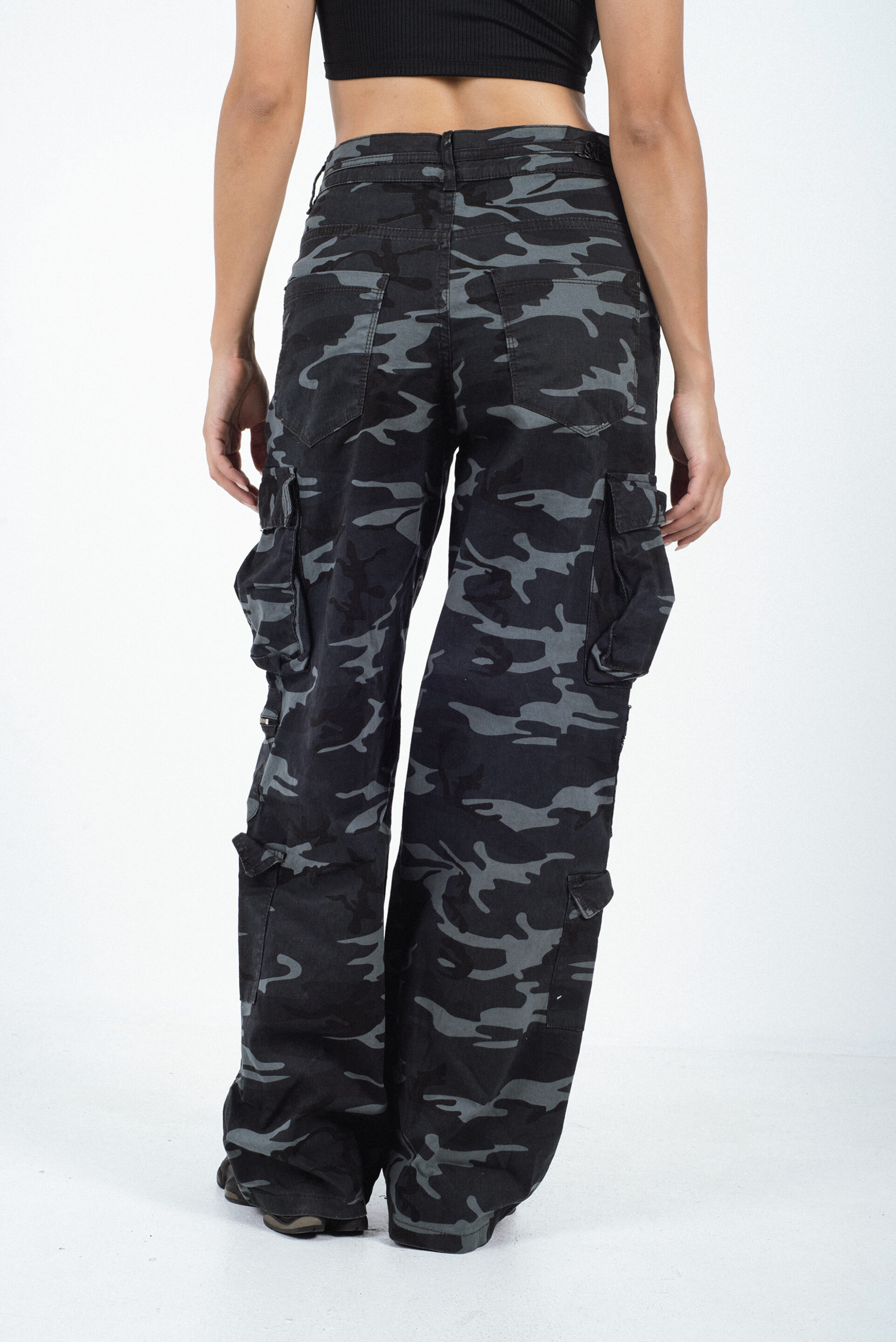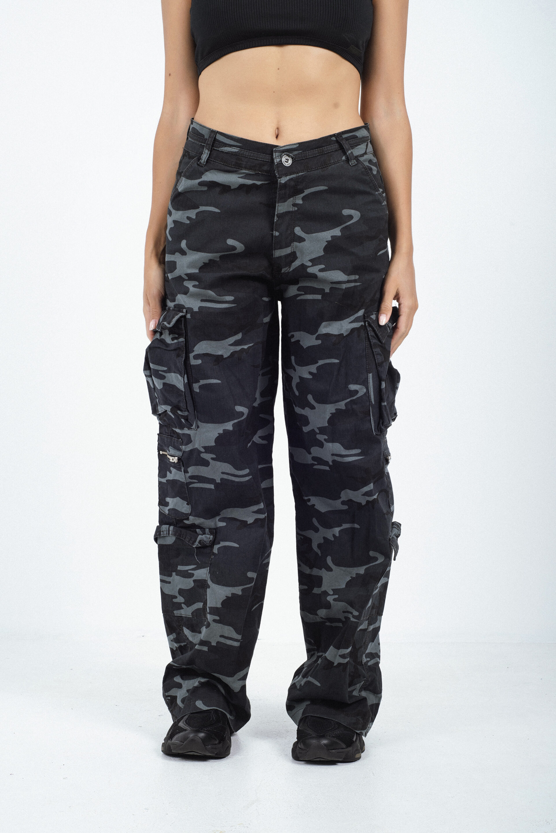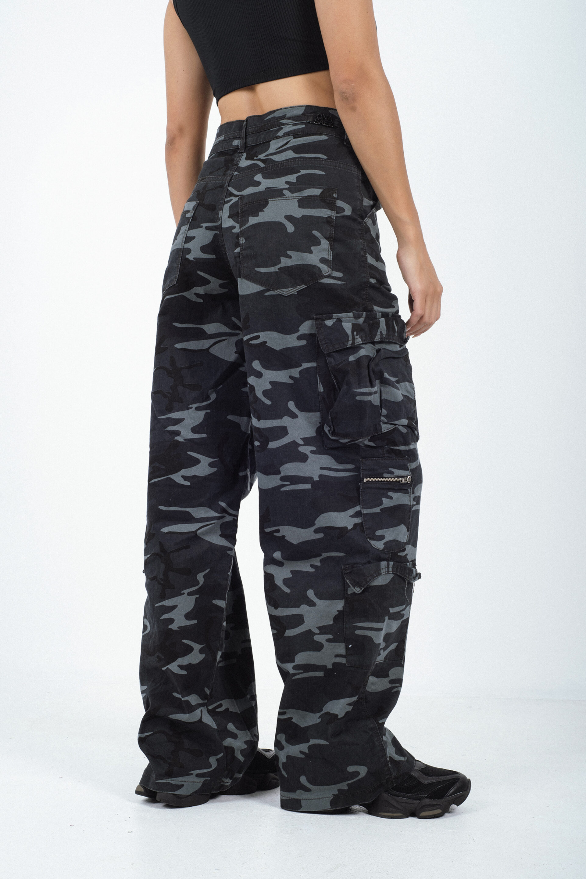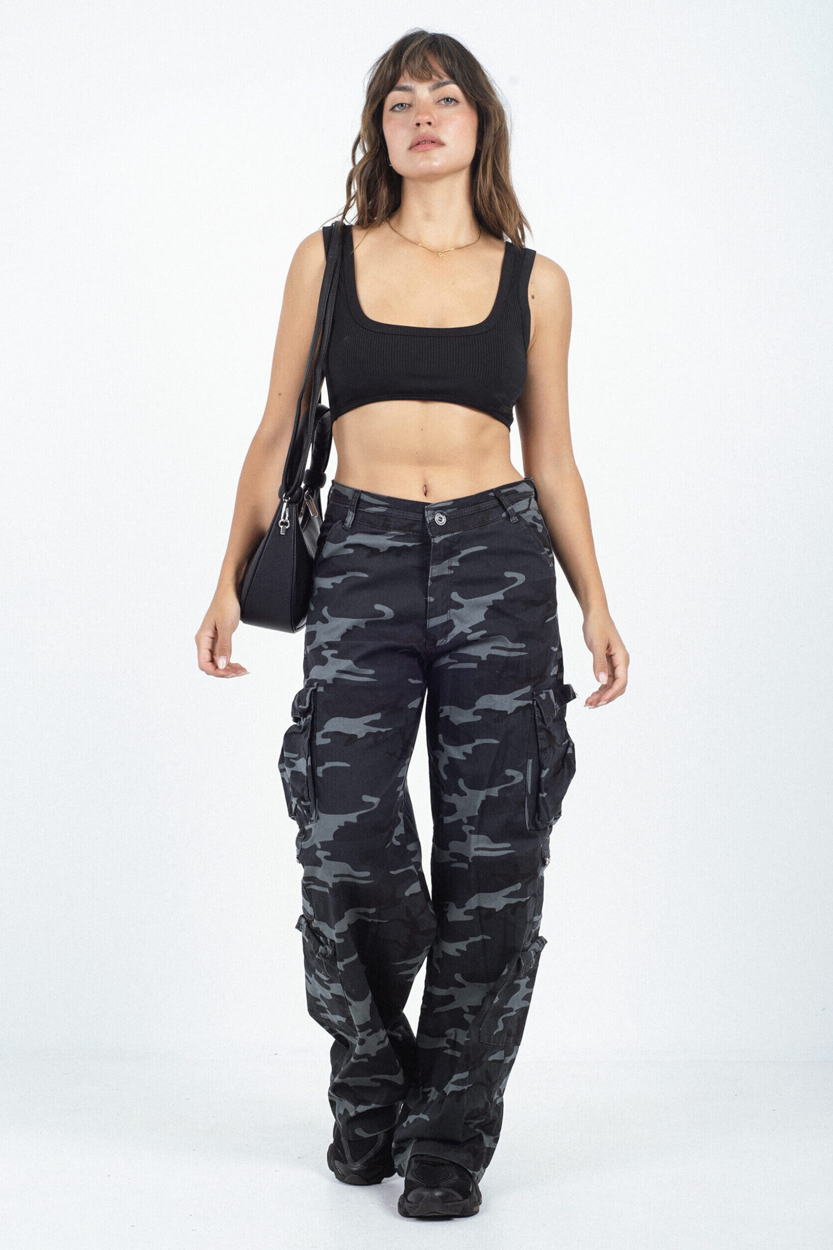 Este pantalón cargo de calce amplio combina inspiración militar y estética urbana.