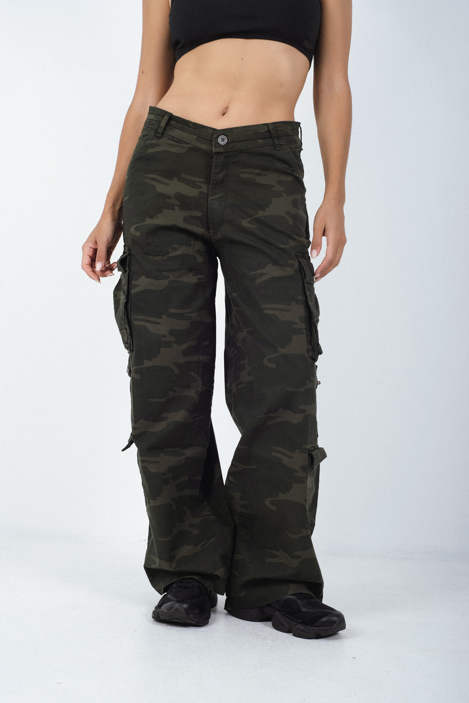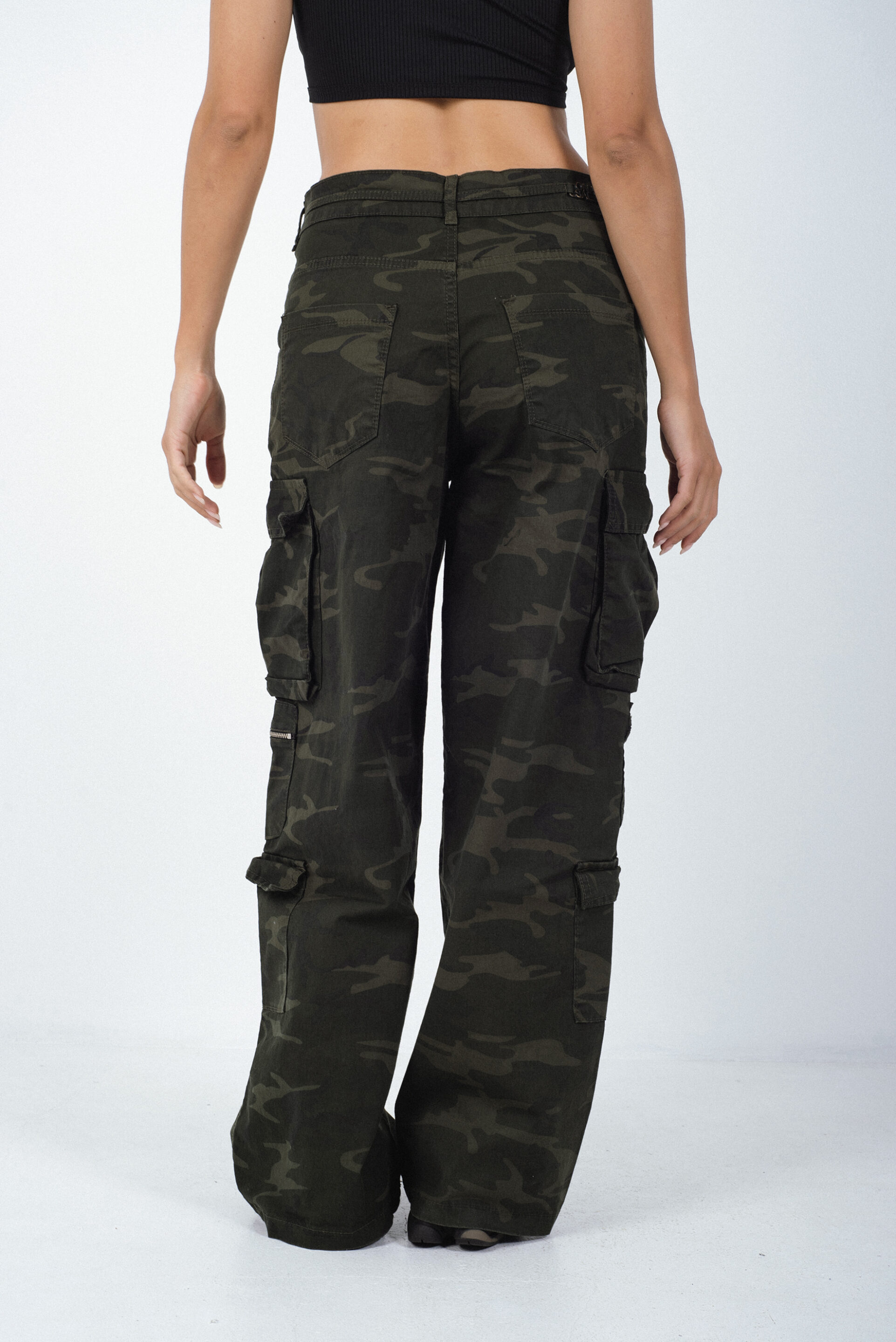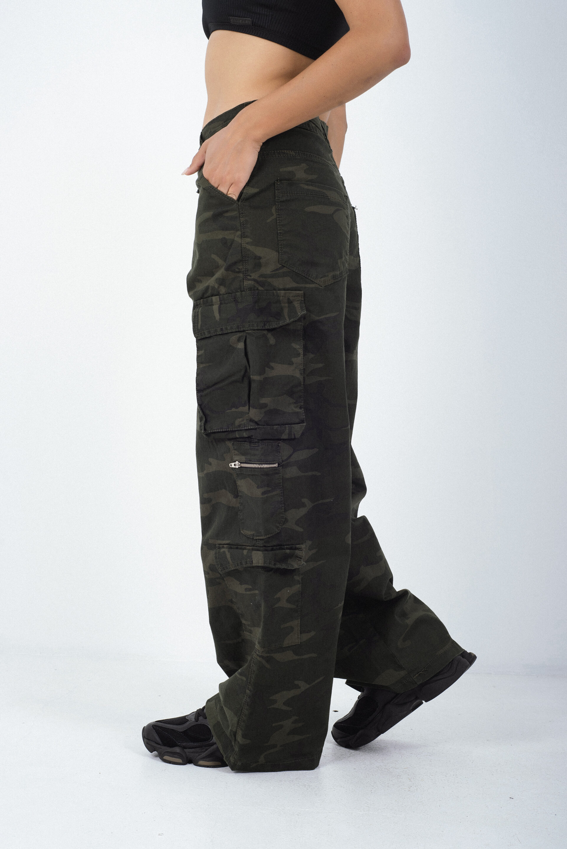 Este pantalón cargo de calce amplio combina inspiración militar y estética urbana.