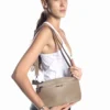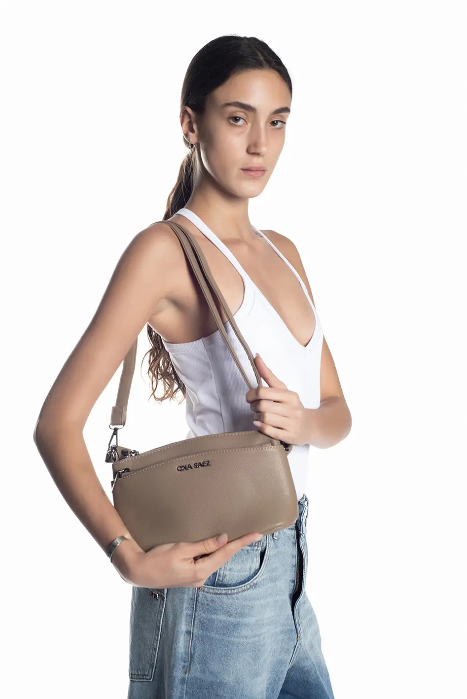 Cuenta con correa larga regulable y desmontable, que permite usarla tanto al hombro como cruzada.