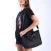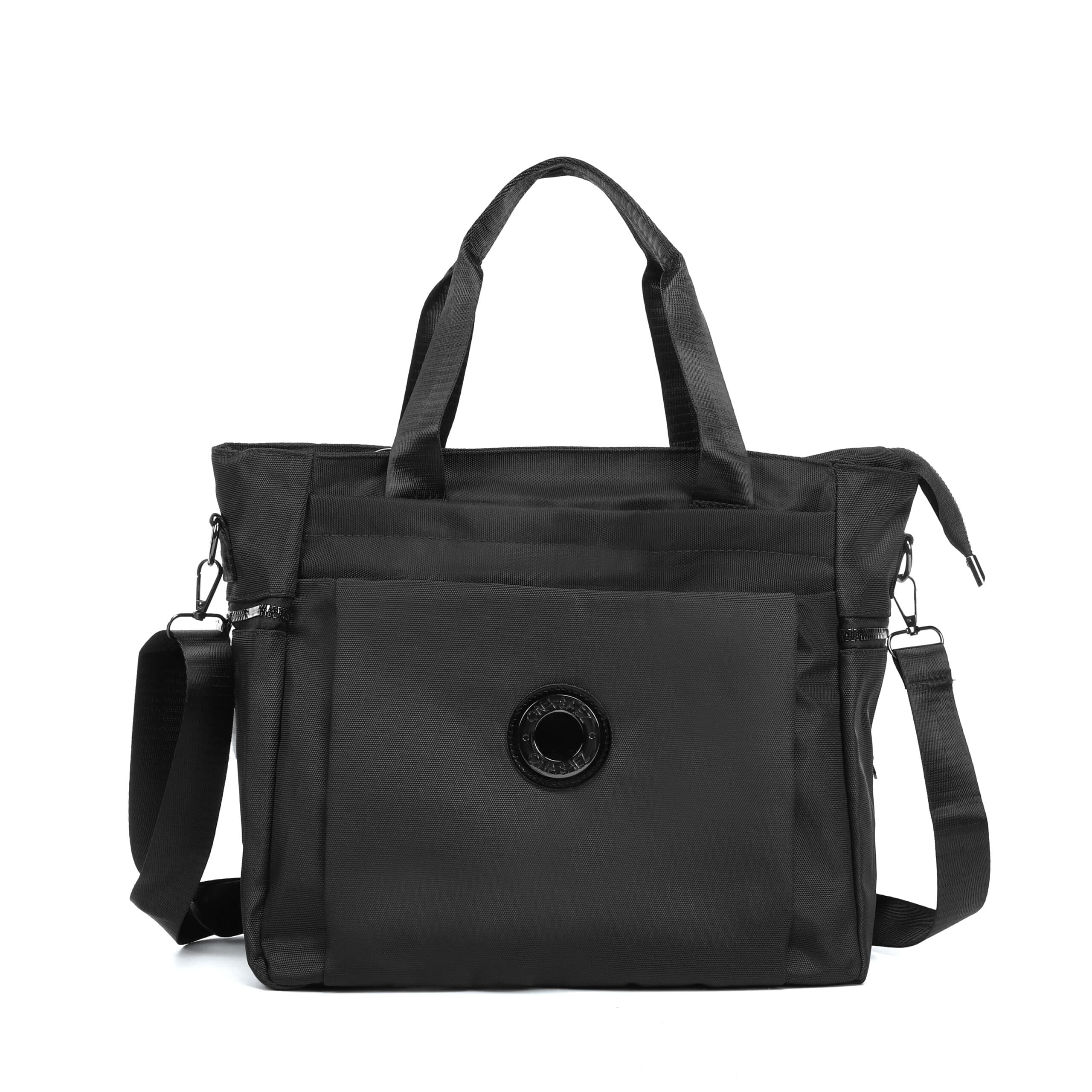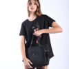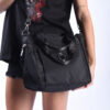 Cartera confeccionada en nylon 100%, color negro, con logo de marca al frente, ideal para quienes buscan un accesorio versátil para el día a día.