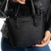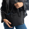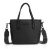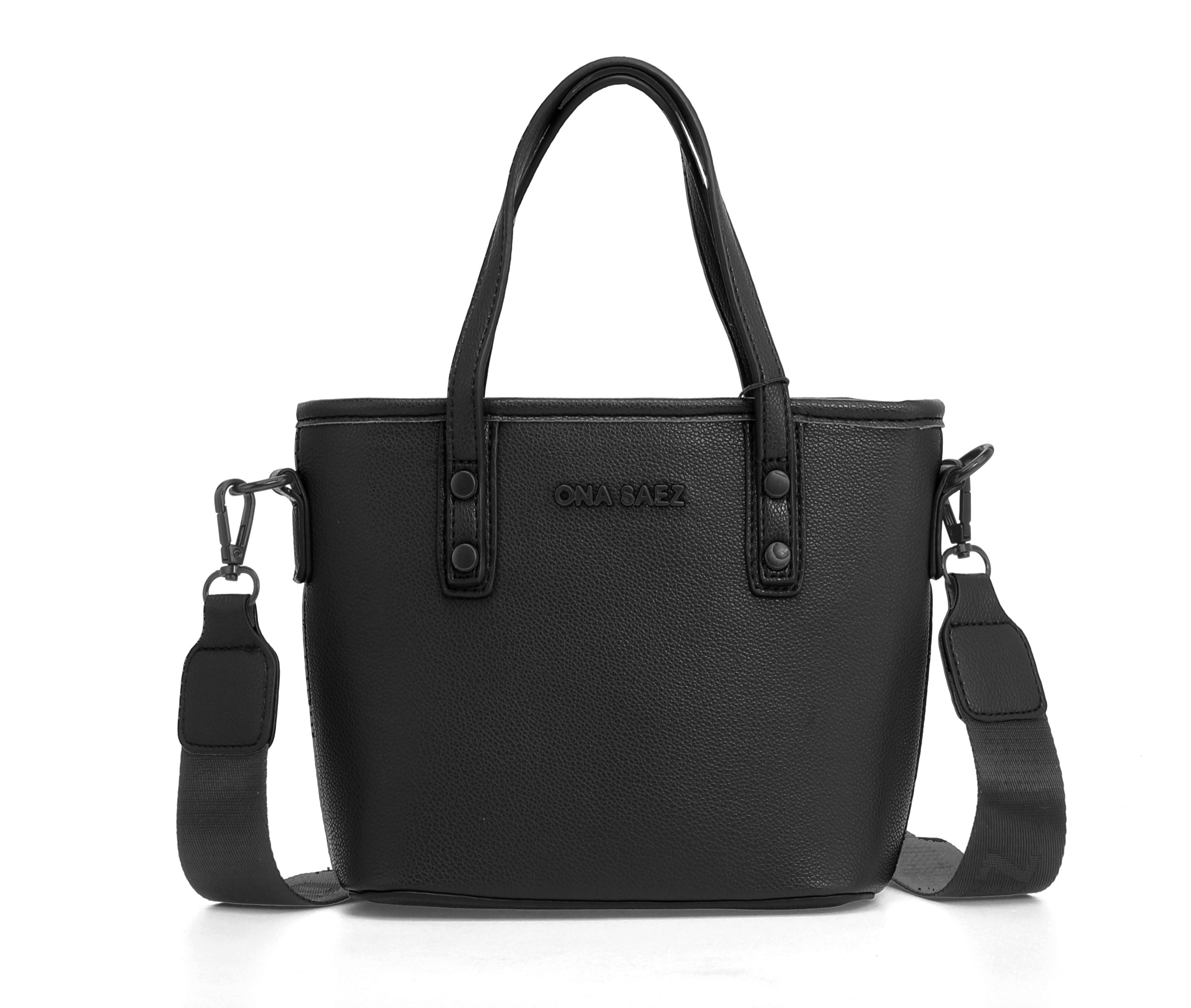 Doble correa, una corta para mano y una ajustable y desmontable para colgar al hombro, y herrajes en negro que aportan un estilo sofisticado y urbano.