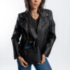 Cartera de tamaño mediano confeccionada en P U (simil cuero) color negra. Tiene un diseño moderno y funcional con cierre de cremallera, lo que permite una mejor organización.