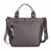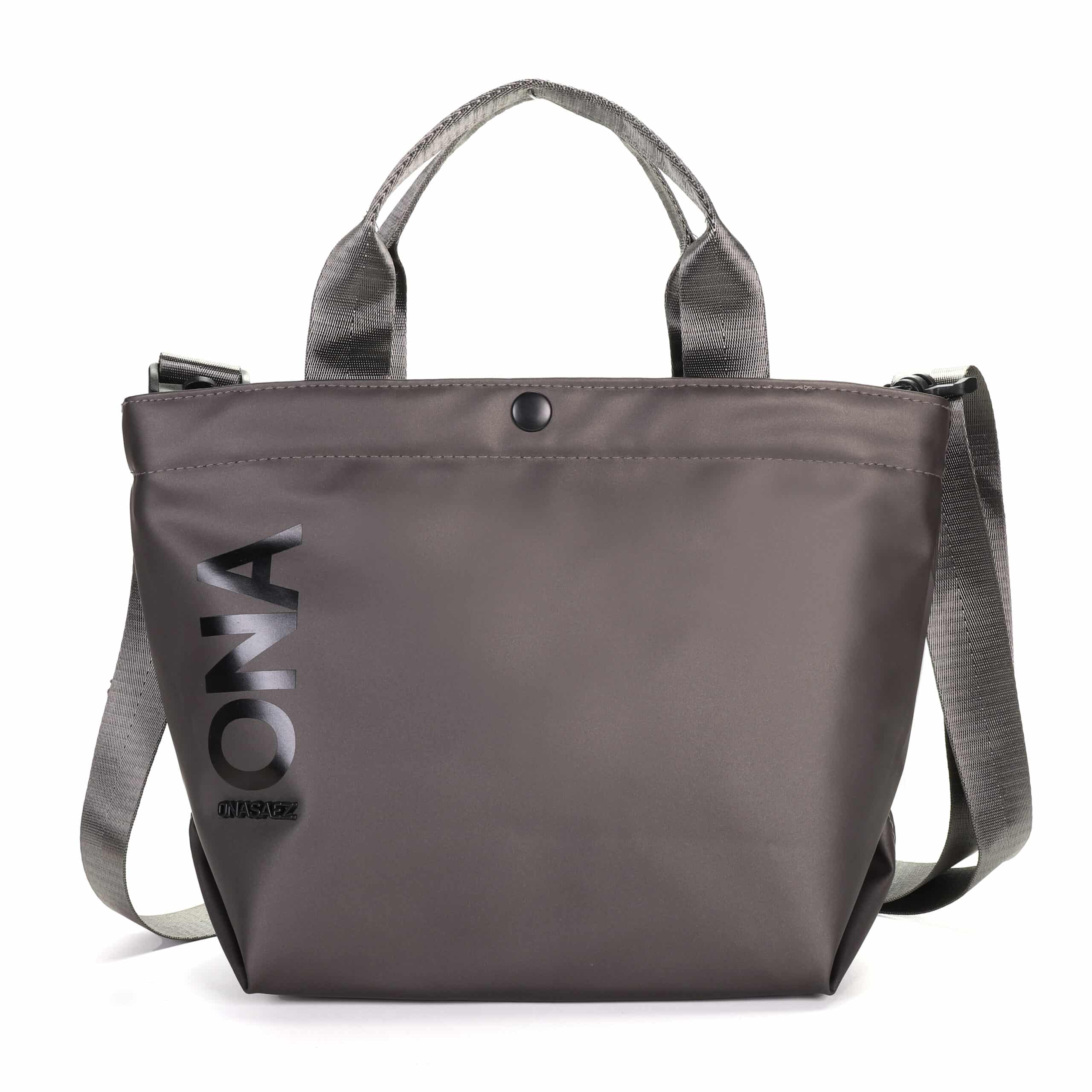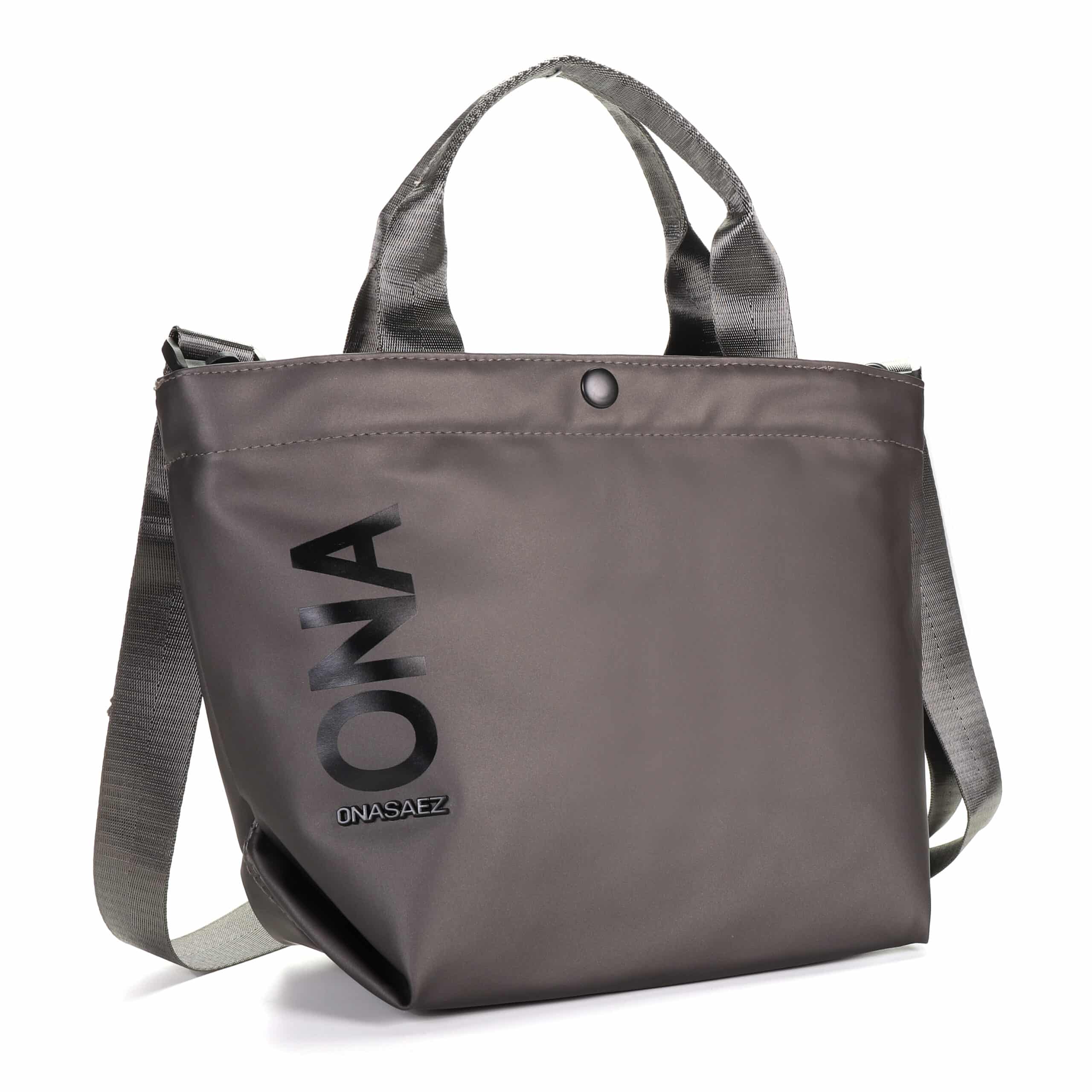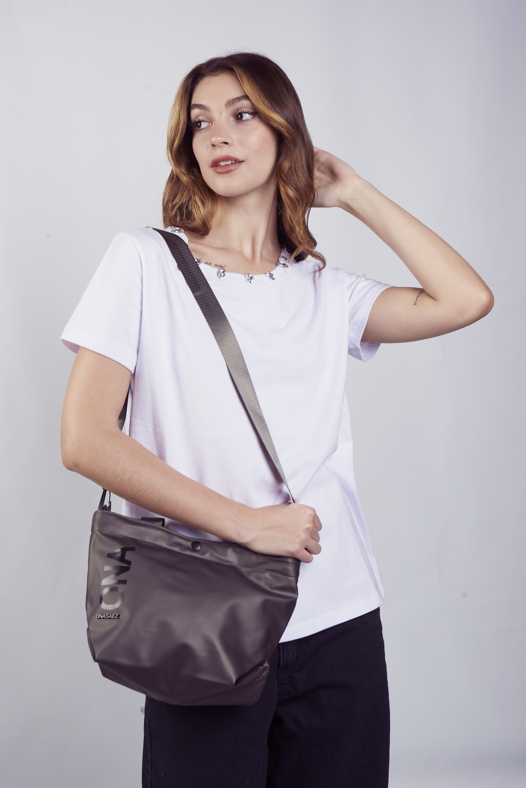 Asas cortas para llevarla en la  mano y correa ajustable para llevarla al hombro o cruzada, según tu preferencia. con un cierre superior seguro y un logotipo lateral en letras grandes con logo de marca a tono.