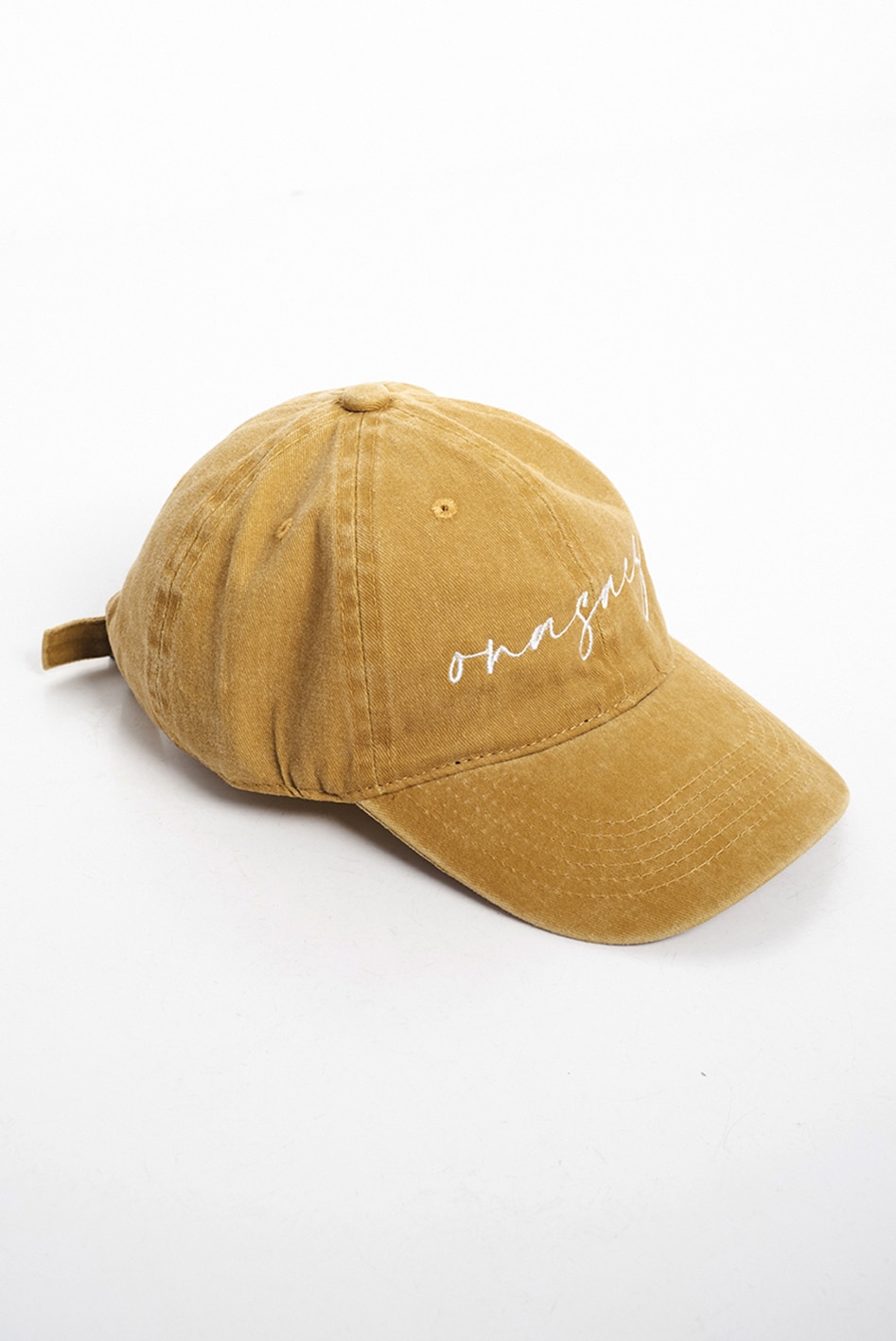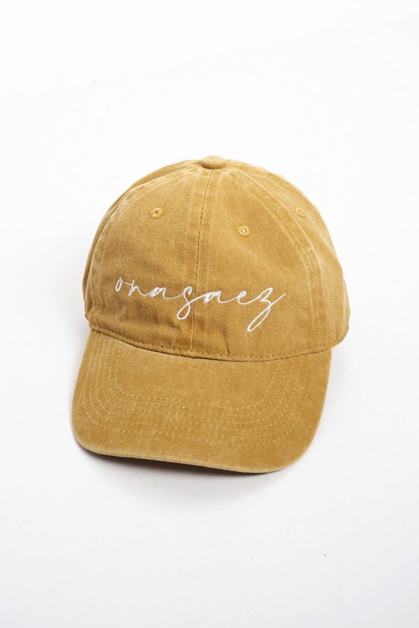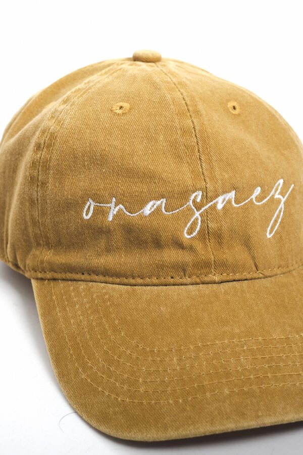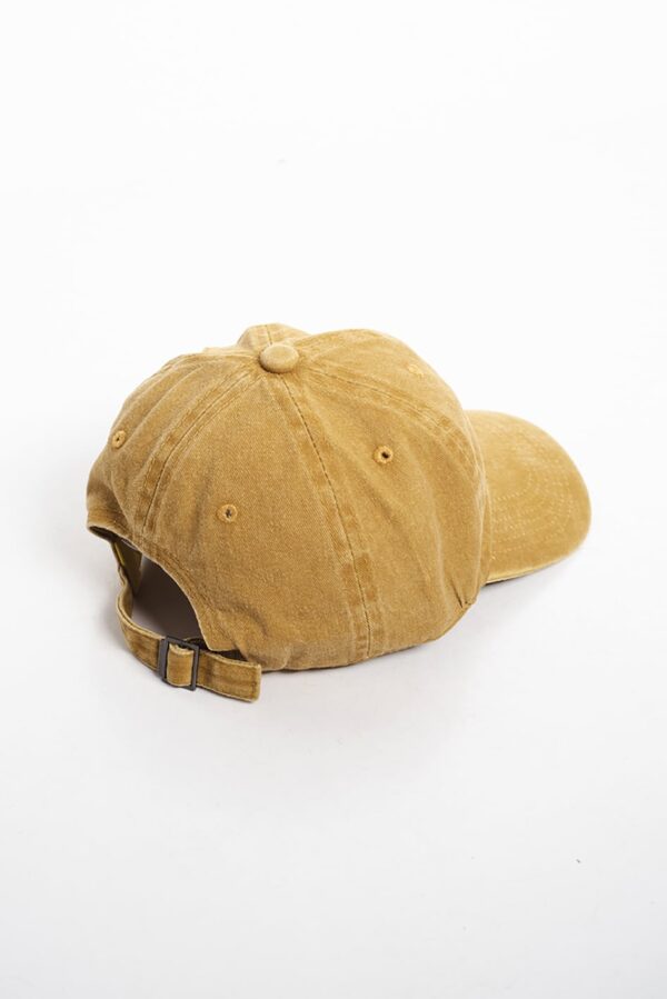 Gorra de gabardina 100% algodón Diseño vintage gastado color amarillo, con bordado en relieve 3D del logo a contra tono. Diseño estructurado, visera curva y ajuste trasero para un calce cómodo y versátil.