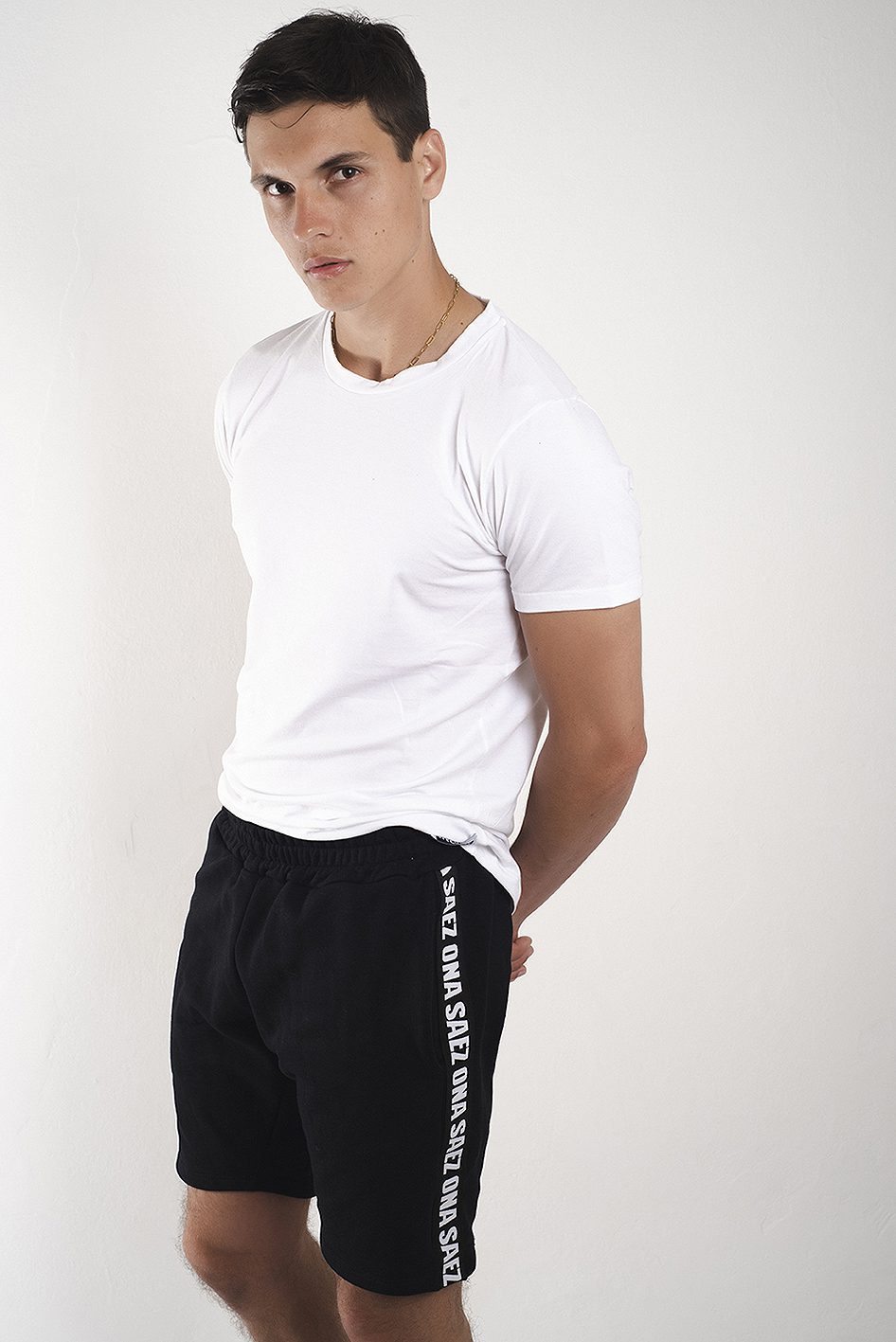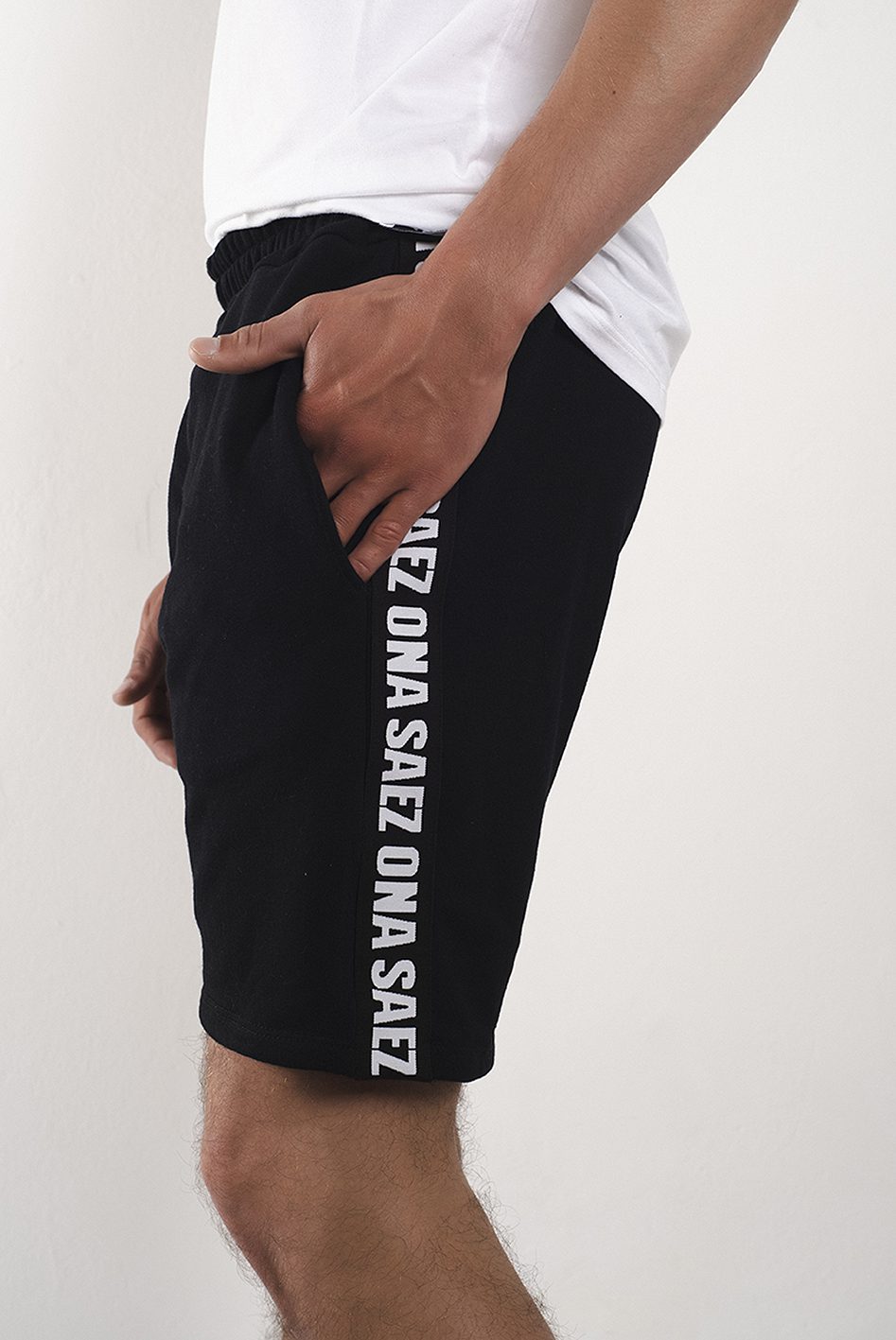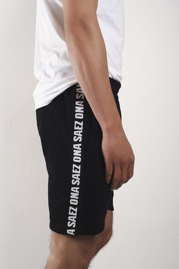 Cintura de rib, bolsillos ojal y detalle de cinta de marca bordada a contra tono en los laterales.