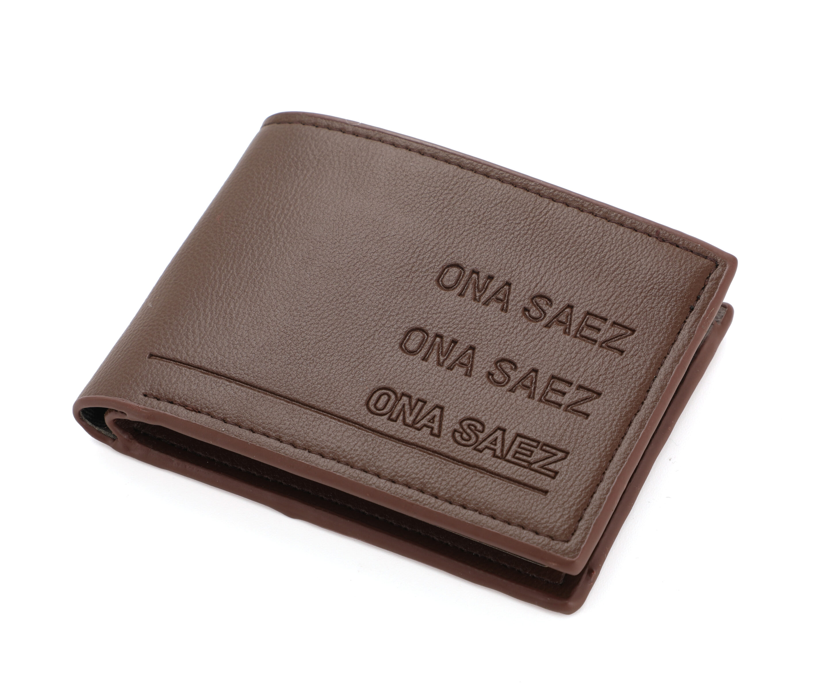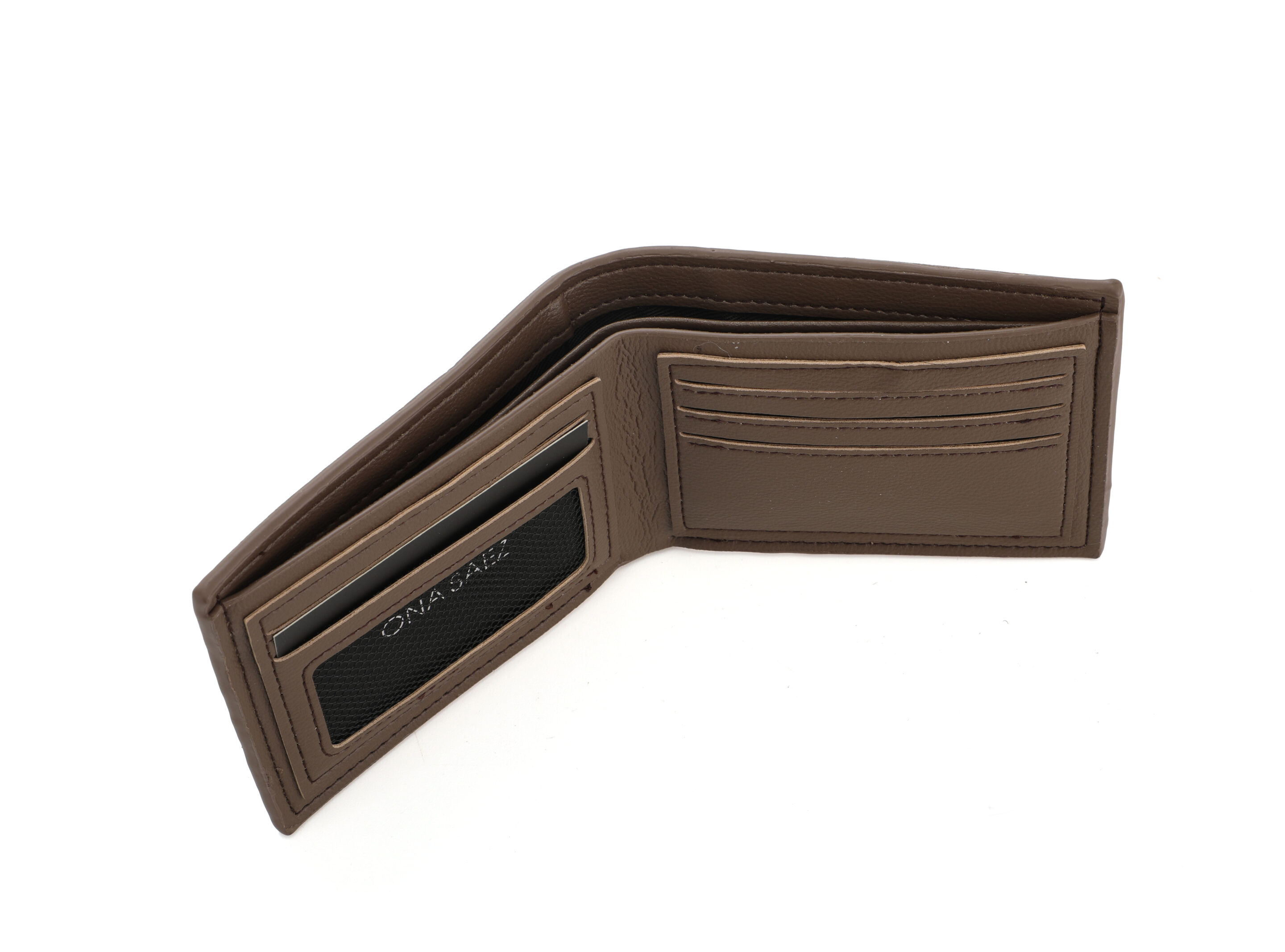 Esta billetera esta confeccionada en material PU (símil cuero) de acabado color coffee. El diseño incluye un grabado con el logo de la marca Ona Saez en el frente, aportando un detalle moderno y distintivo.