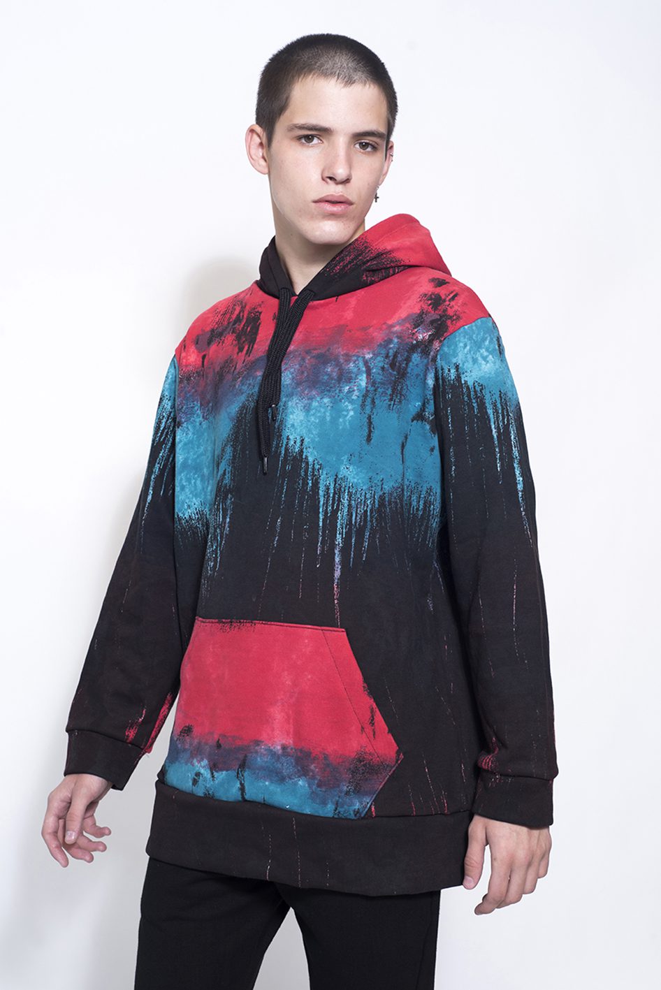 Con capucha doble forrada y puños de rib en las mangas y en la cintura.