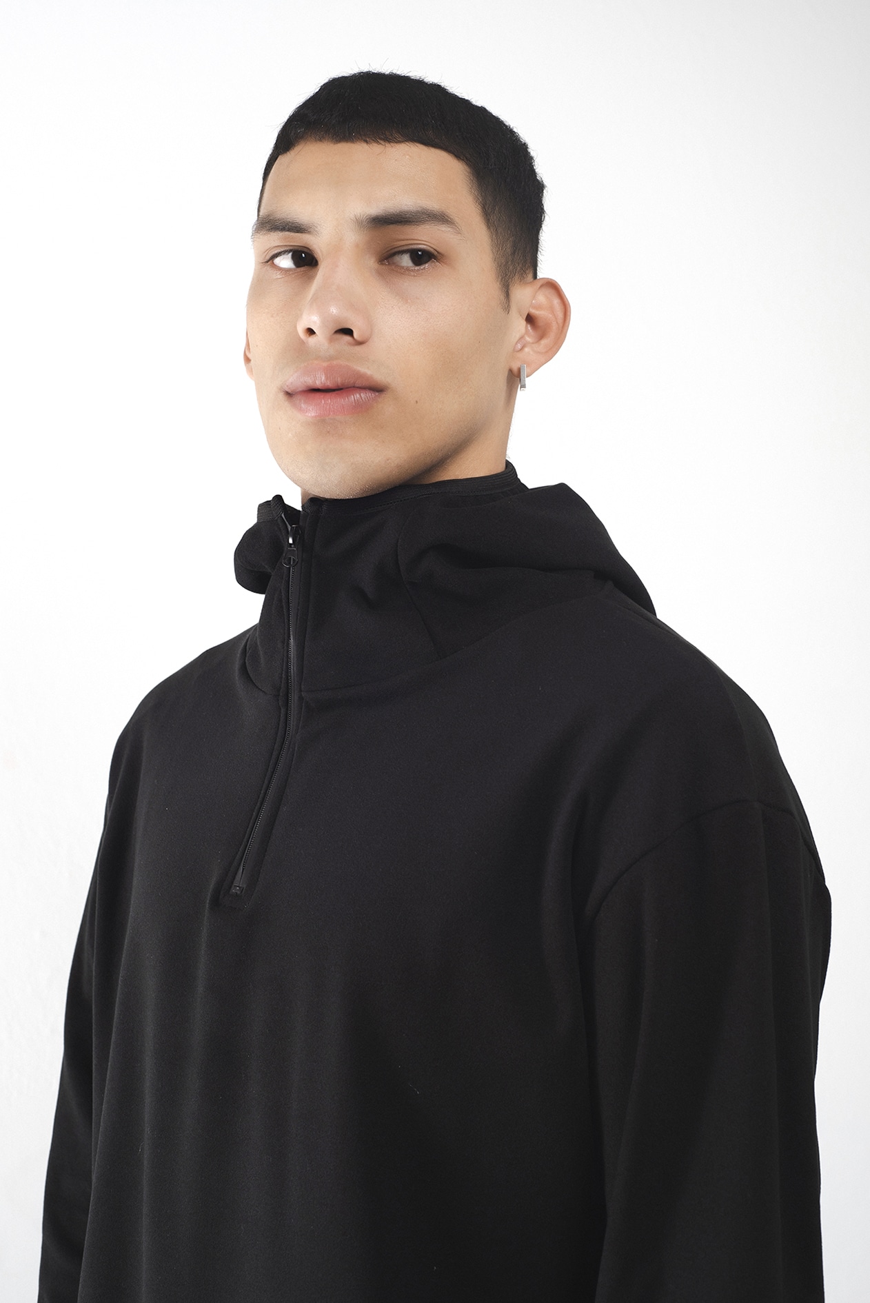 Buzo tipo canguro confeccionado en micropolar, tela super liviana y flexible de secado rápido.