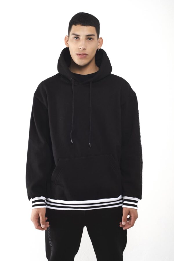 Buzo tipo canguro, confeccionado en rustico 100% algodón con friza, con capucha doble forrada.