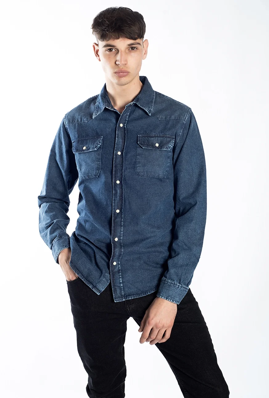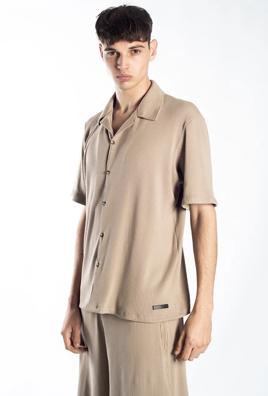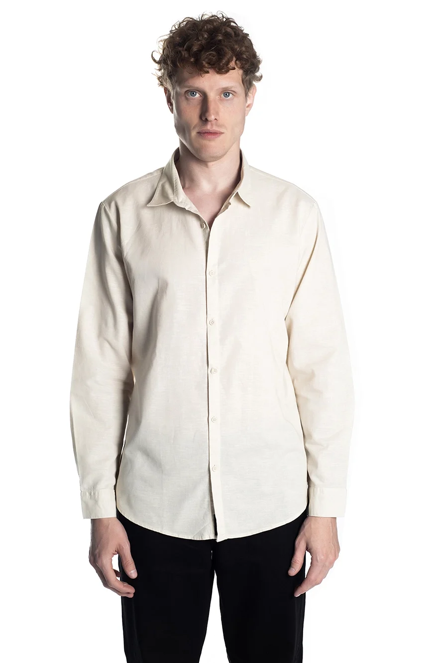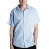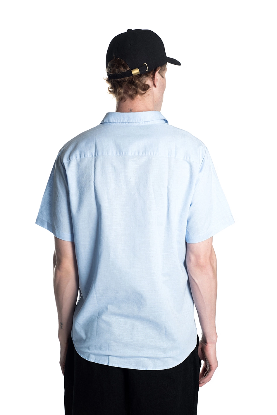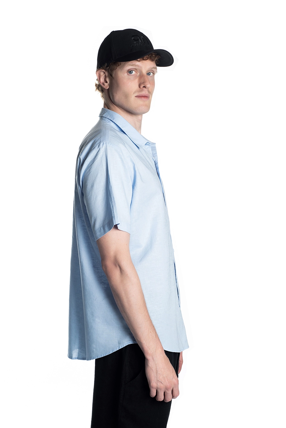 Camisa manga corta relaxed fit, confeccionada en tejido de lino color celeste.