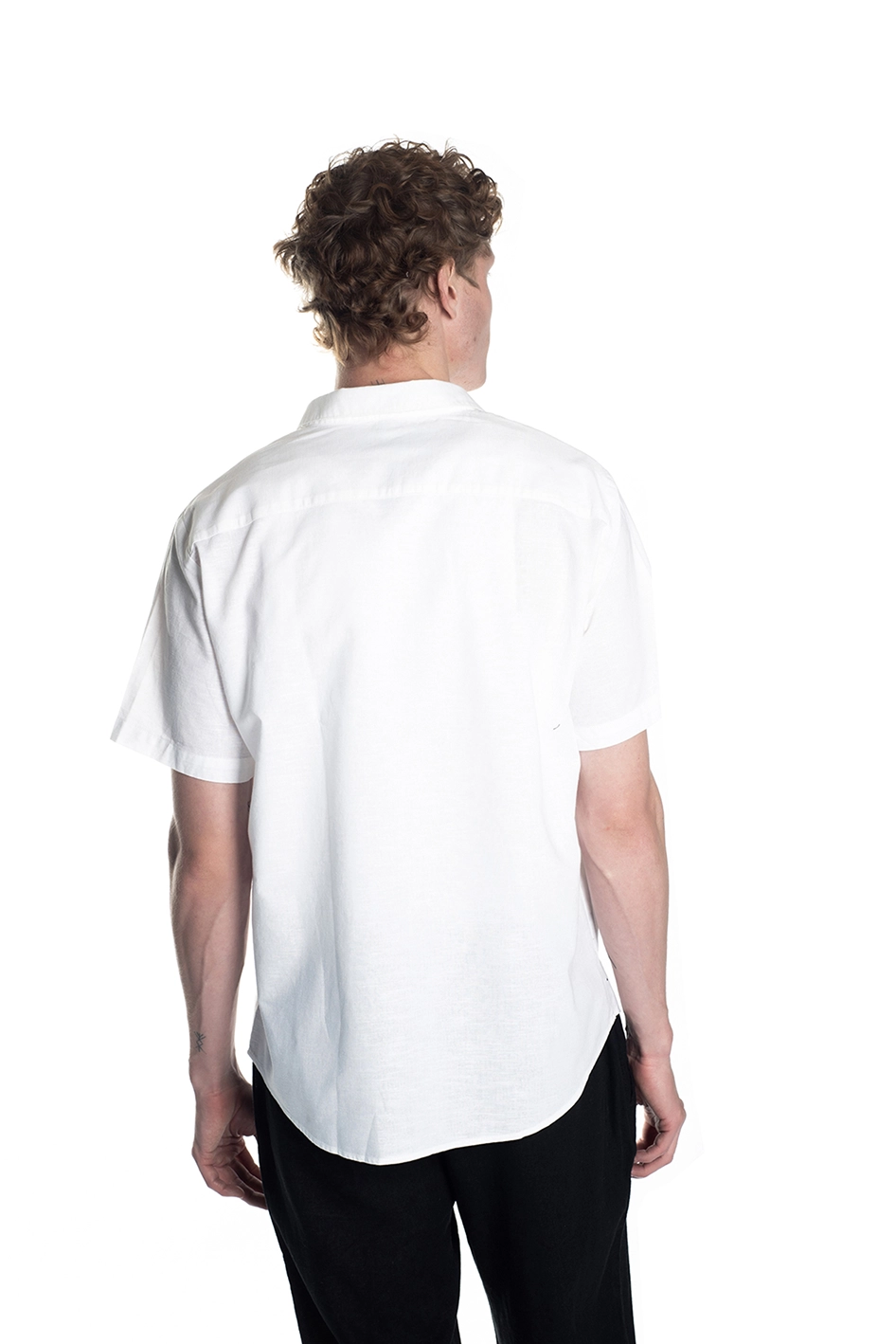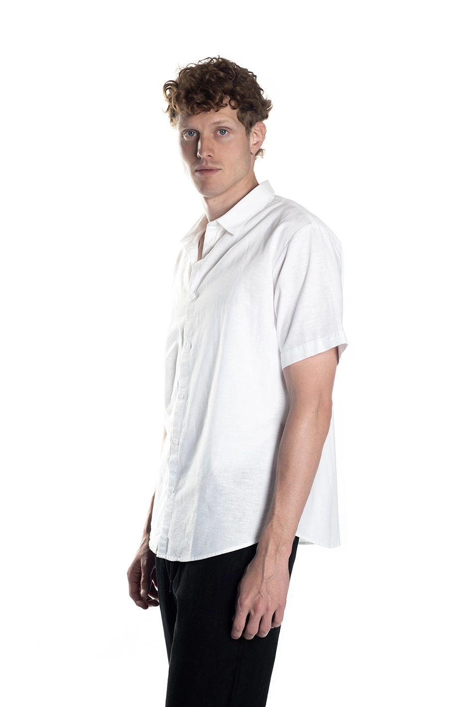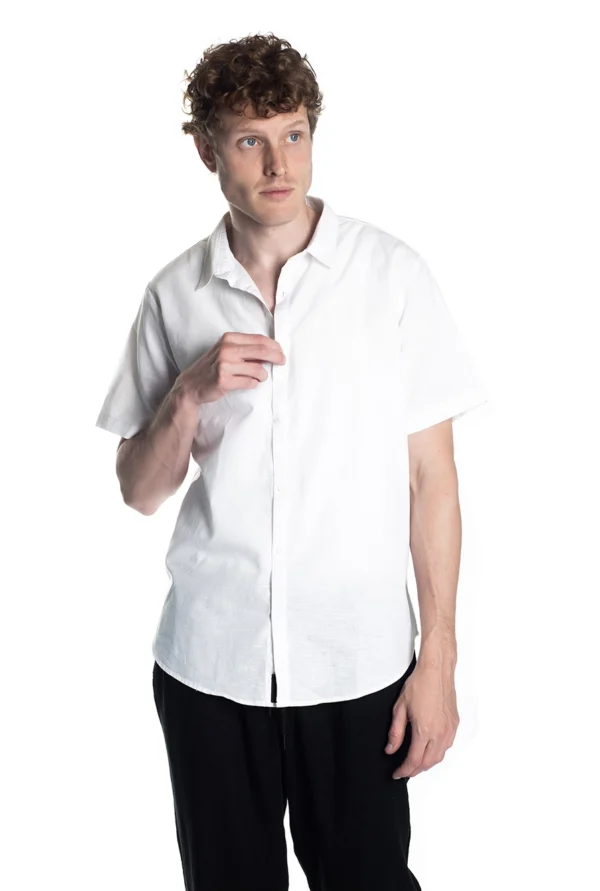 Camisa manga corta relaxed fit, confeccionada en tejido de lino color blanca.
