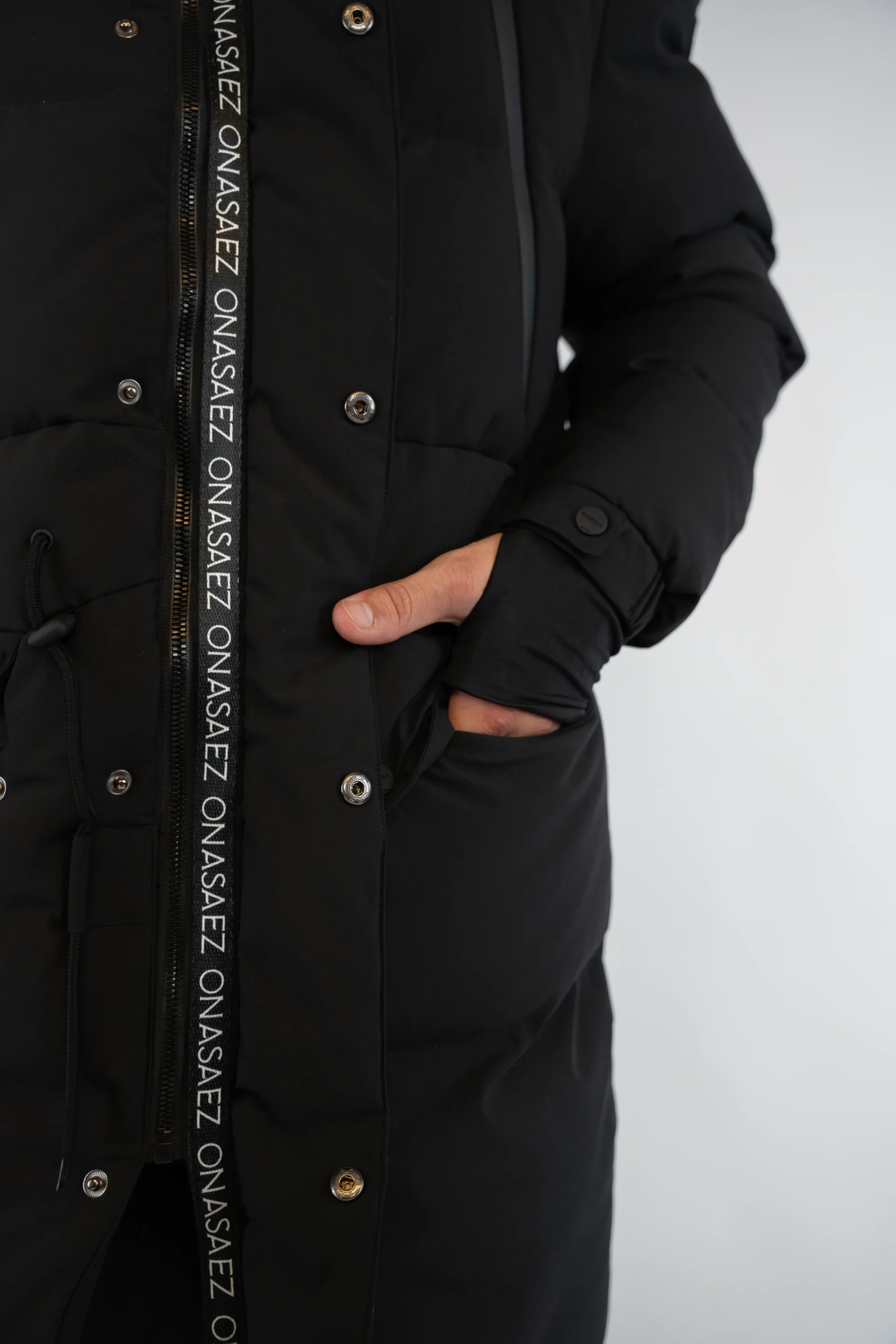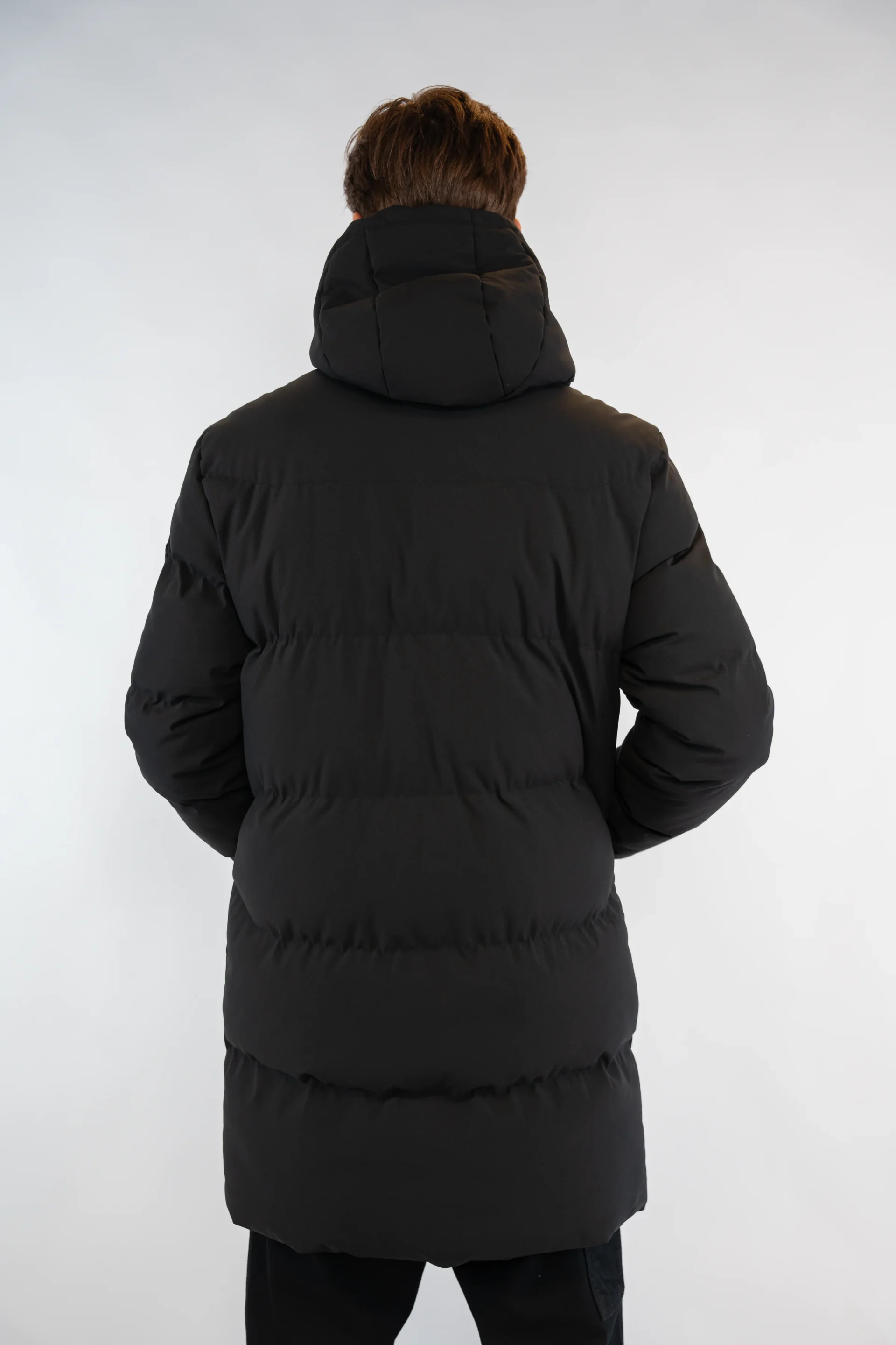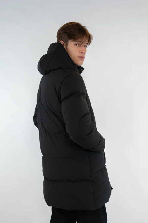 Parka larga confeccionada en tejido técnico de alto rendimiento, diseñada para ofrecer máxima protección en condiciones climáticas frías. Cuenta con un diseño limpio y funcional, con estructura acolchada que proporciona aislamiento térmico sin comprometer la ligereza ni la libertad de movimiento.