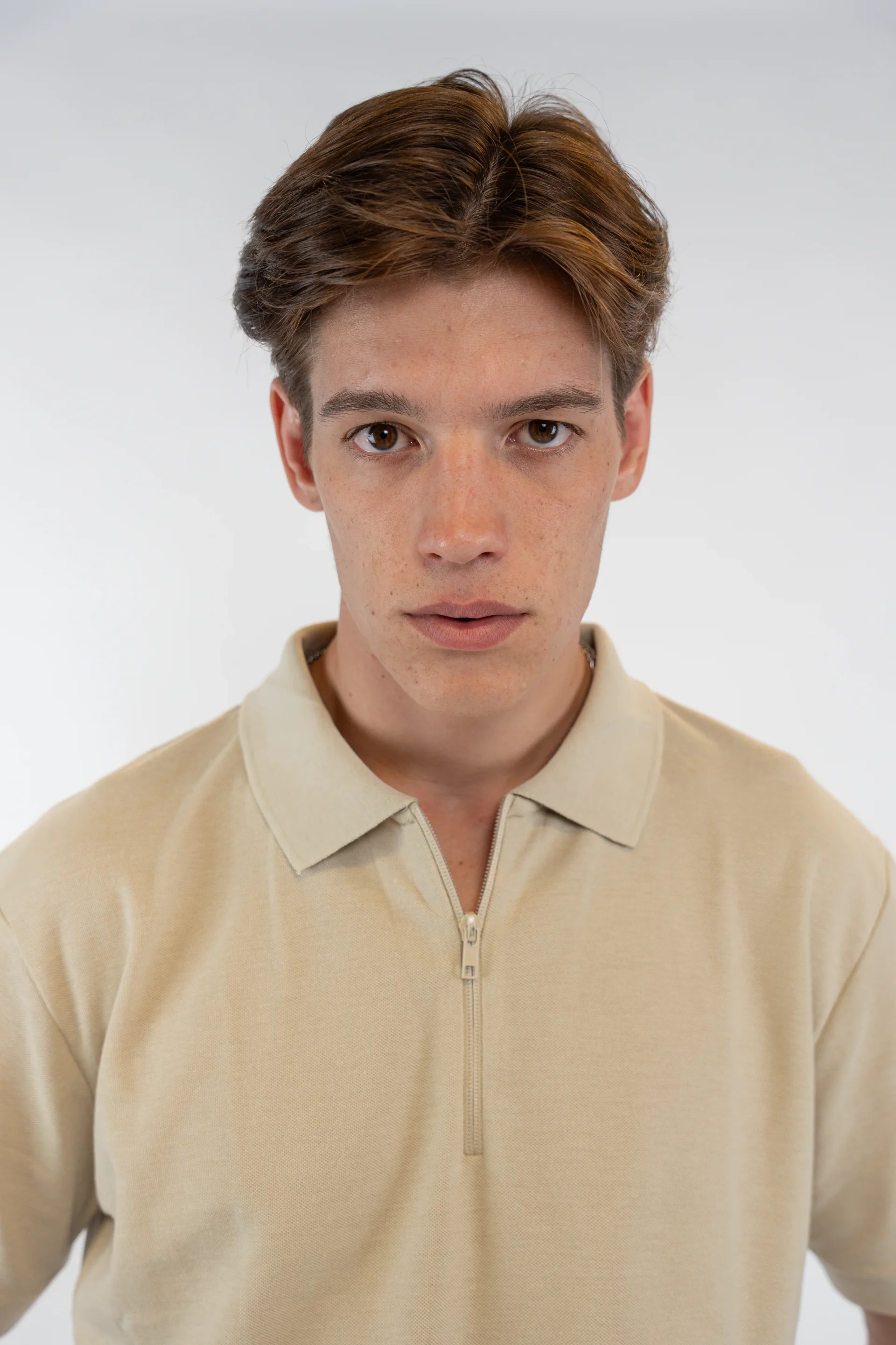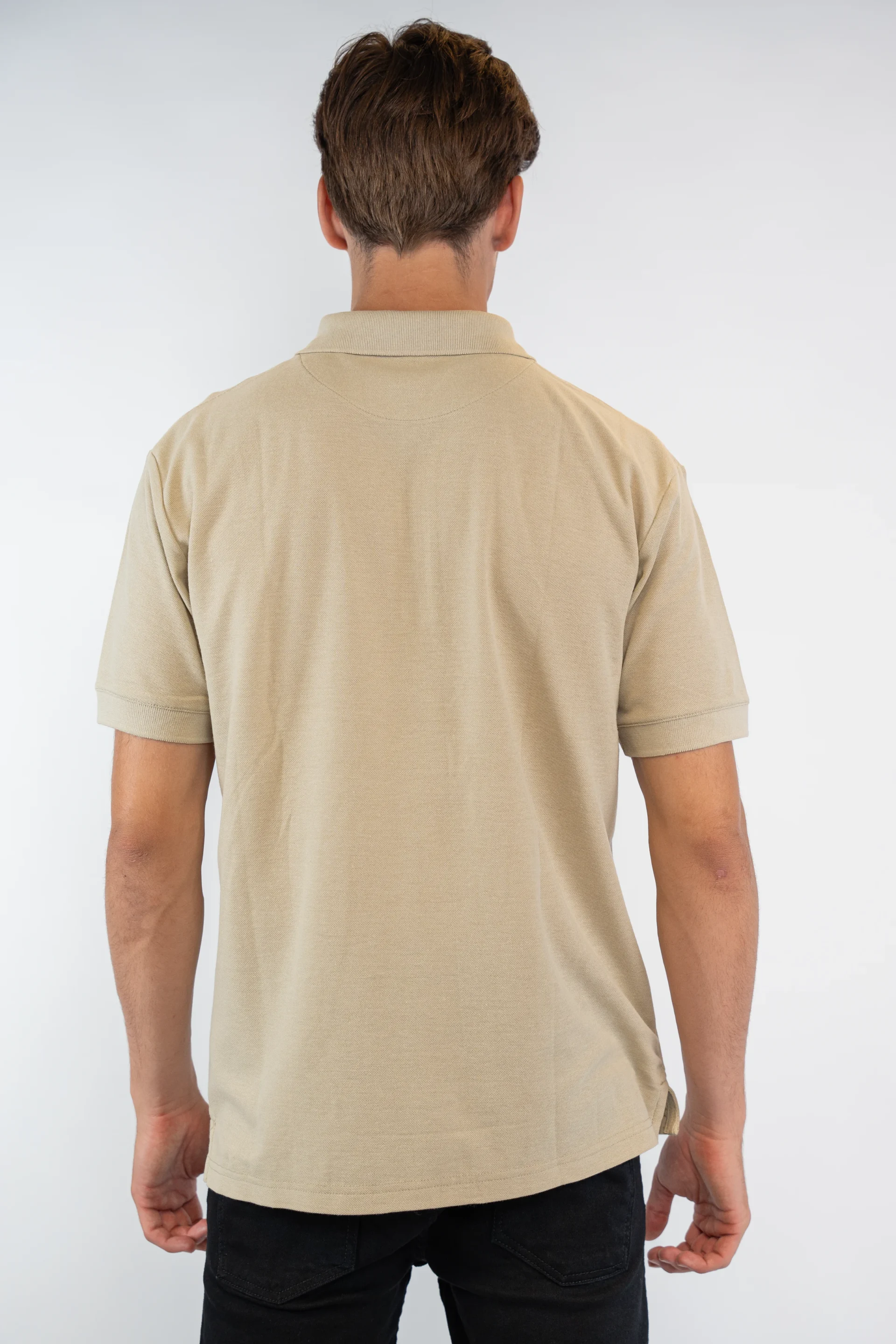 Chomba de corte clásico, manga corta confeccionada en micropiqué con spandex color Beige, liviana y sumamente cómoda. El tejido de micro piqué aporta una textura sutil y permite una mayor transpirabilidad.