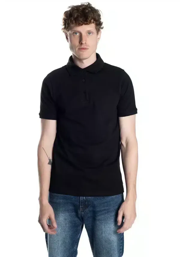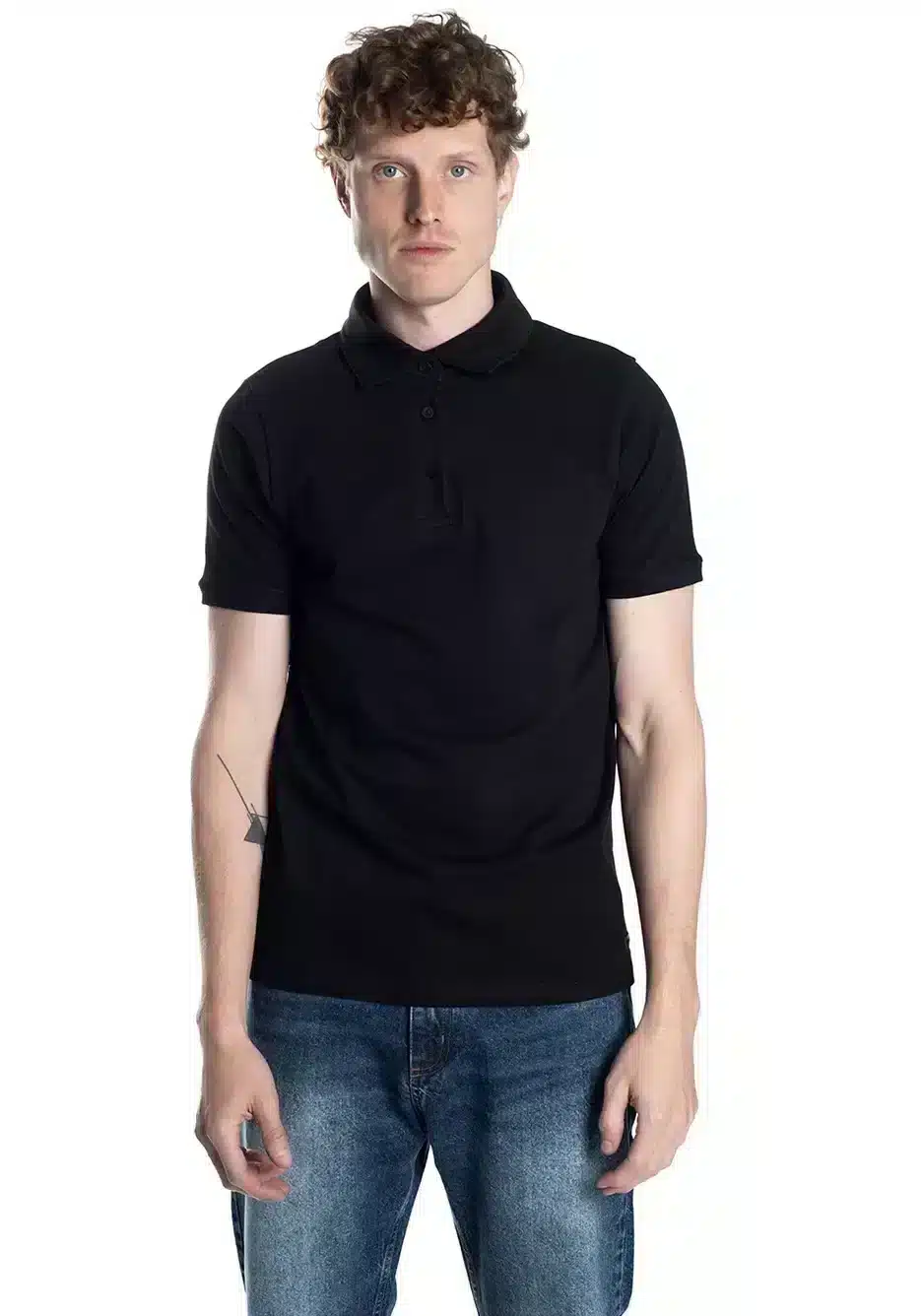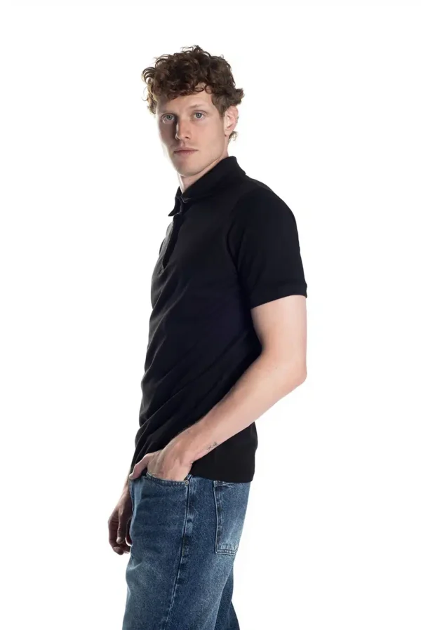 Chomba de corte clásico, manga corta confeccionada en pique color negro, liviana y sumamente cómoda con estampa de talle y marca interna.