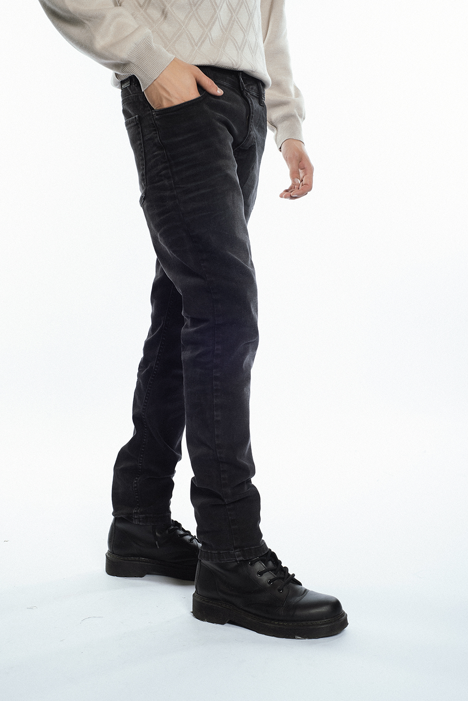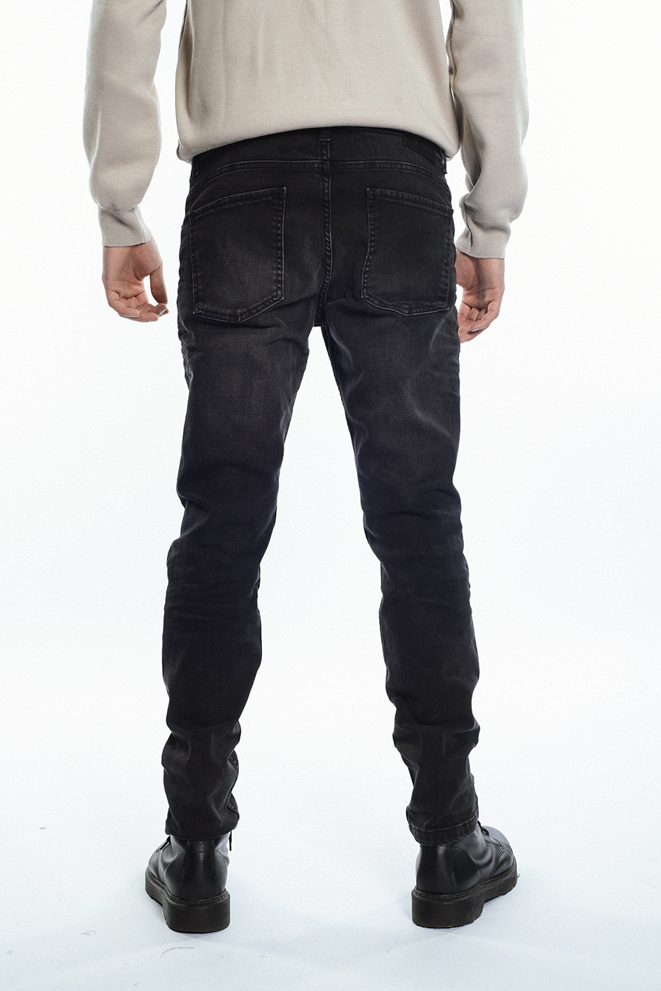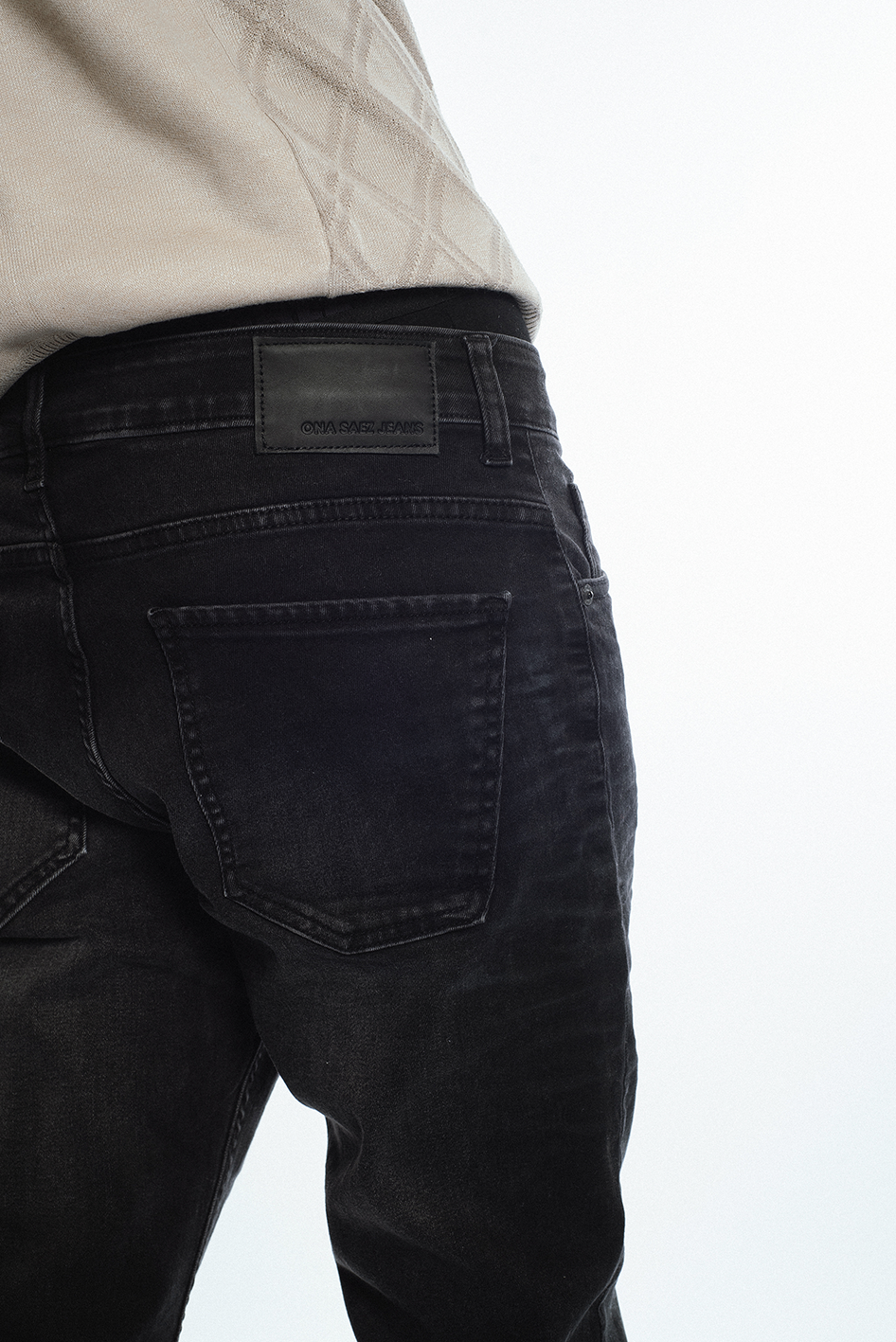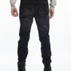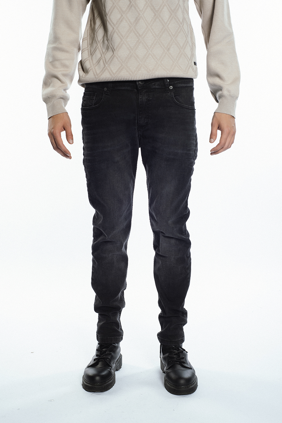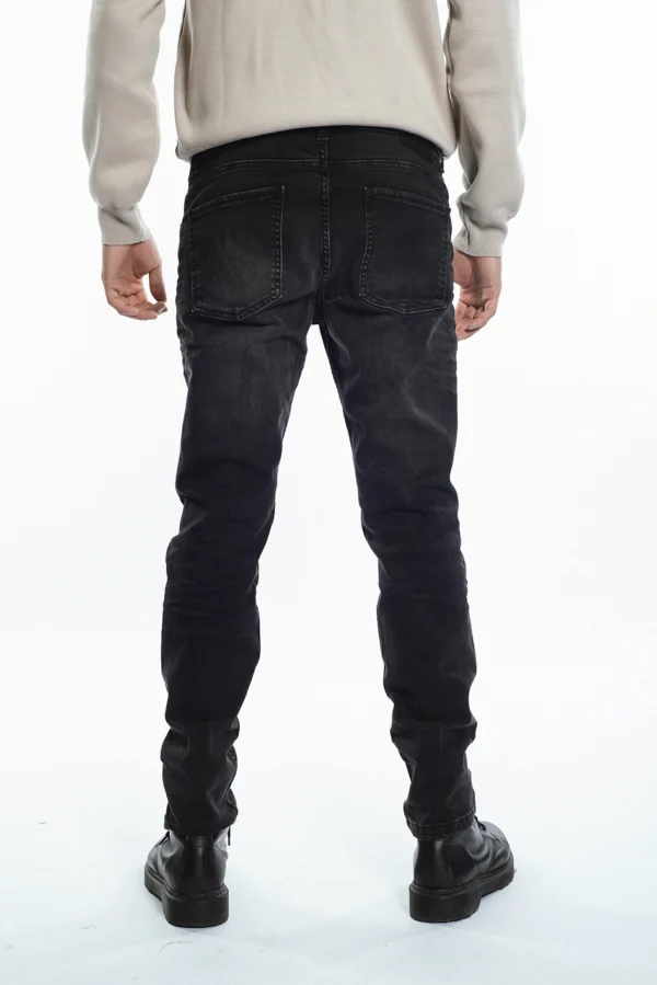 Jean slim, confeccionado en tejido super strech, color negro con localizado.