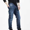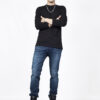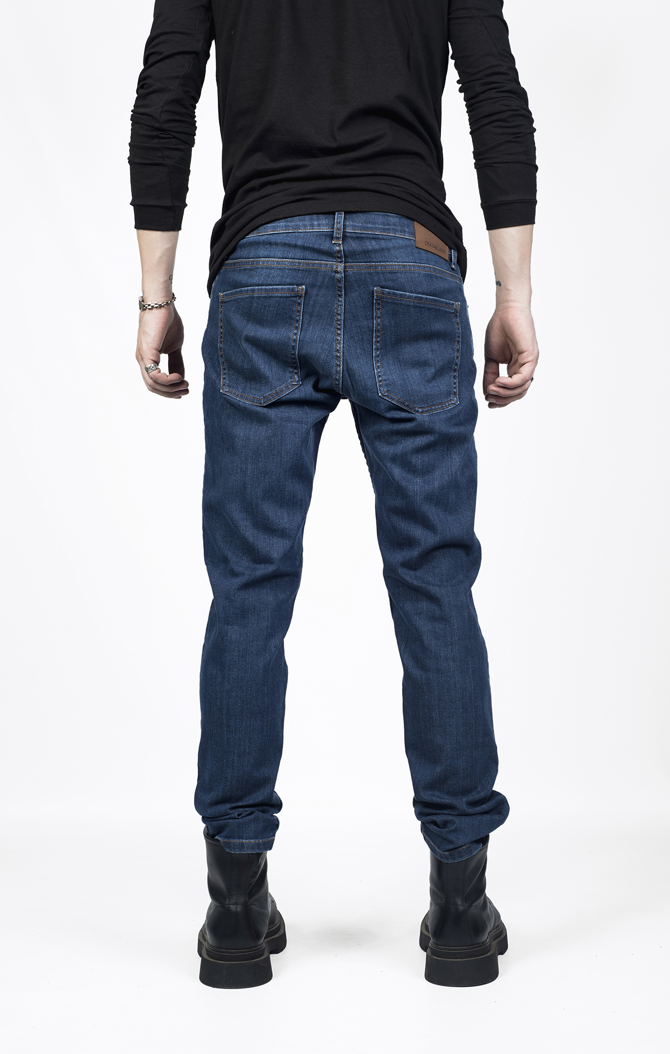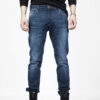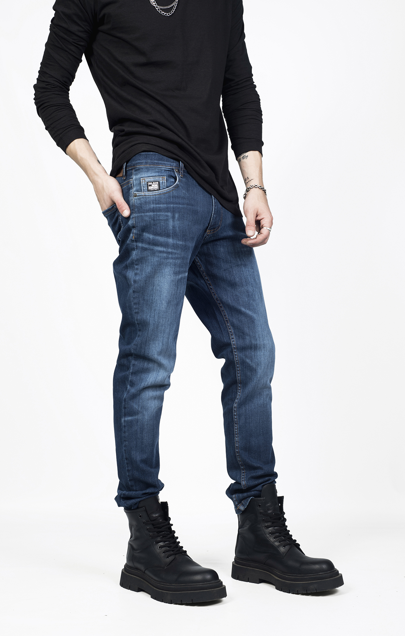 Jean slim fit, confeccionado en Denim stretch, lavado azul oscuro con localizado y bigotes laser.