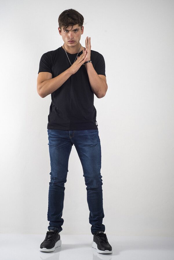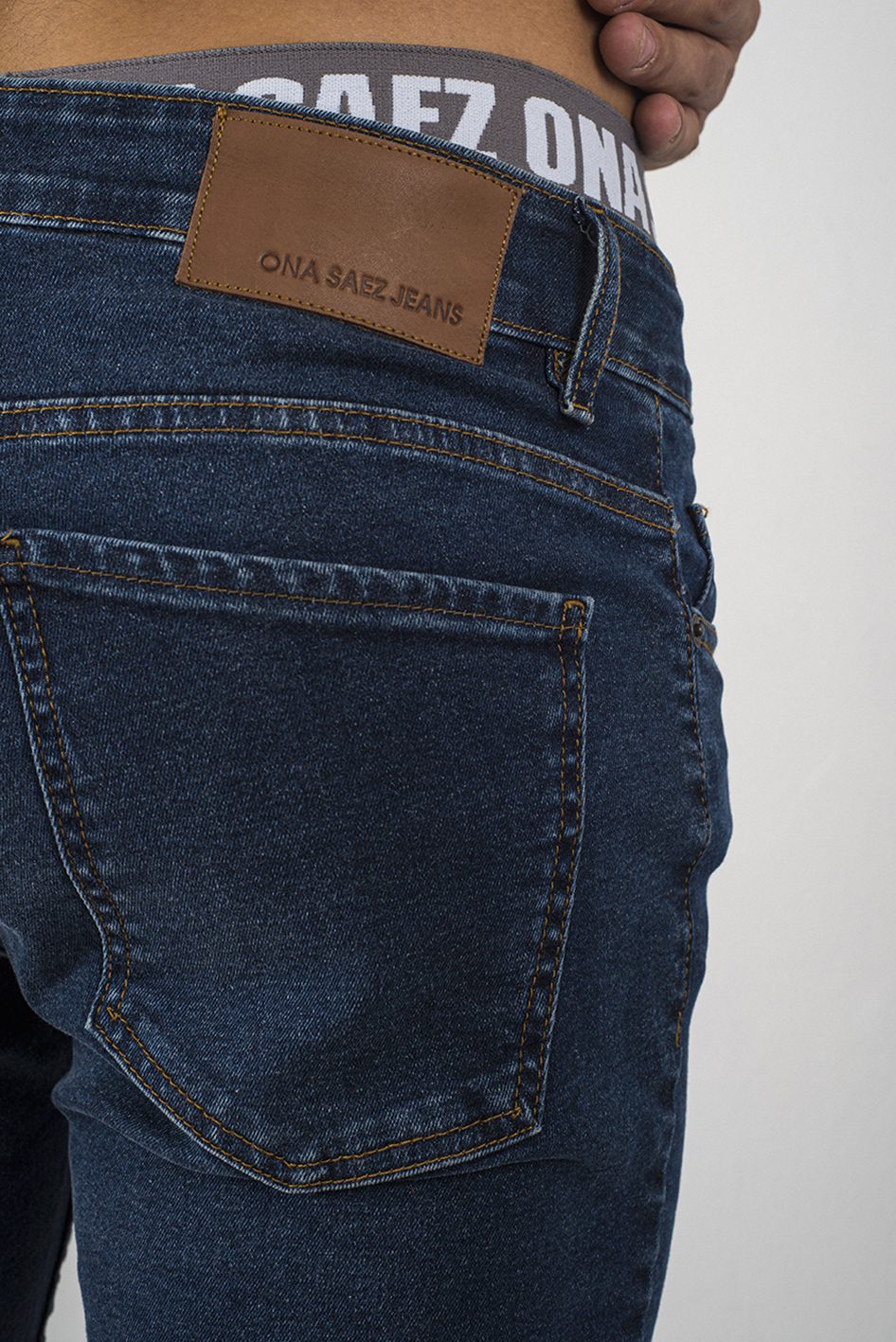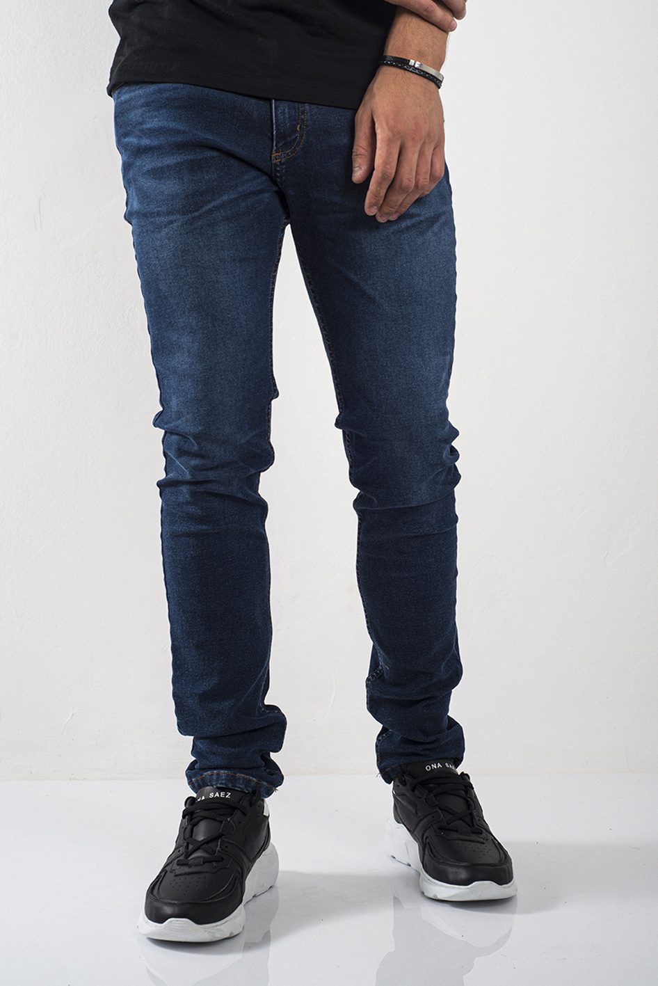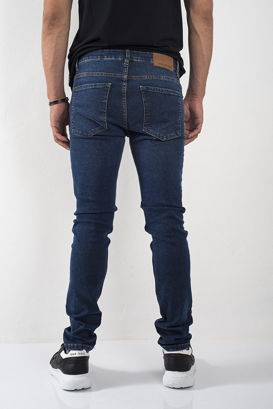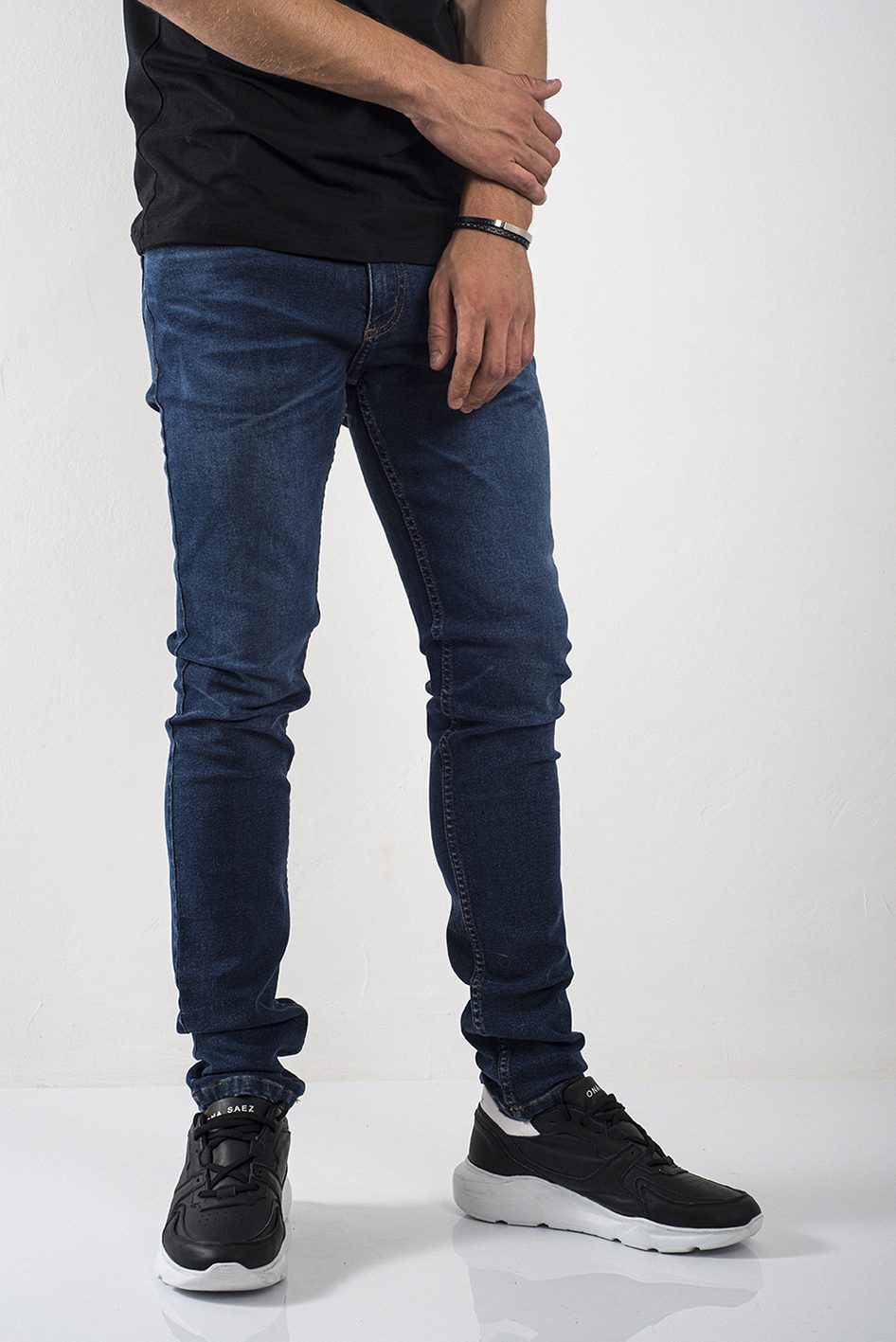 Jean slim fit, con cinco bolsillos cierre frontal y botón metálico de marca.