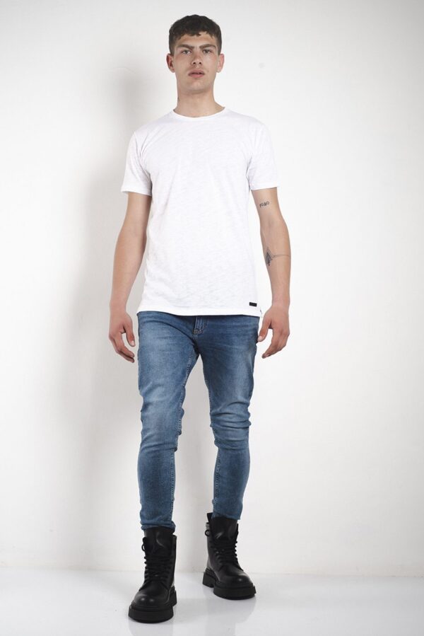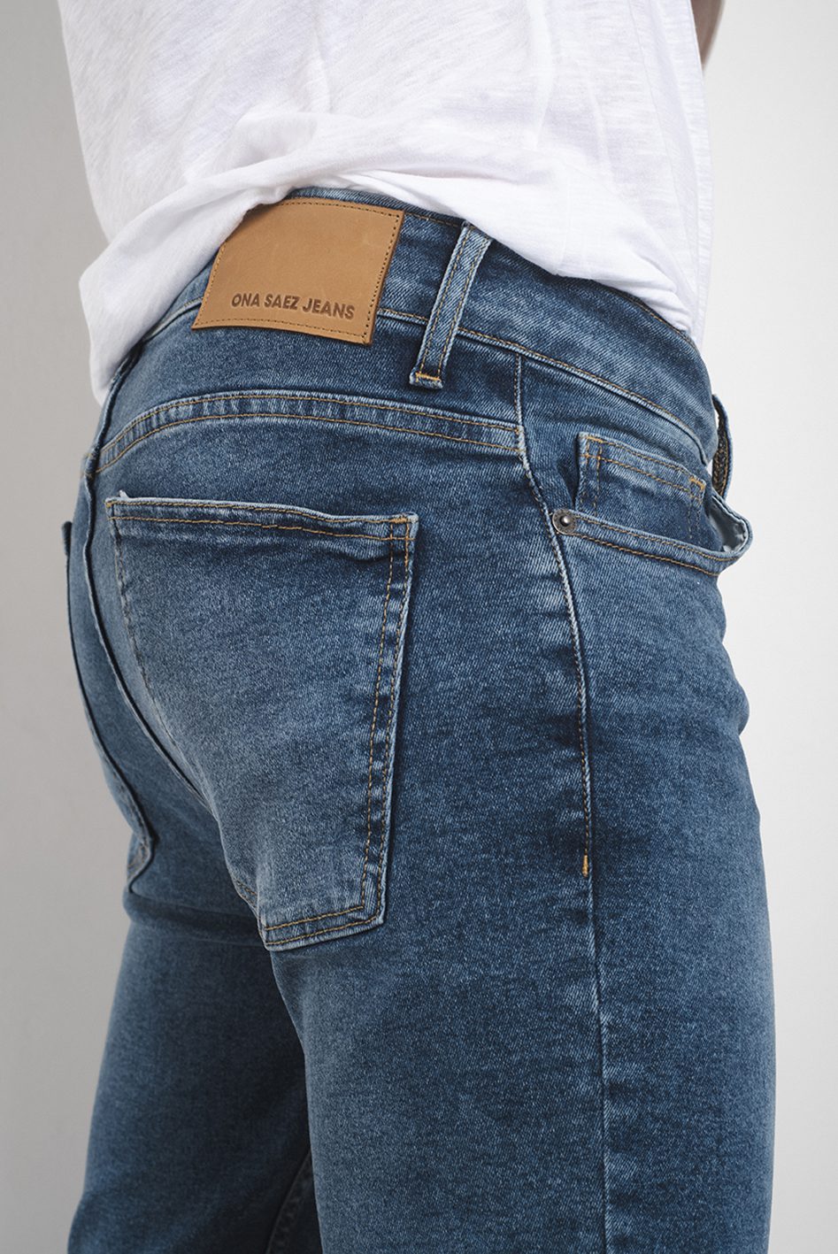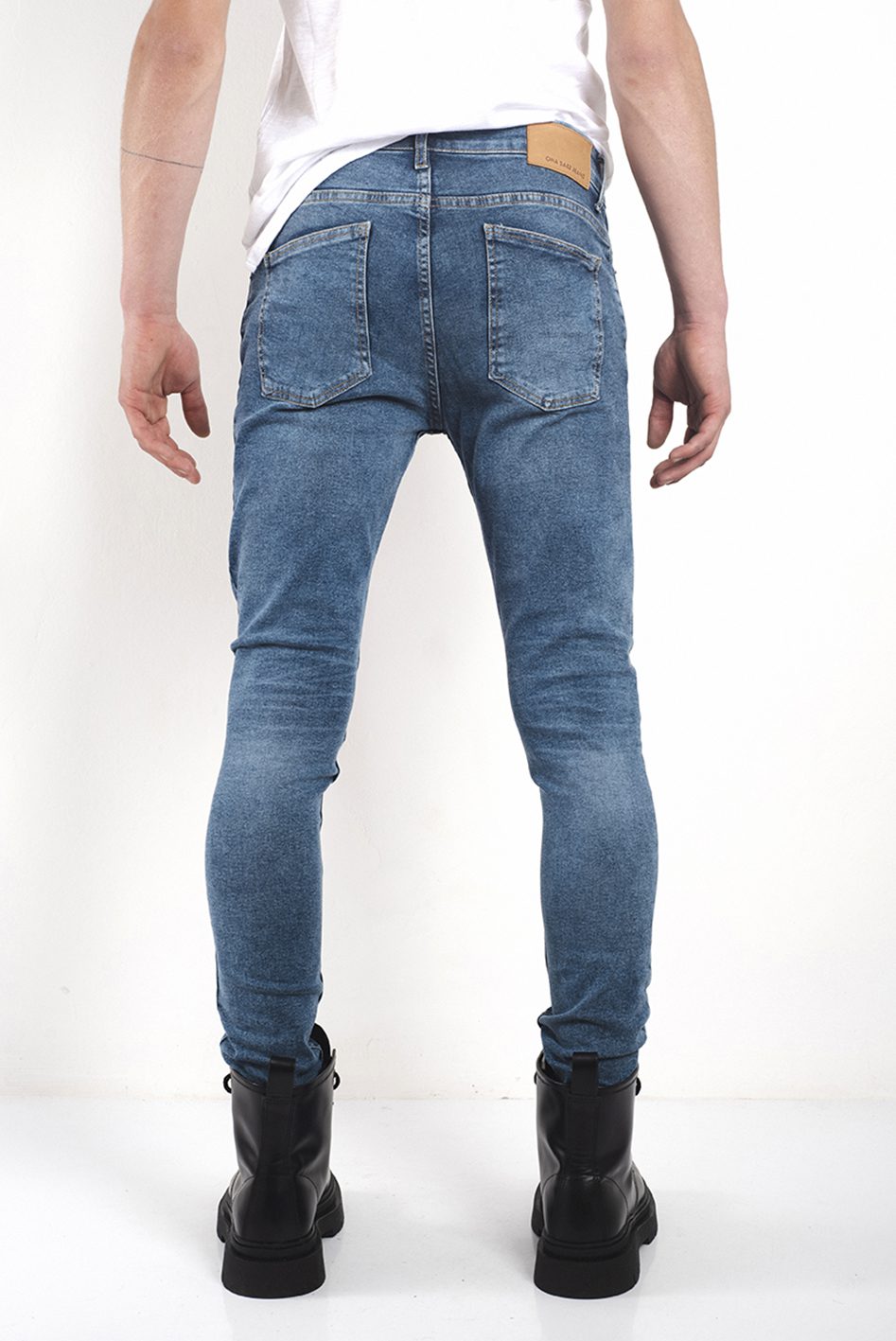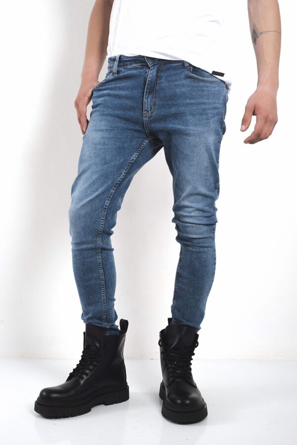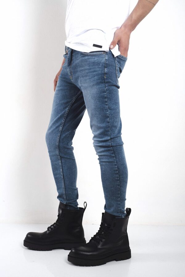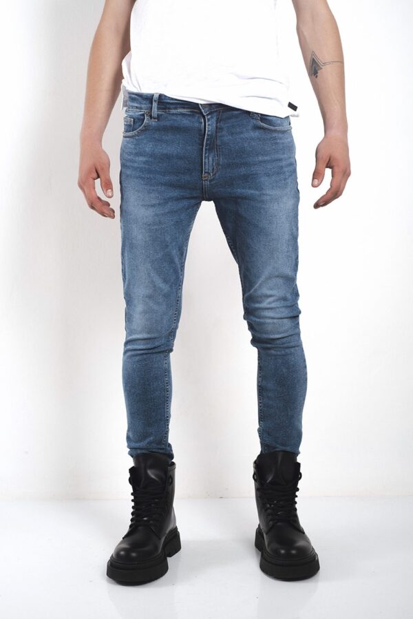 Jean super skinny color light blue. con cinco bolsillos cierre frontal y botón metálico de marca.
