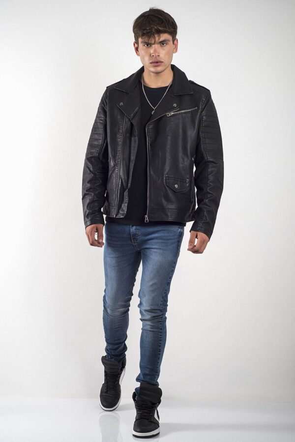 Con cinco bolsillos cierre frontal y botón metálico de marca.