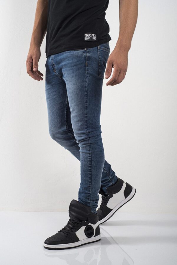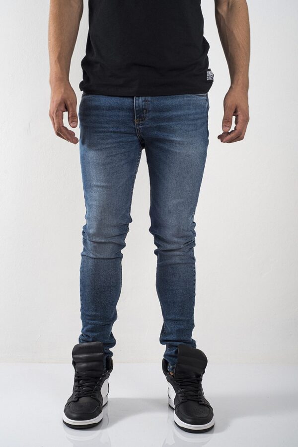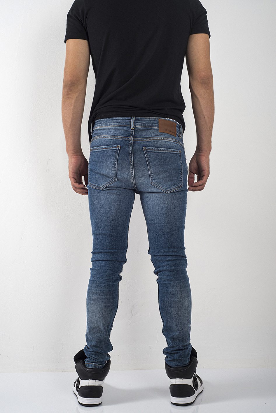 Jean super skinny color light blue, confeccionado en Denim elastizado efecto simil desgastado.
