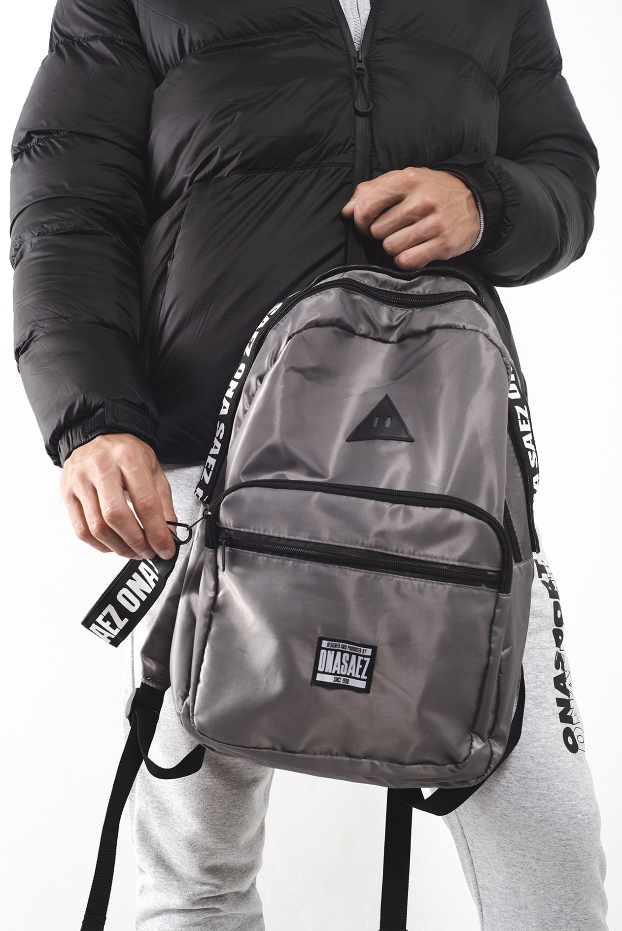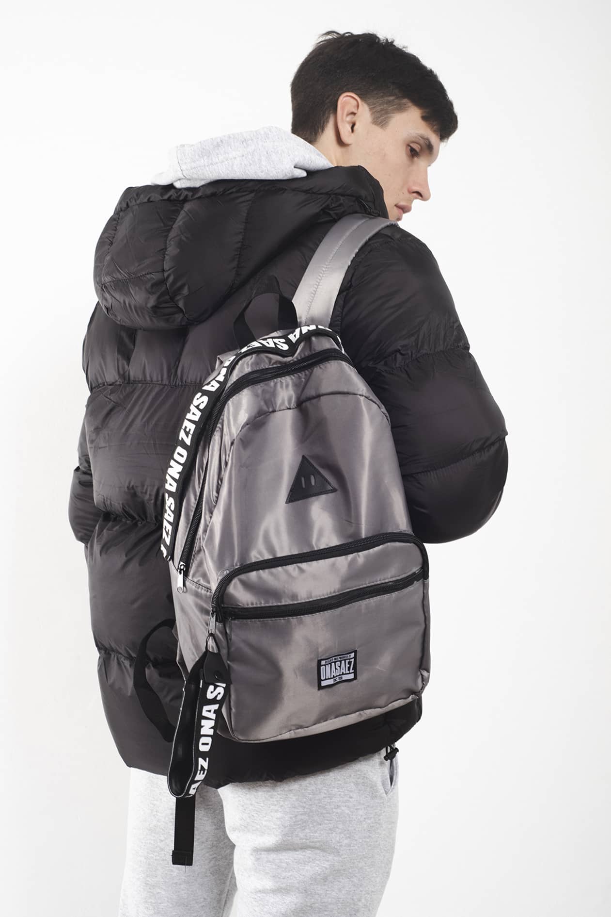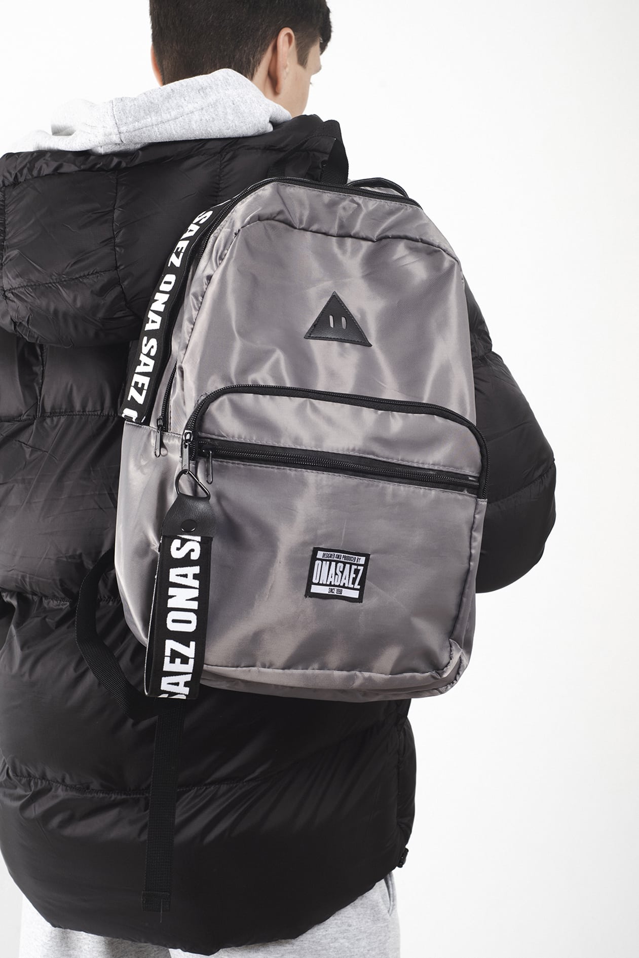 Mochila confeccionada en poliéster 100% color gris