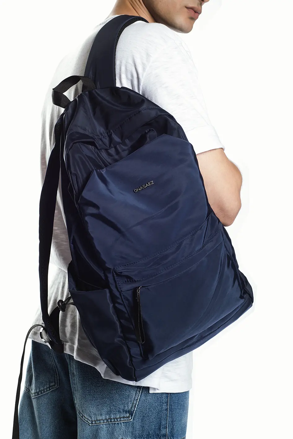 Mochila confeccionada en pu 100% impermeable, color azul.