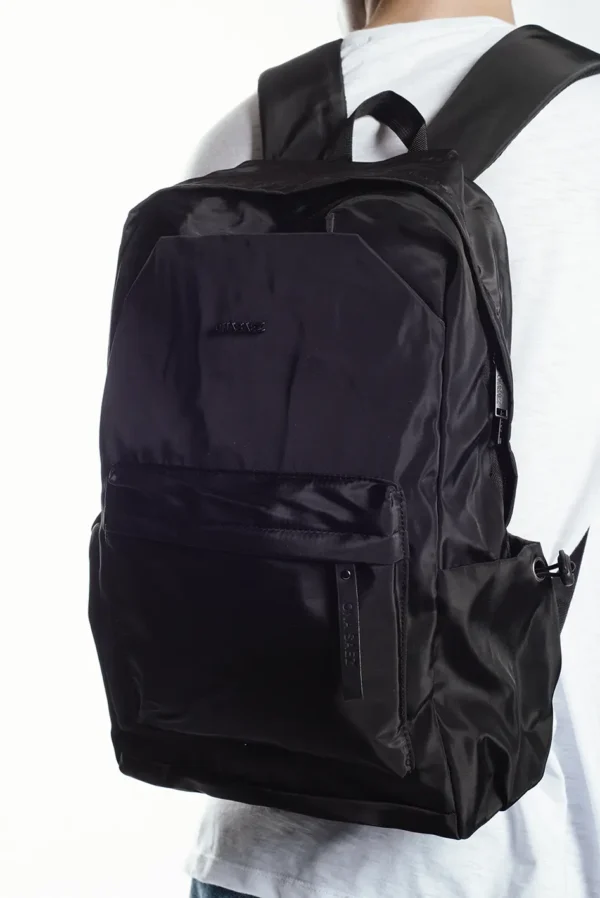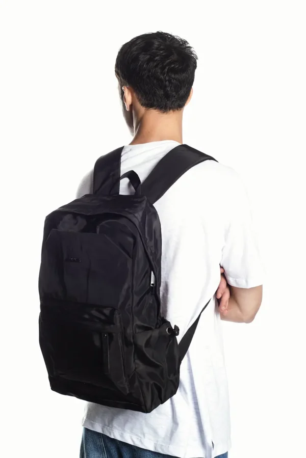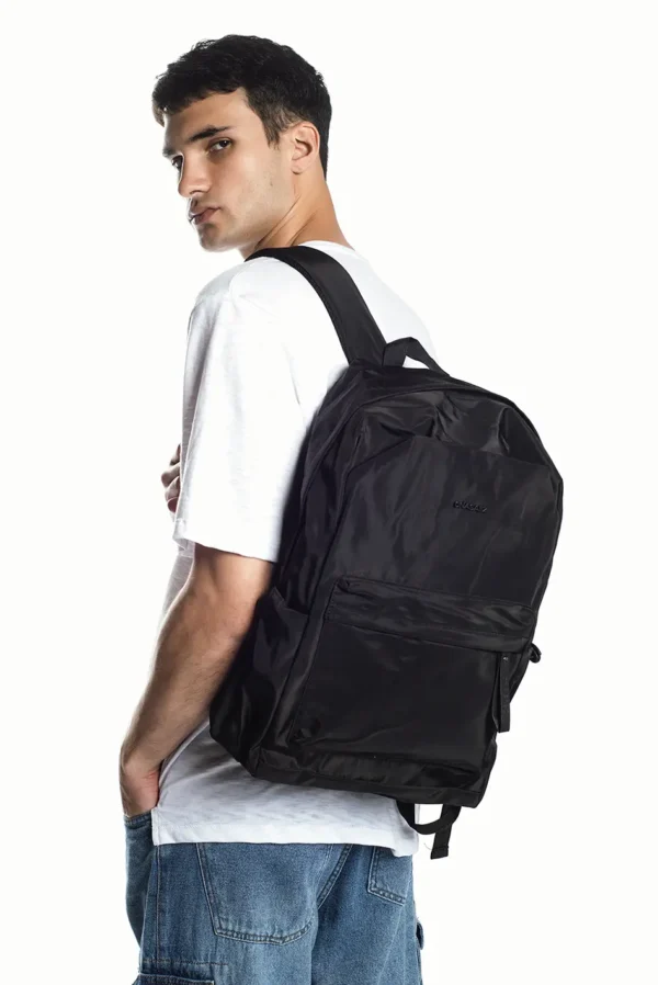 Mochila confeccionada en pu 100% impermeable, color negra.