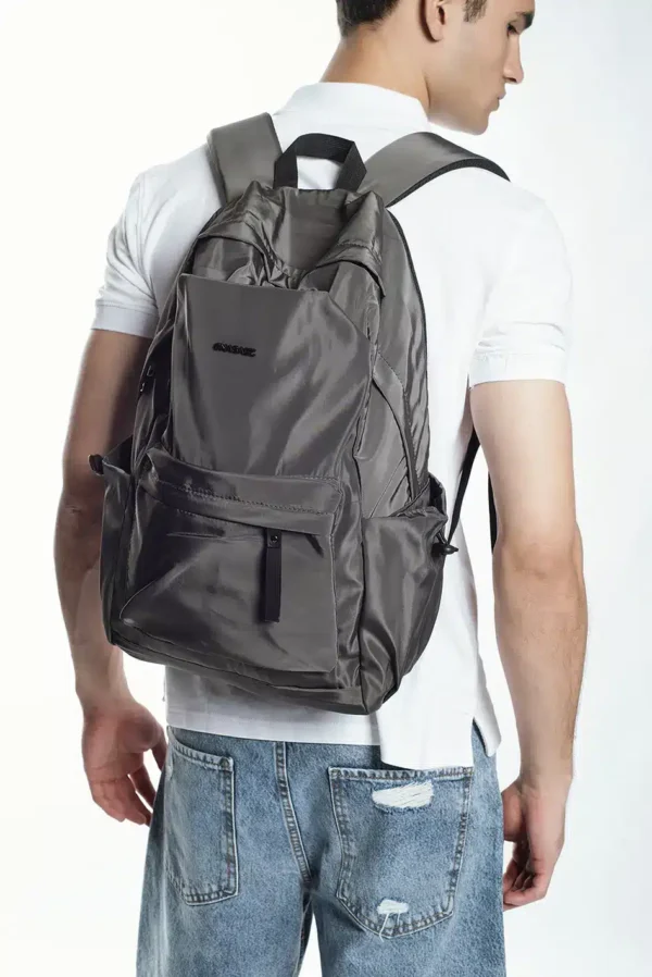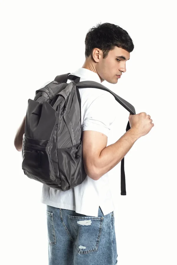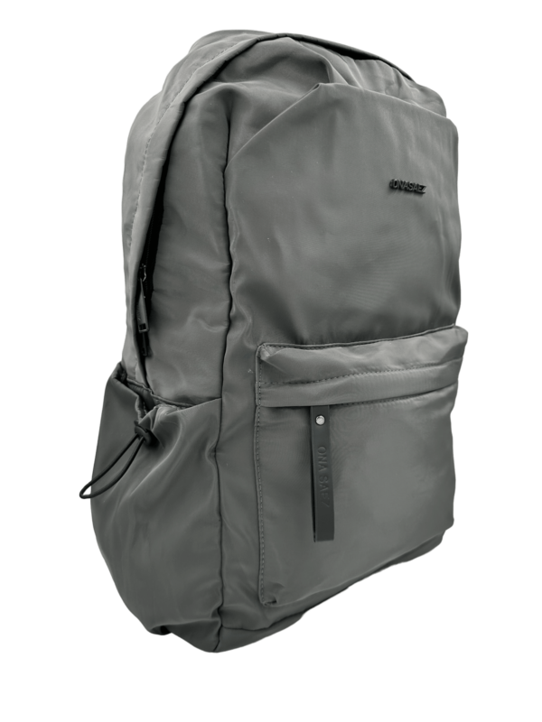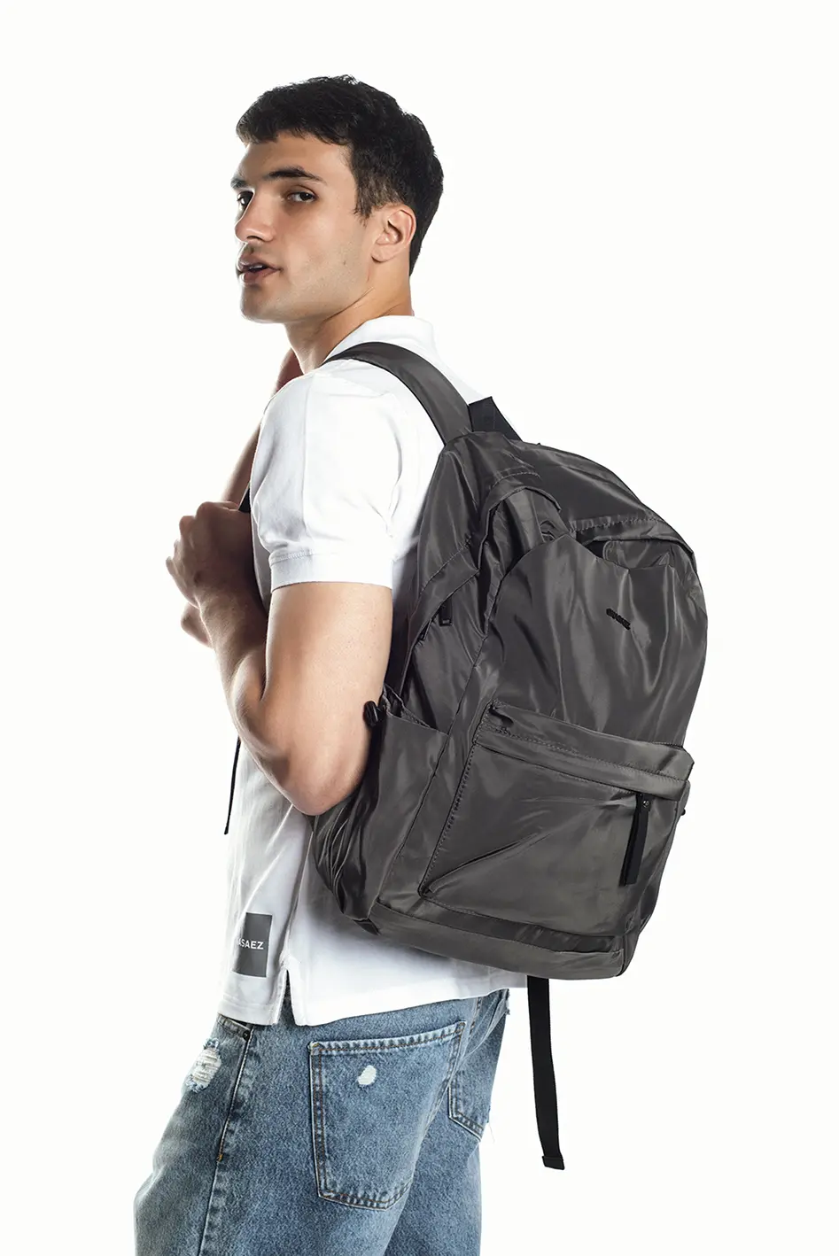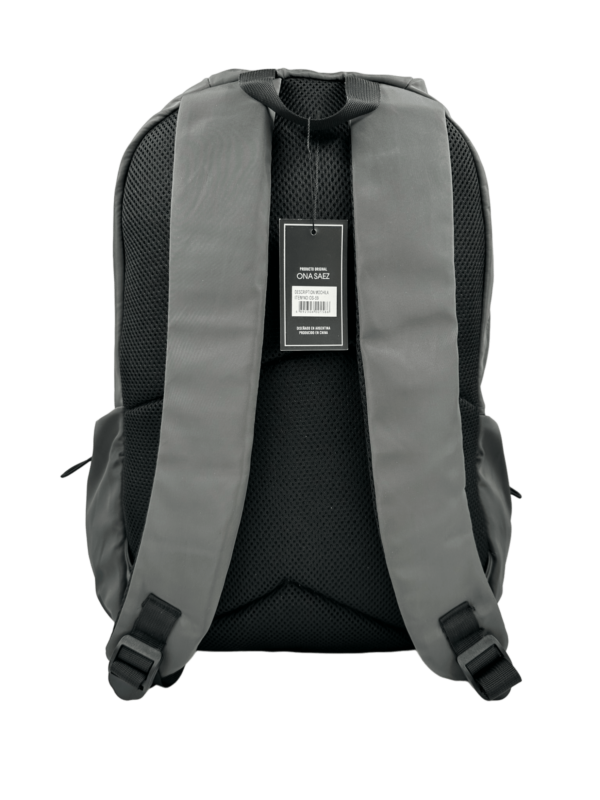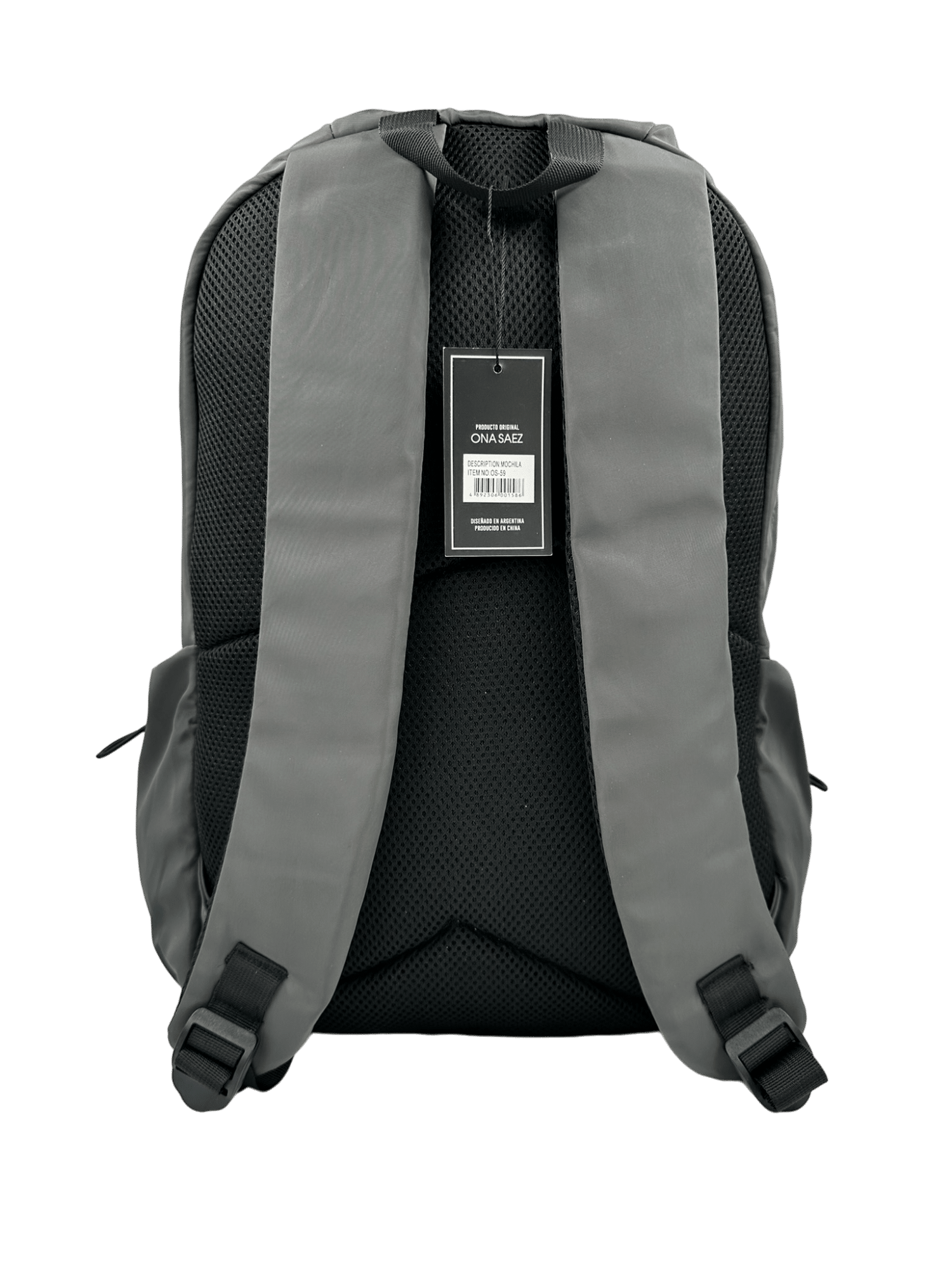 Mochila confeccionada en pu 100% impermeable, color gris topo.