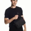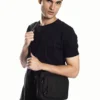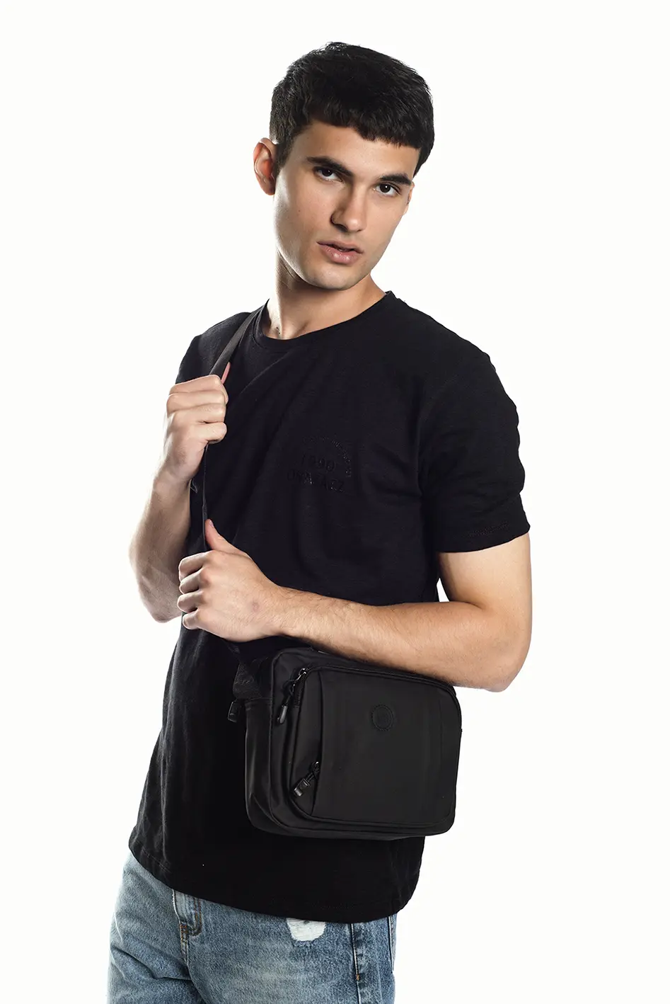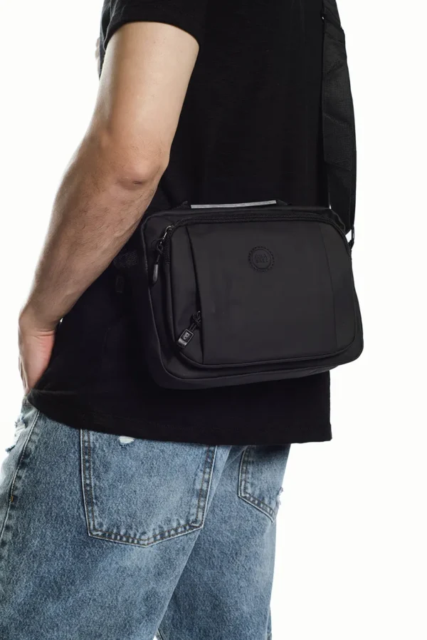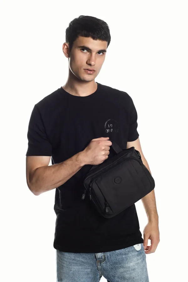 Bolso mediano confeccionado en poliéster engomado 100%, color negro.