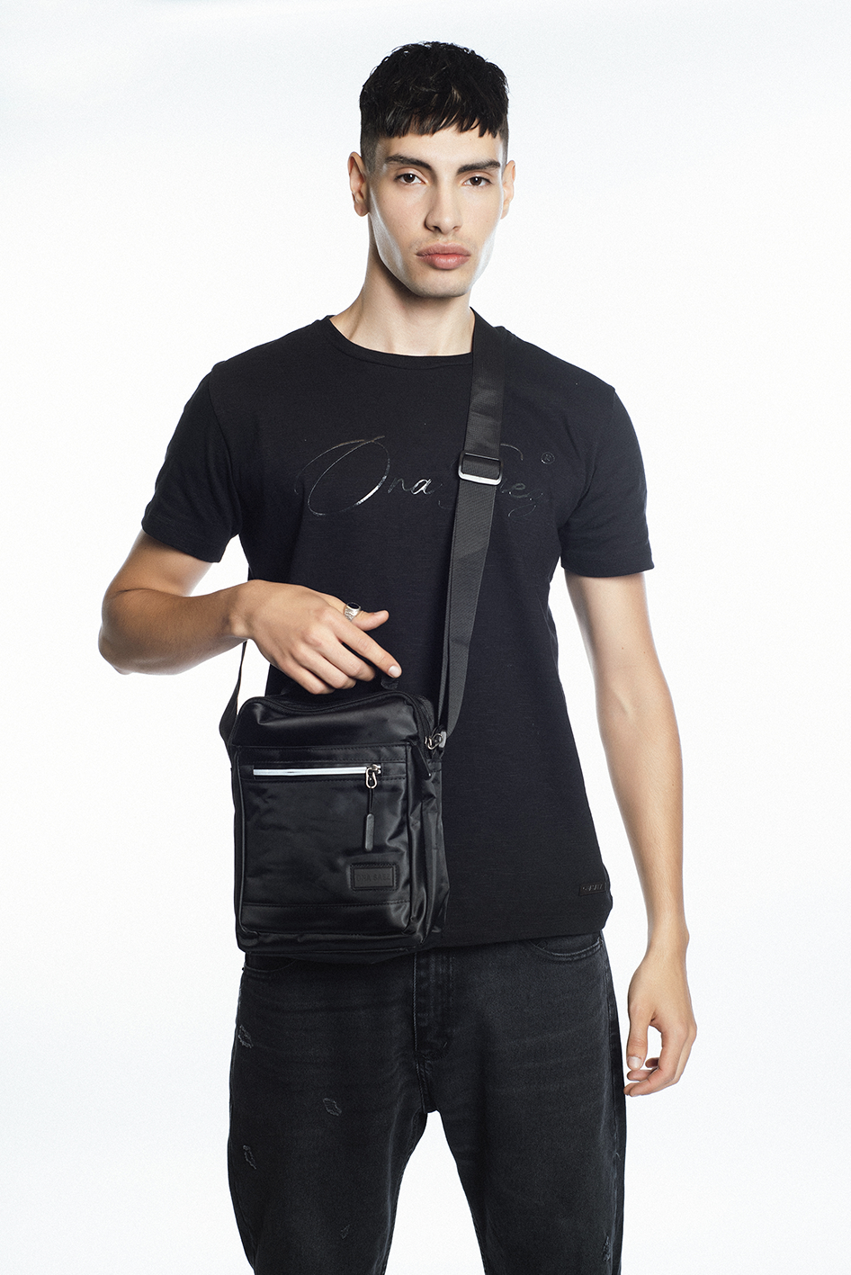 Bolso mediano confeccionado en poliéster 100%, color negro.