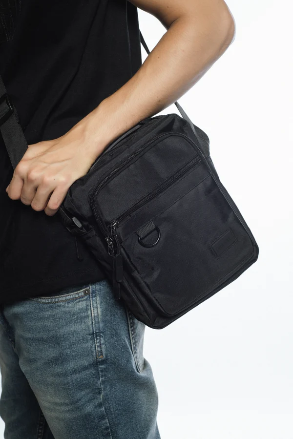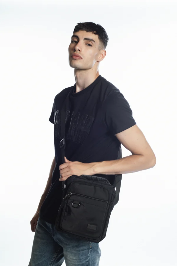 Bolso mediano confeccionado en poliéster 100% color negro.