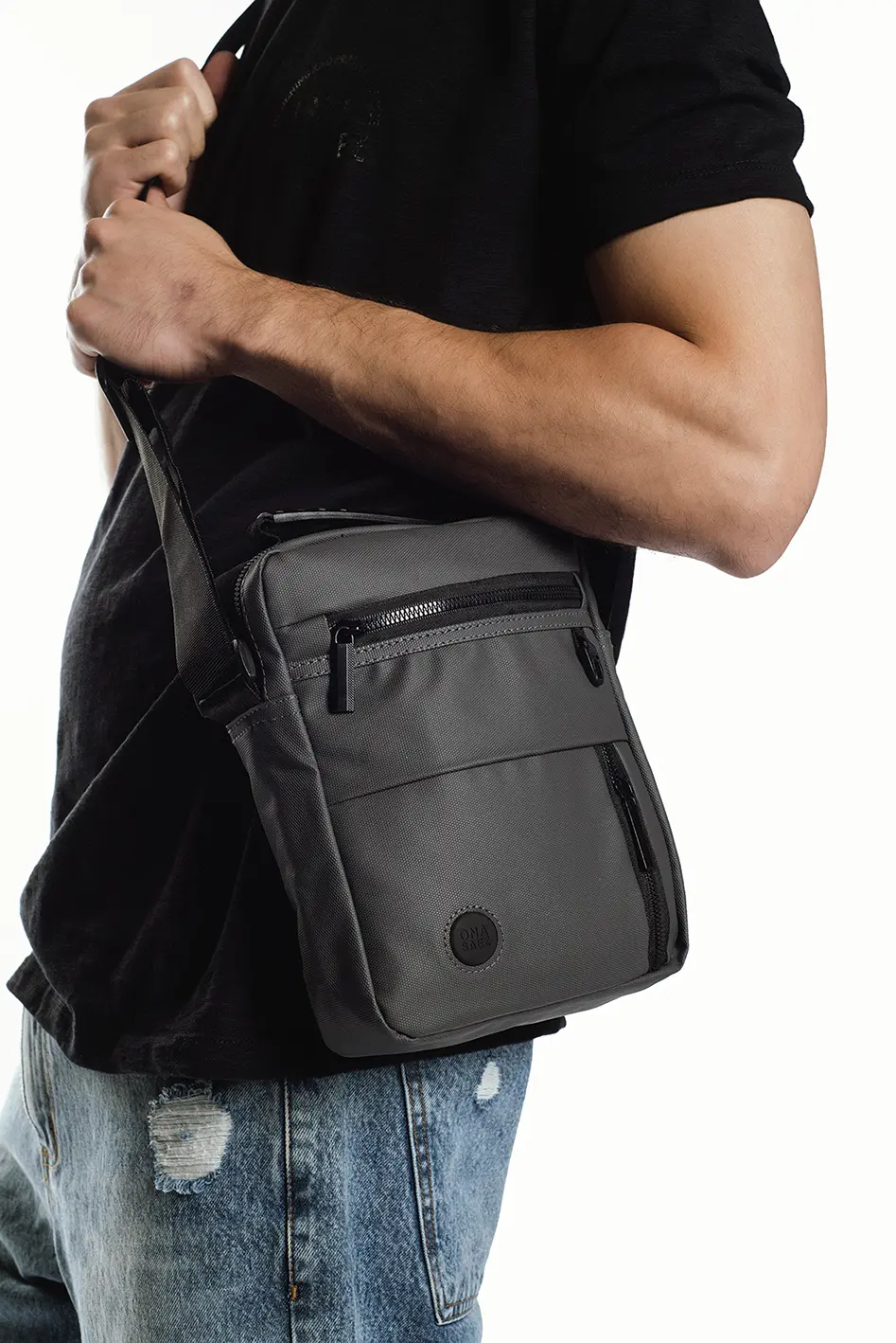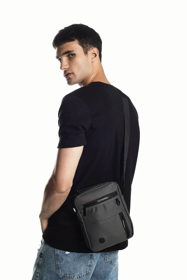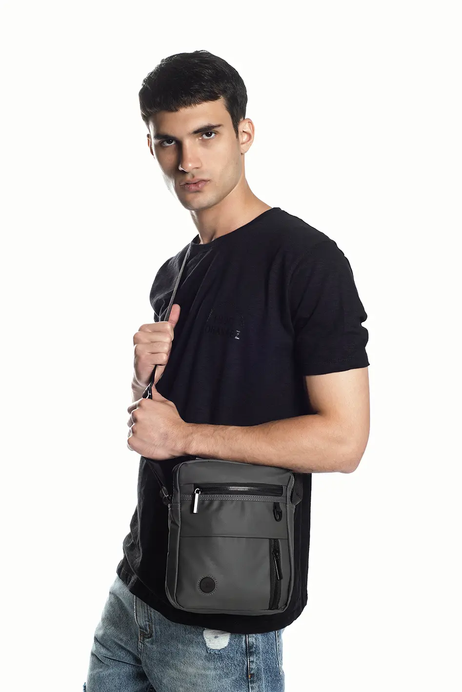Bolso mediano confeccionado en nylon 100%, color gris.