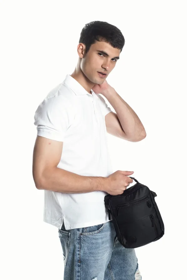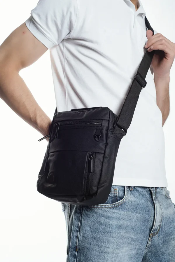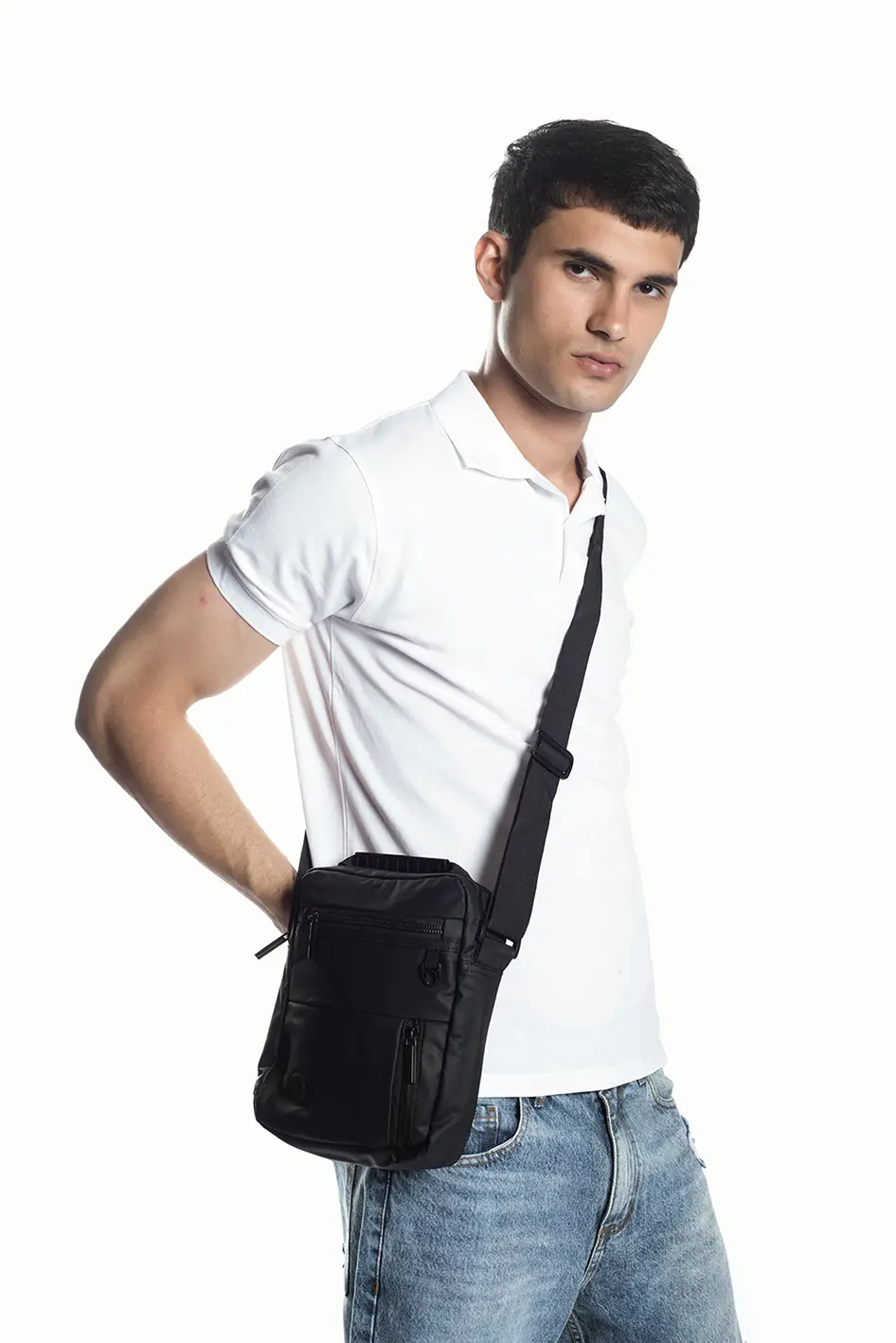 Bolso mediano confeccionado en nylon 100%, color negro.