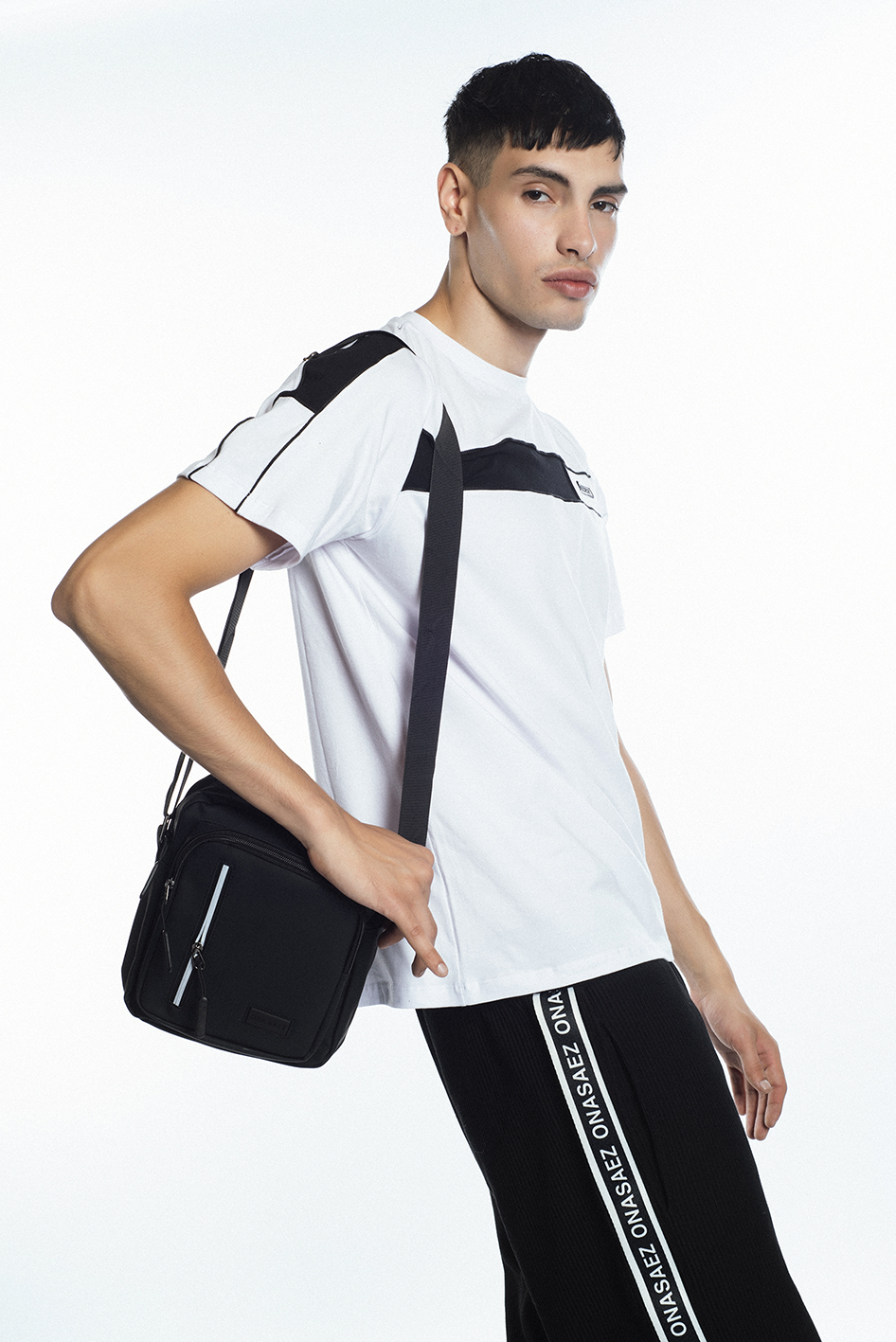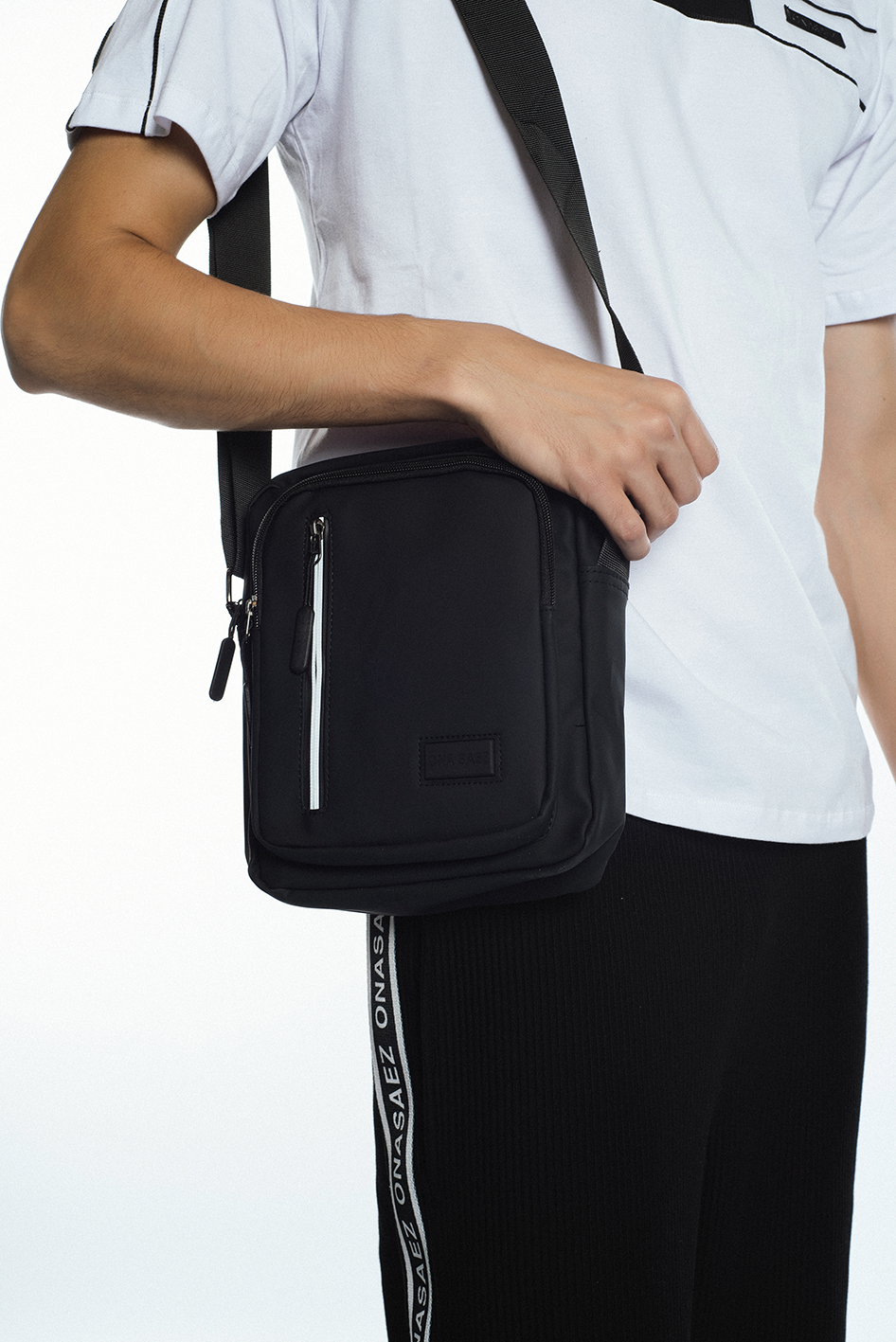 Bolso mediano confeccionado en poliéster engomado 100% color negro.
